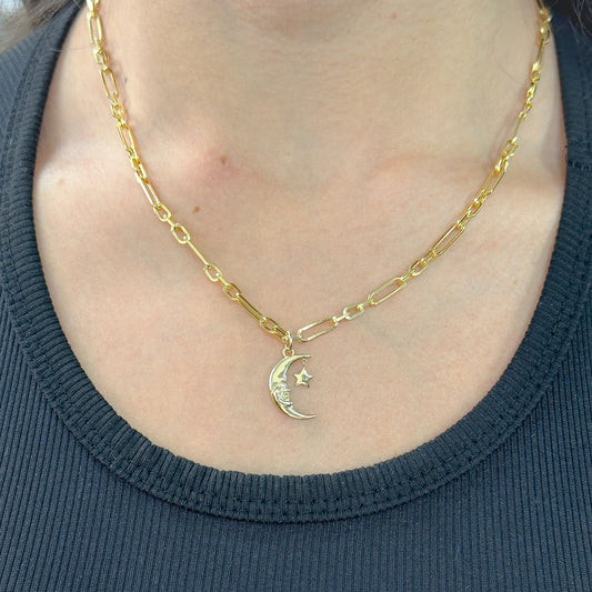 14K Gold Celestial Smiling Crescent Moon Pendant
