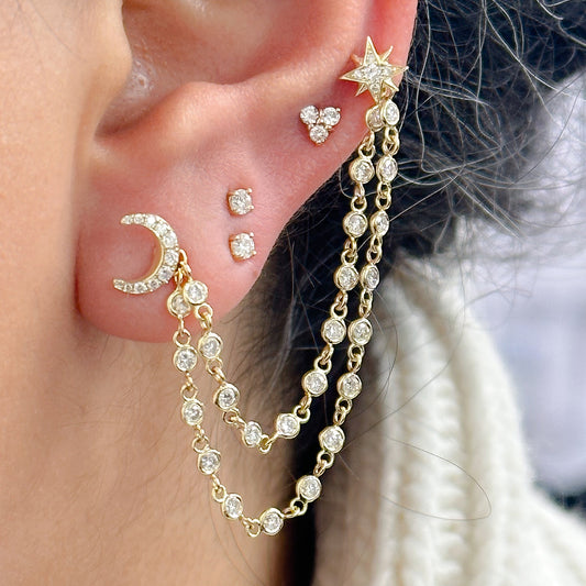 14K Gold Pavé Diamond Crescent Moon Stud Earrings