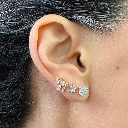 14K Gold Pavé Diamond XS Cross Stud Earrings