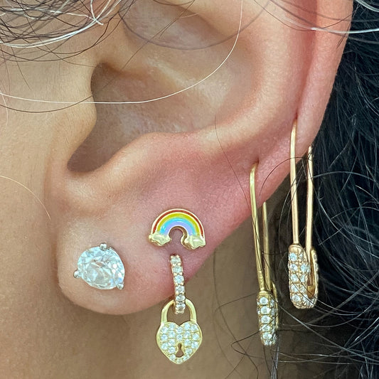 14K Gold Enamel Rainbow Cloud Stud Earrings