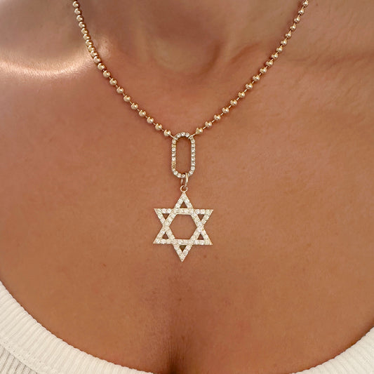 14K Gold Diamond Star of David Charm Pendant, Large Size