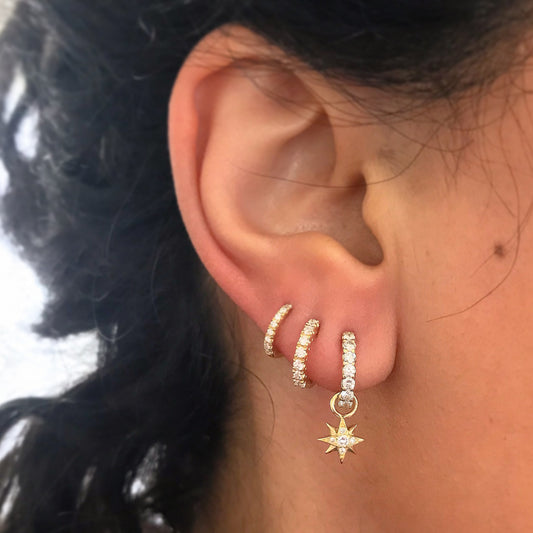 14K Gold Pavé Diamond Starburst Dangle Huggie Hoop Earrings ~ Convertible Small Size Starburst Charm