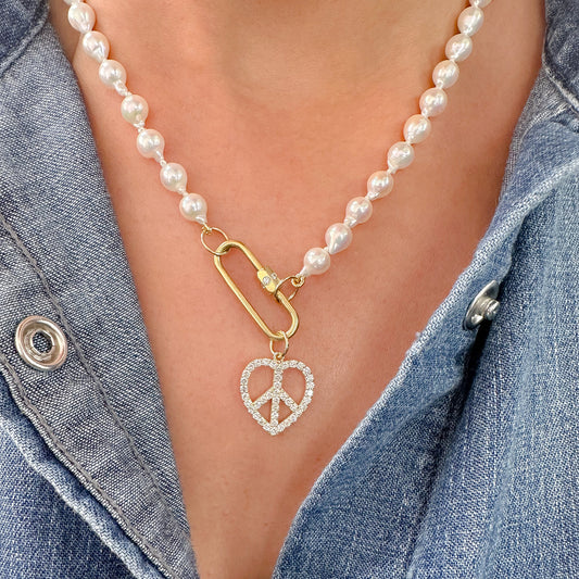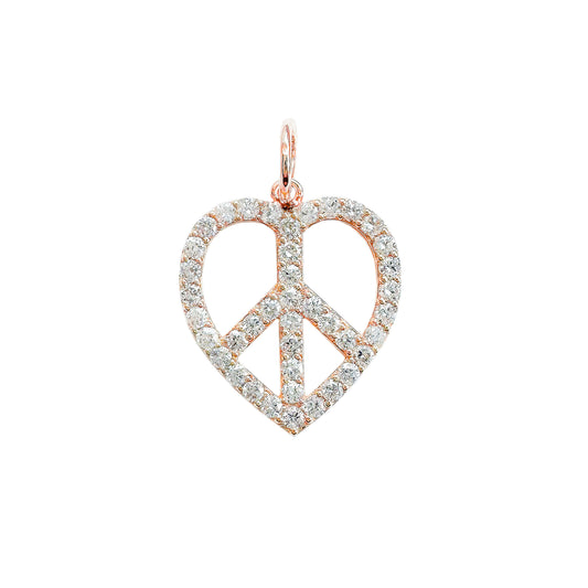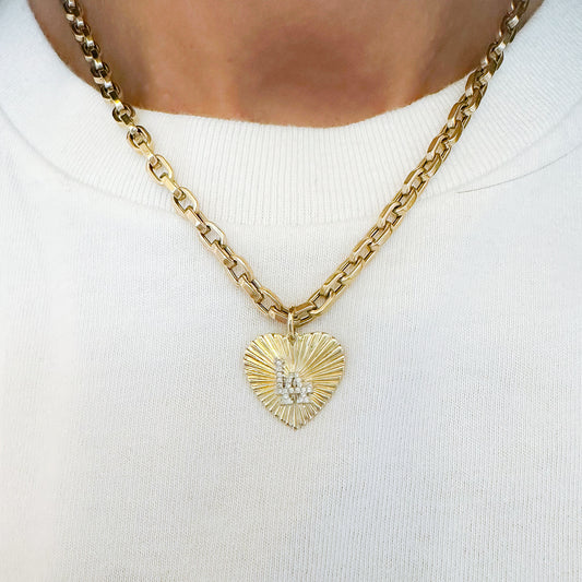 14K Gold Pavé Diamond LA Logo Fluted Heart Medallion Pendant, Medium Size Heart
