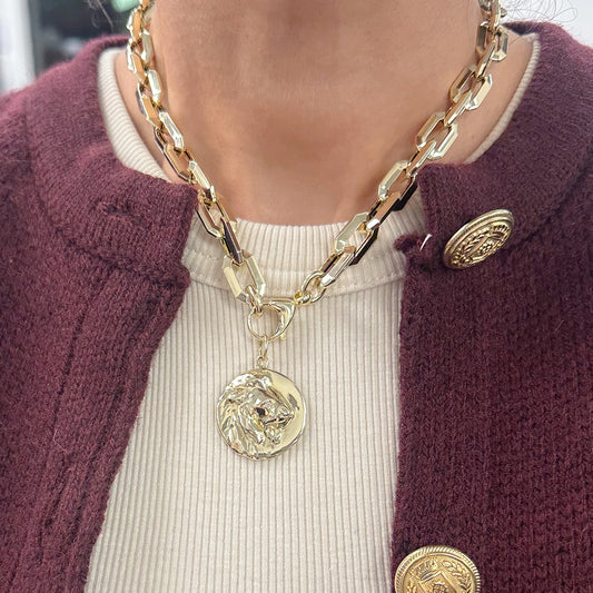 14K Gold Lion Medallion Charm Pendant, XL Size
