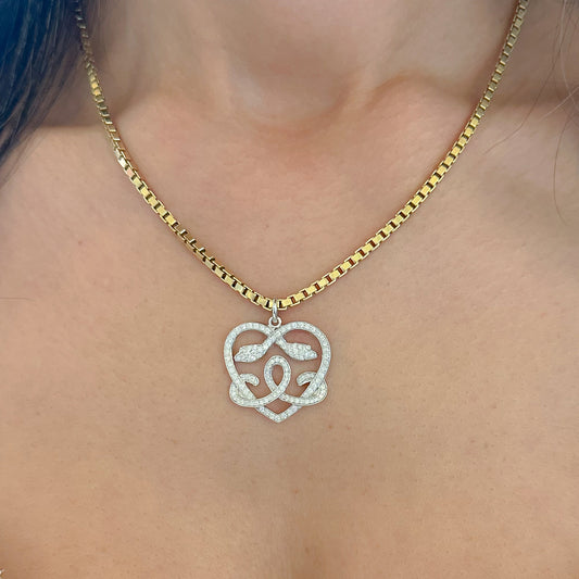 14K Gold Pavé Diamond Ouroboros Heart Pendant
