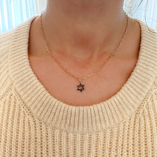 14K Gold Black Diamond Star of David Charm Pendant, XS Size
