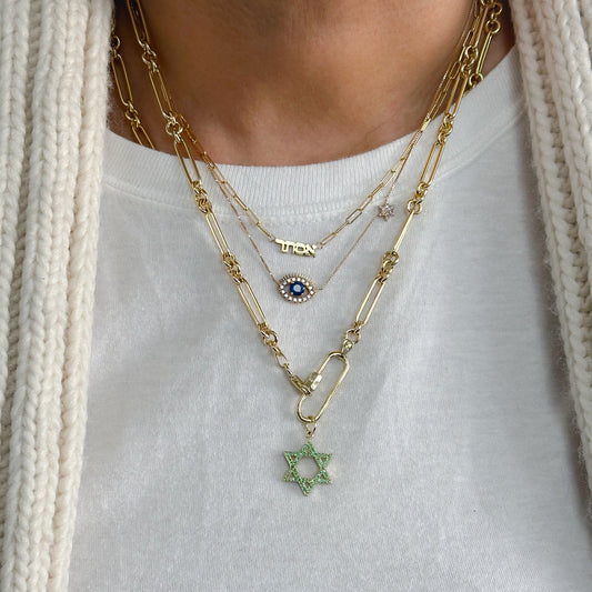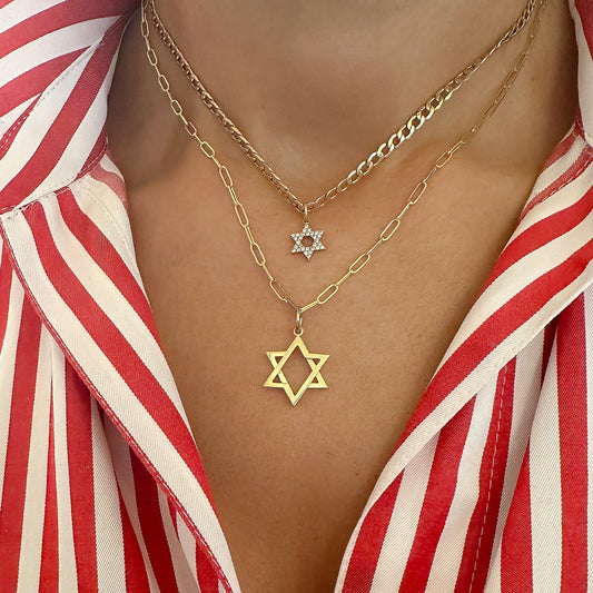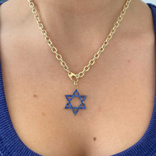14K Gold Sapphire Star of David Charm Pendant, Large Size