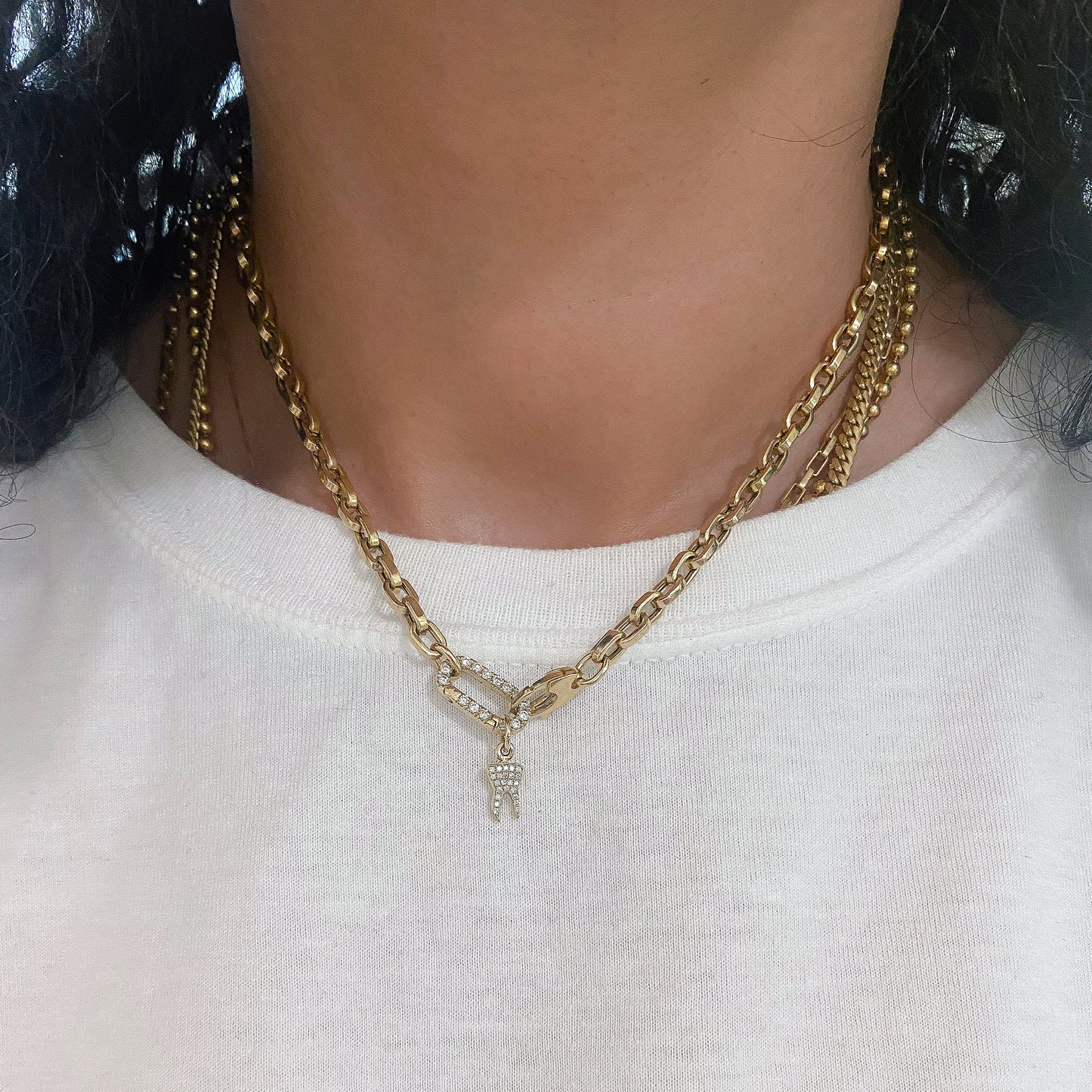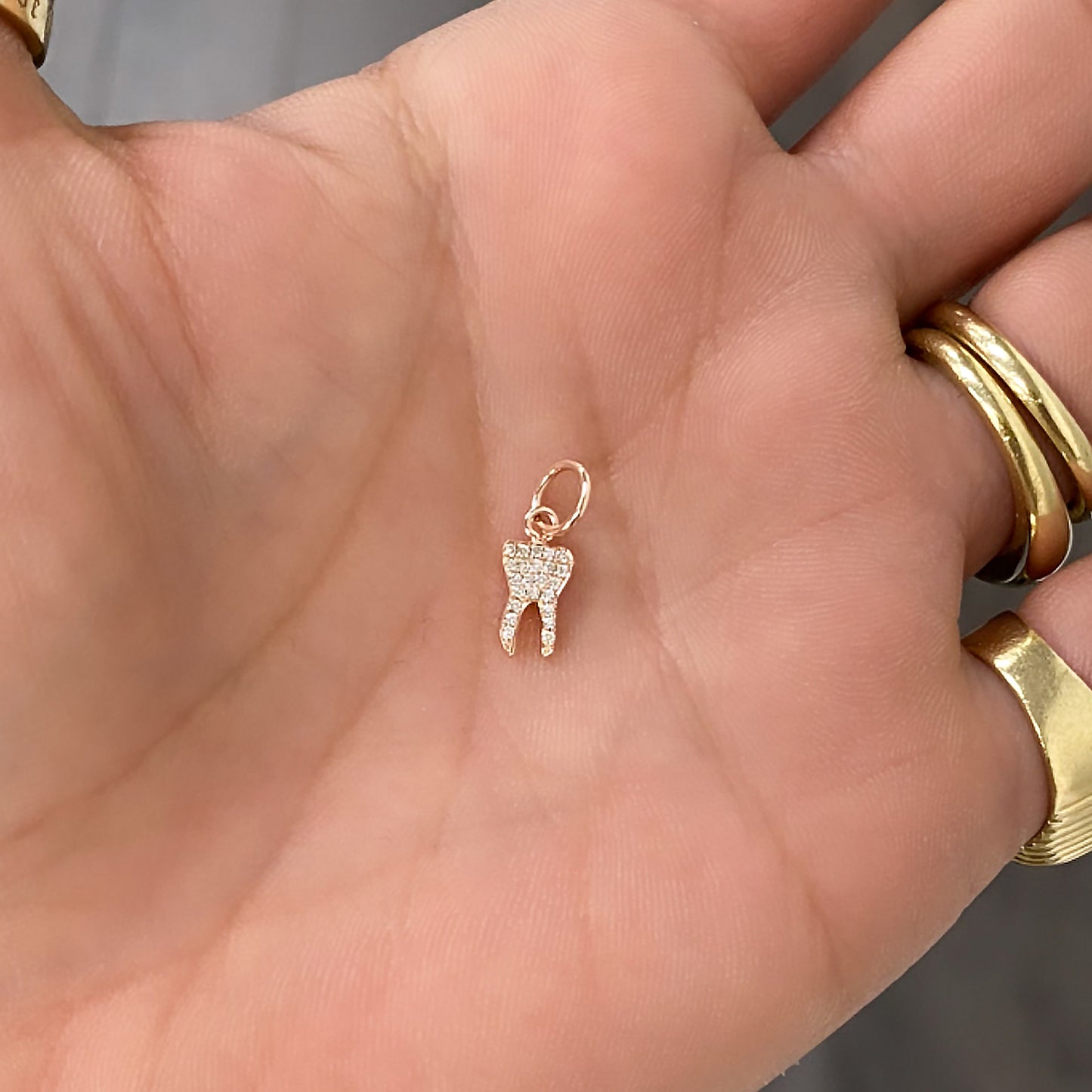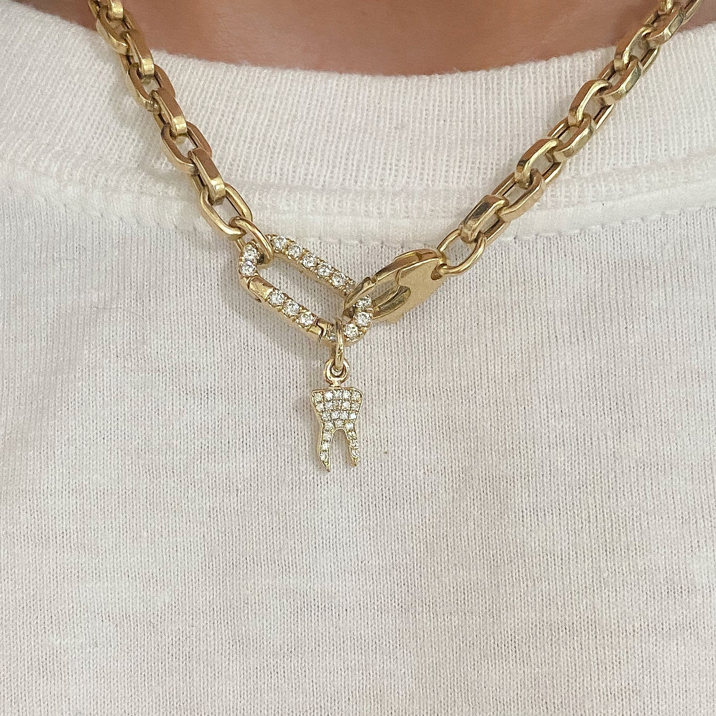 This unique design is composed of 14K solid gold and finished with GVS1 quality natural real diamonds. This charm is beautifully complemented with a delicate yet durable 14K solid gold adjustable chain, or available to be purchased as a charm alone without the chain.