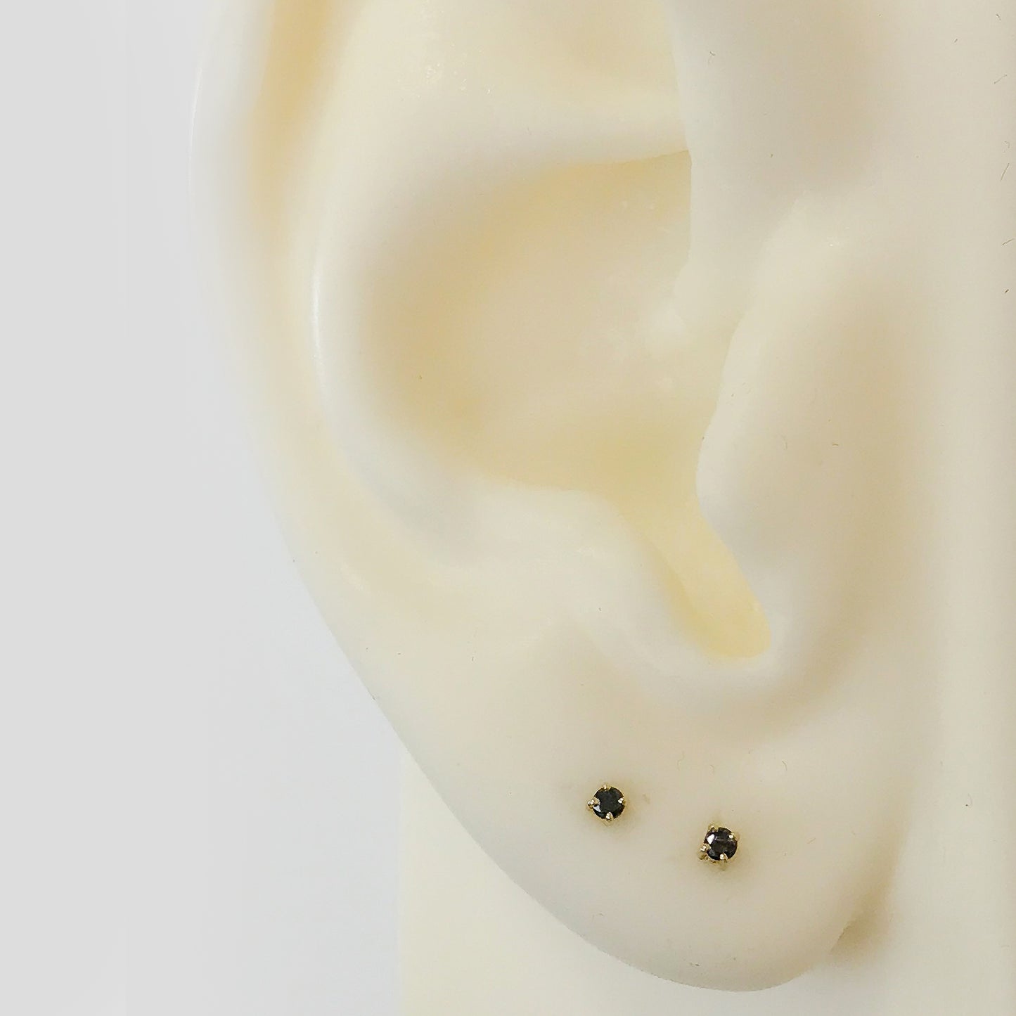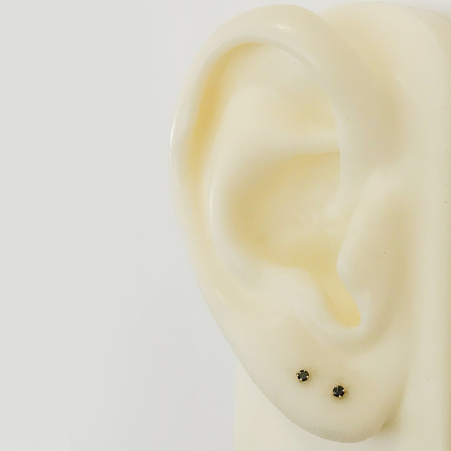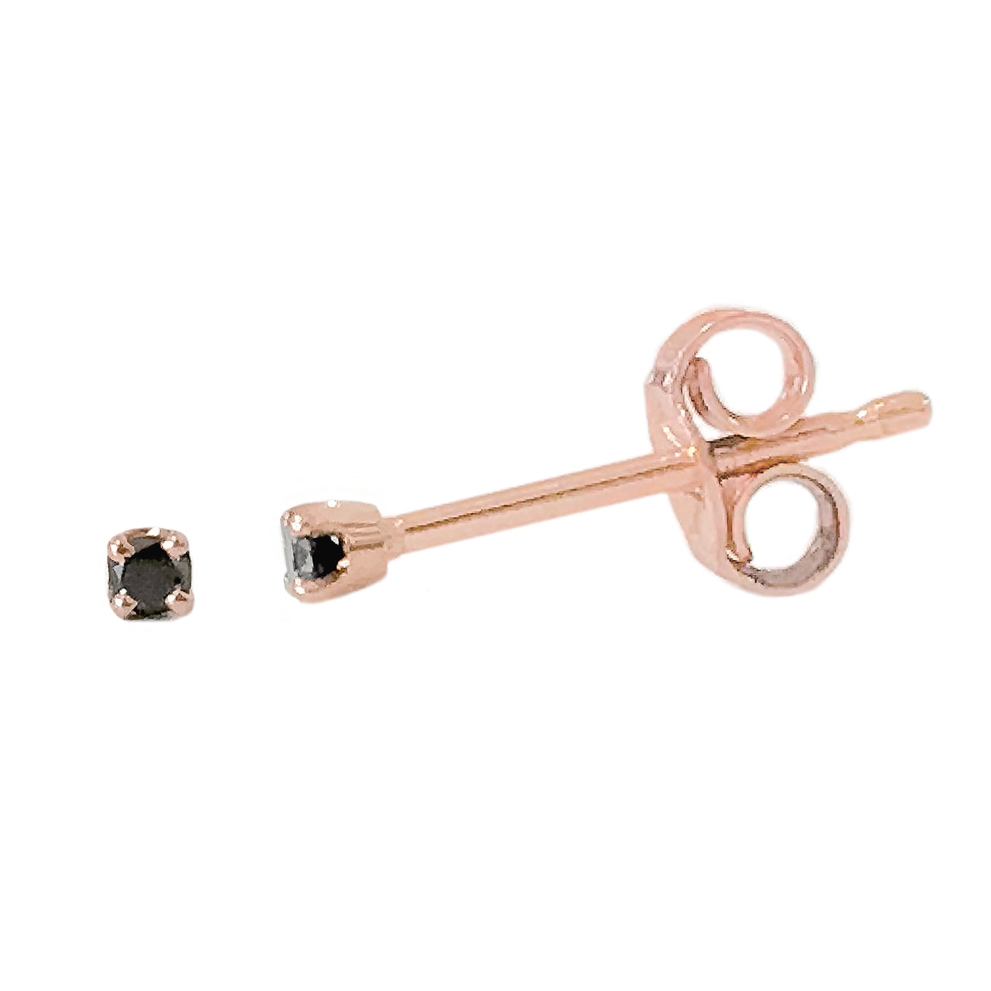 14K Gold 1mm Solitaire Black Diamond 4 Prong Stud Earrings