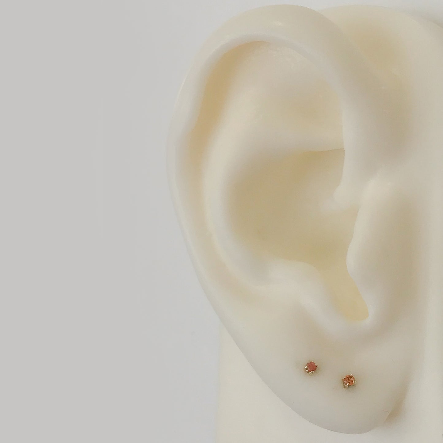 14K Gold 1mm Solitaire Orange Sapphire 4 Prong Stud Earrings