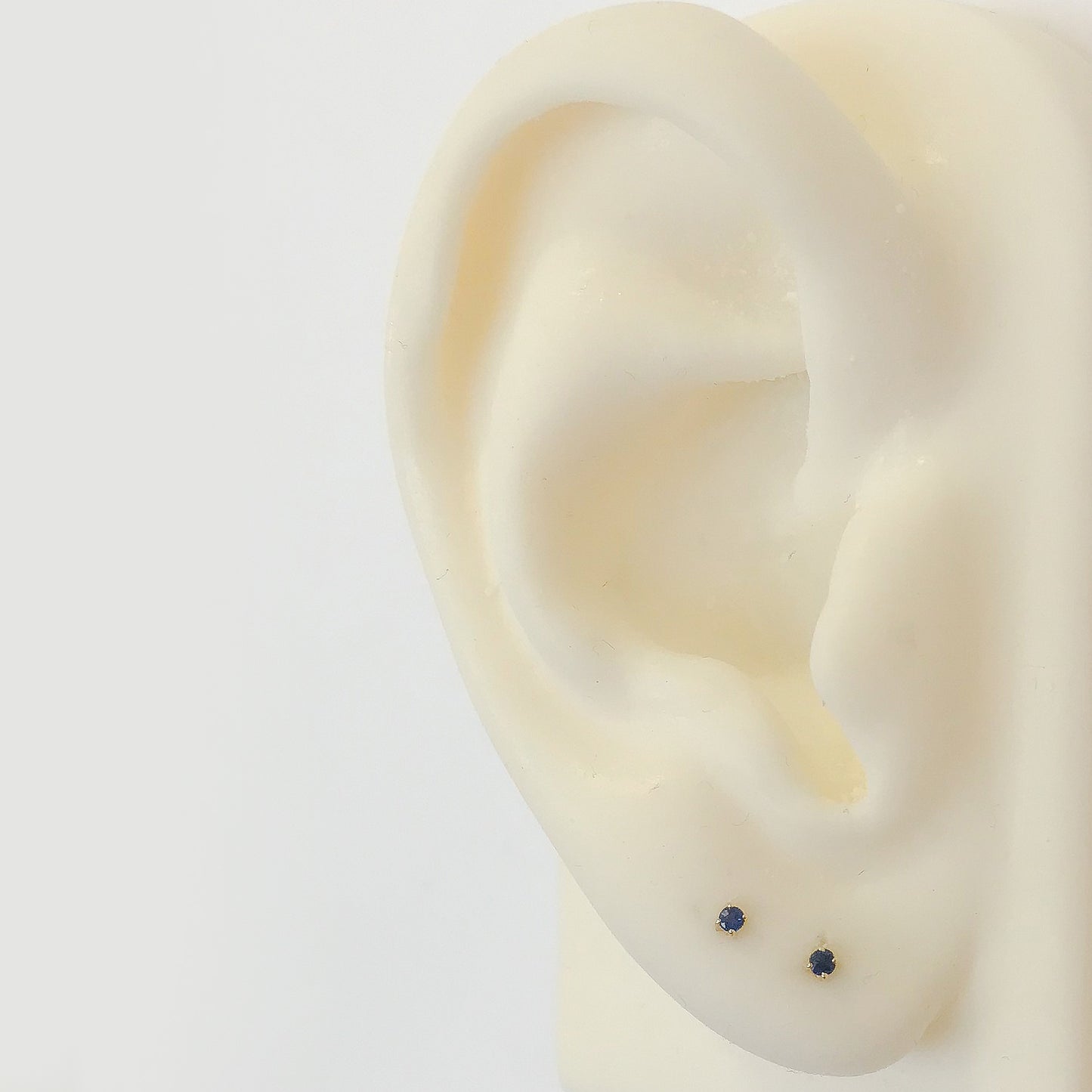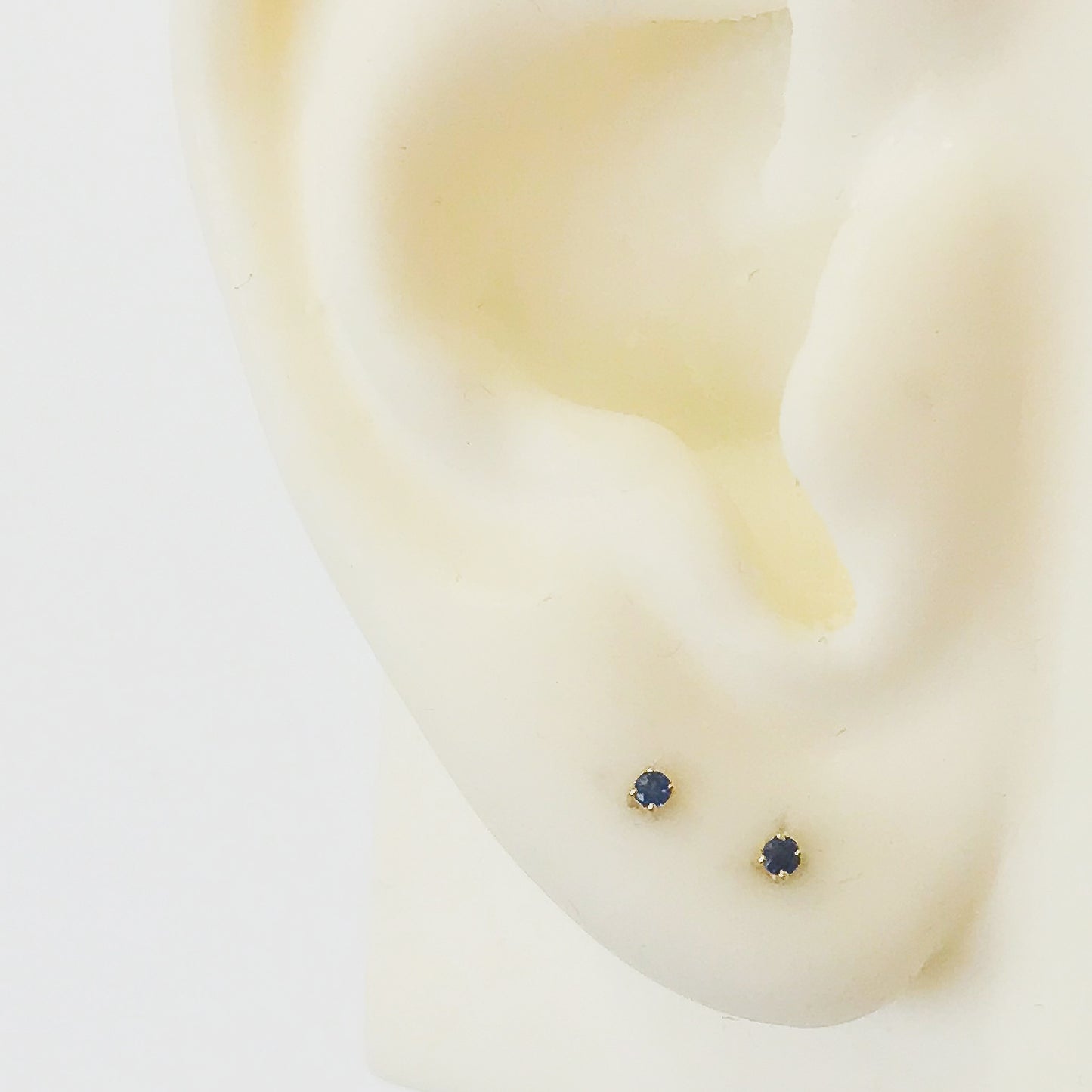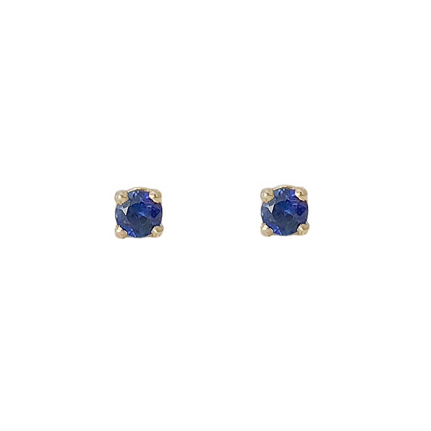 14K Gold 1mm Solitaire Sapphire 4 Prong Stud Earrings