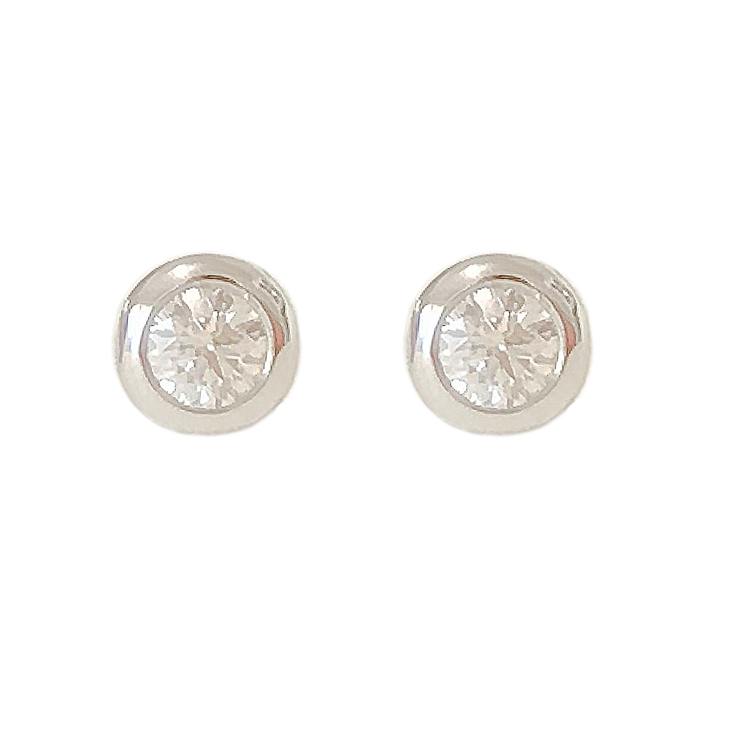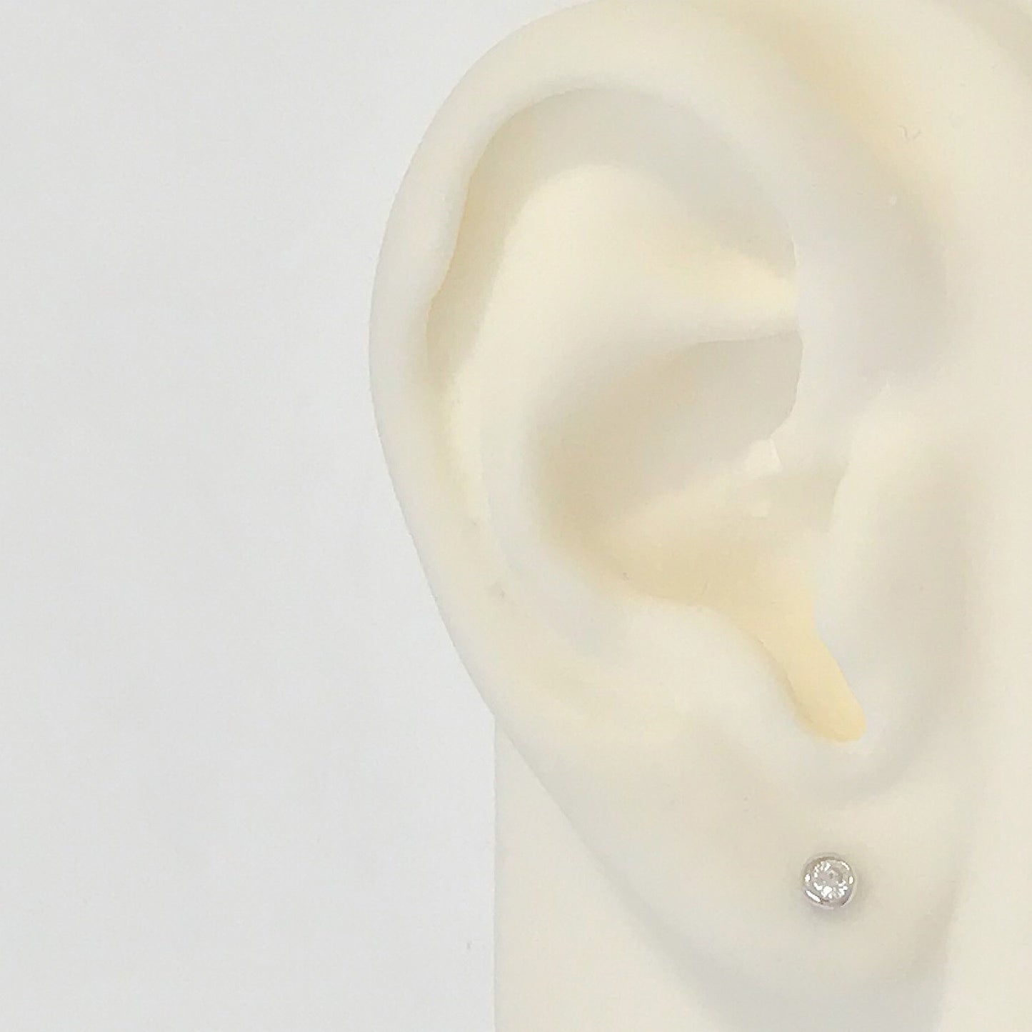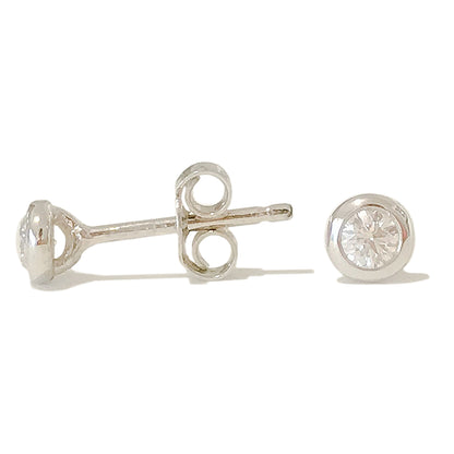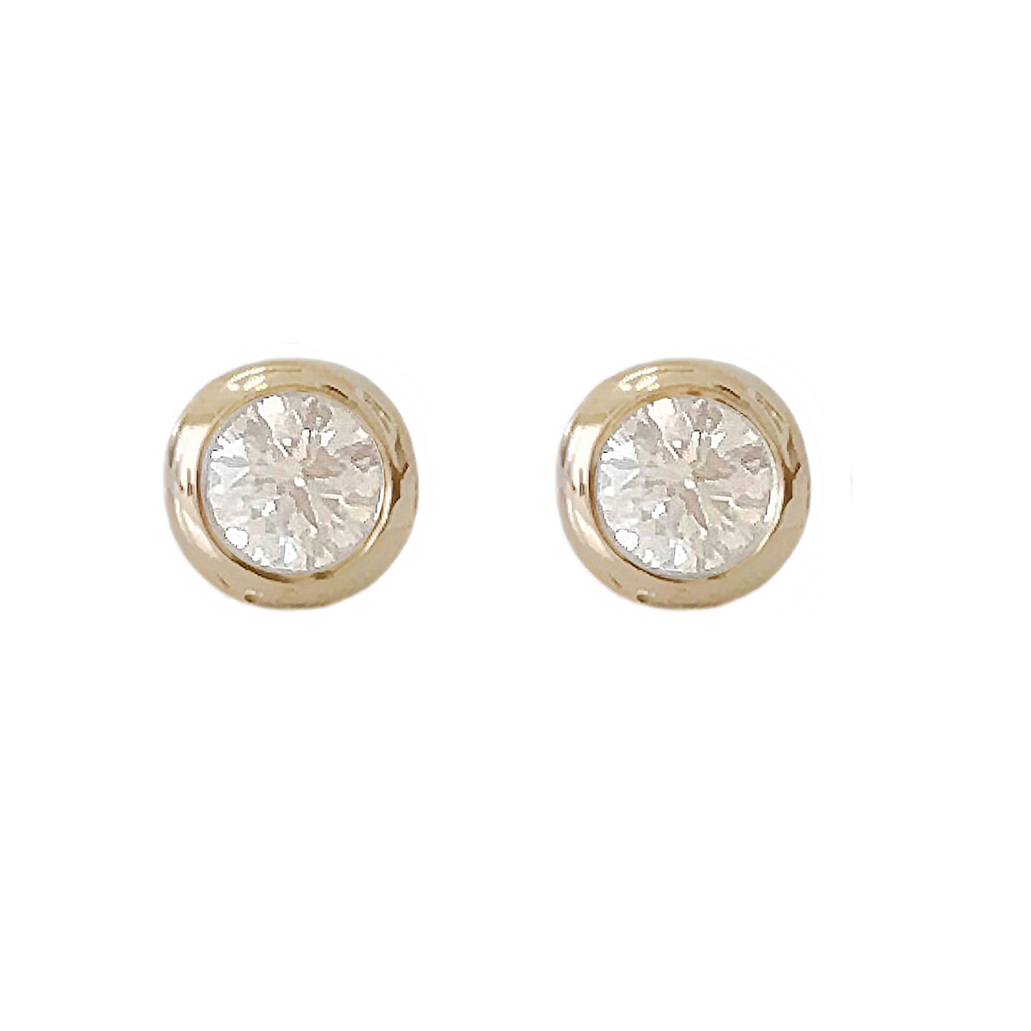 14K Gold 2.5mm Solitaire Diamond Round Bezel Set Stud Earrings
