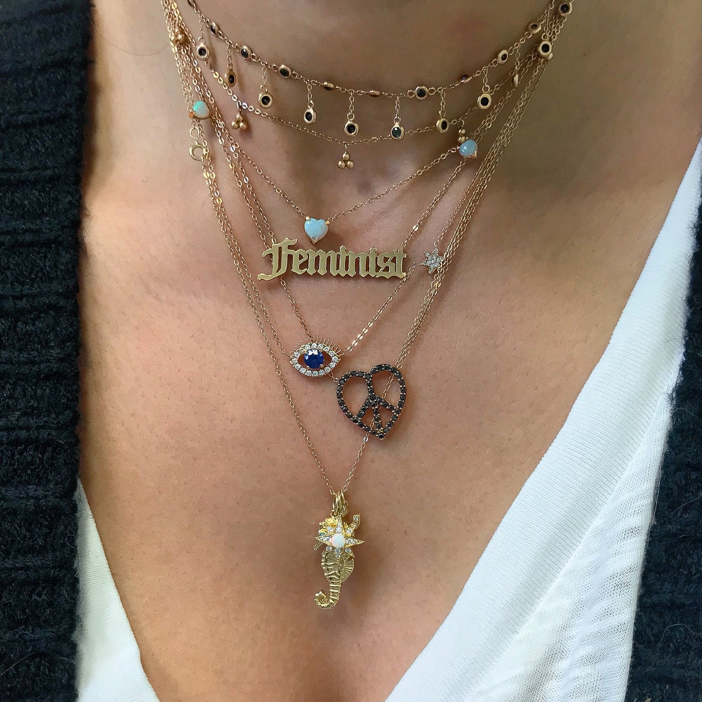 This precious necklace is composed of 14K solid gold and beautifully complemented by a delicate yet durable 14K solid gold adjustable chain, finished with a secure lobster claw clasp and Nana Bijou signature logo tag.