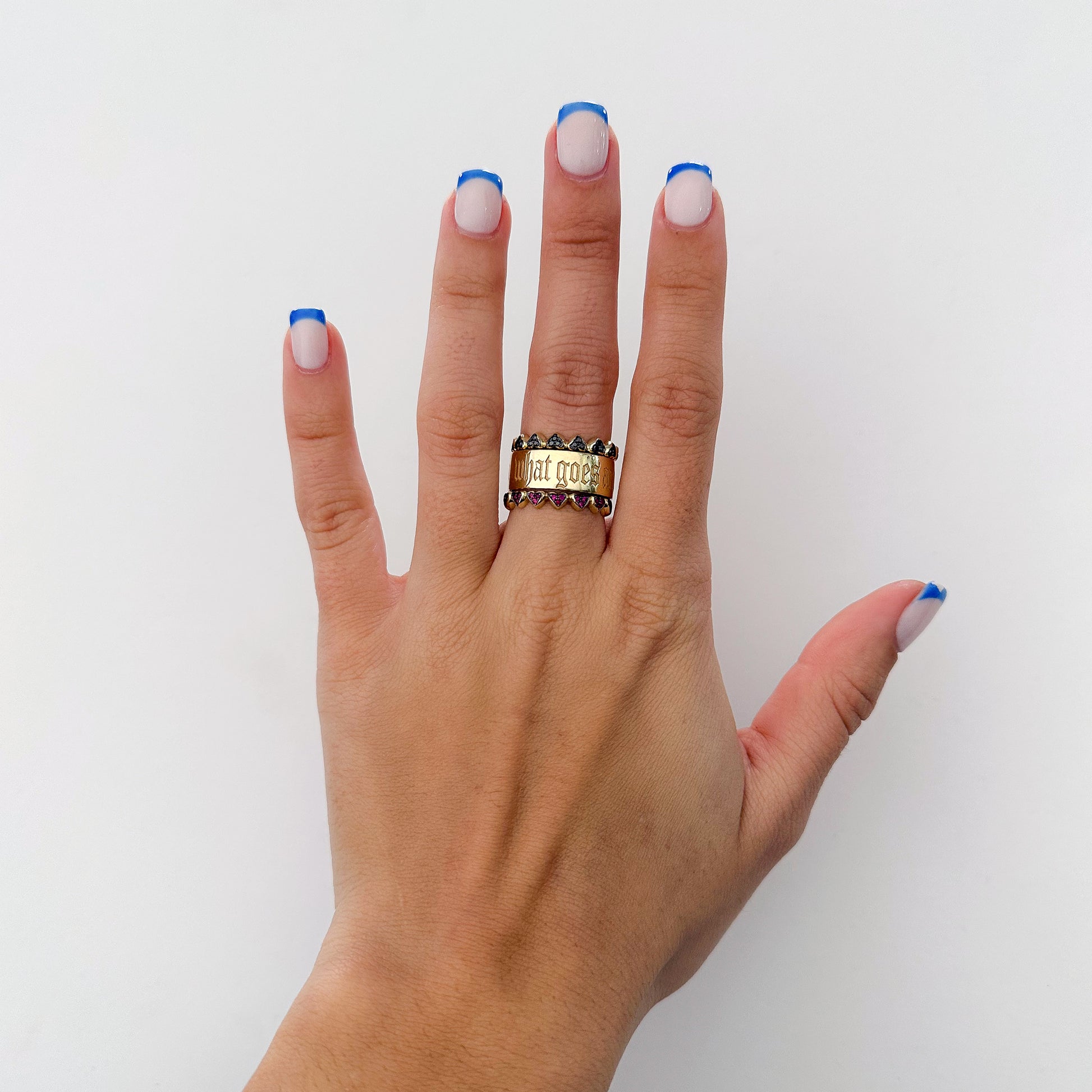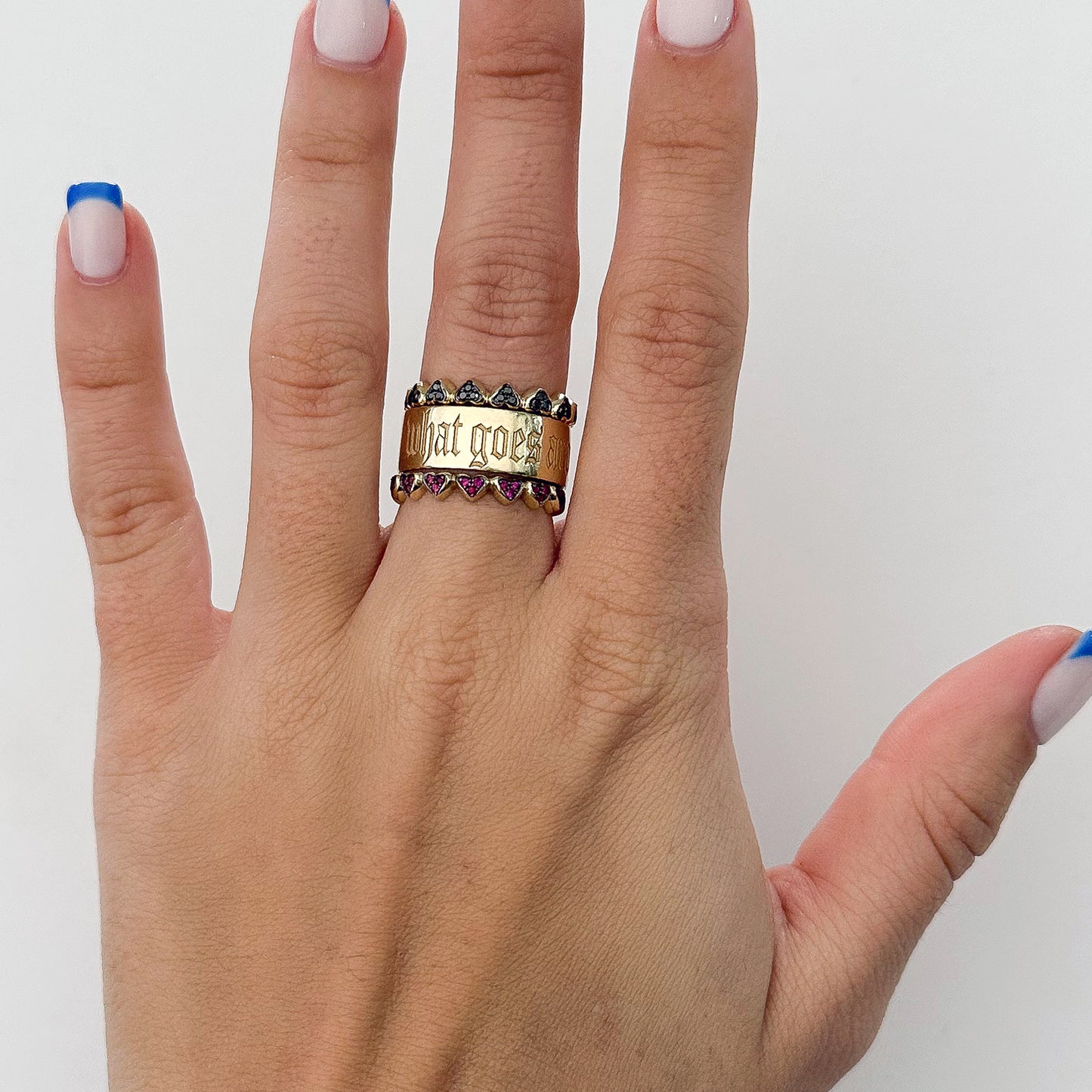 This finely handcrafted ring is made completely of 14K solid gold. Perfect to customize with setting gemstones or engraving any words or phrases on the outer or inner surface.