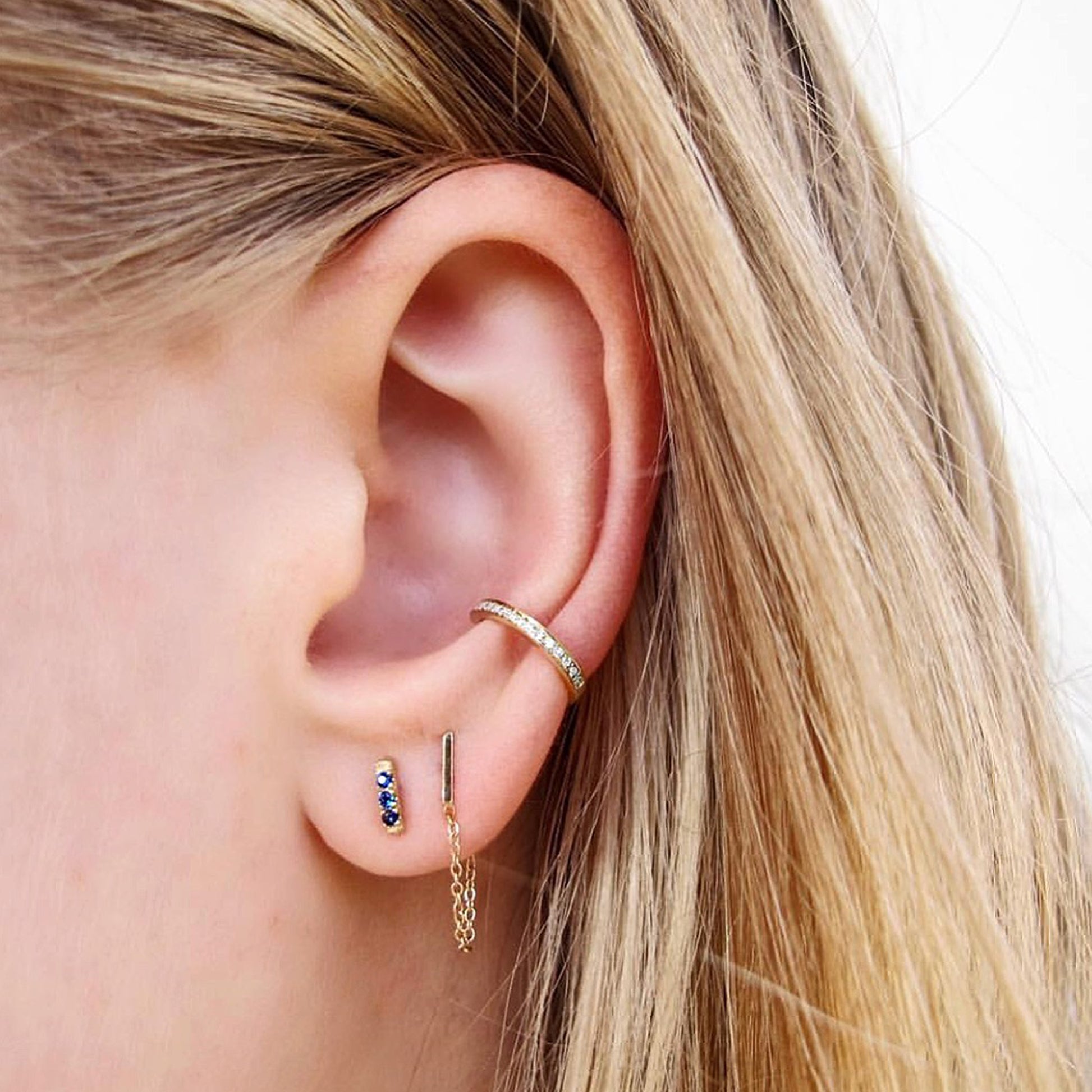 14K Gold XS Bar Chain Dangle Stud Earrings