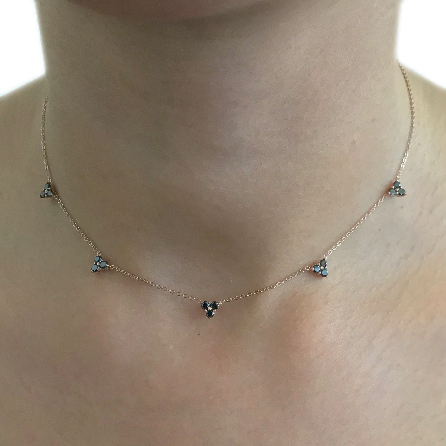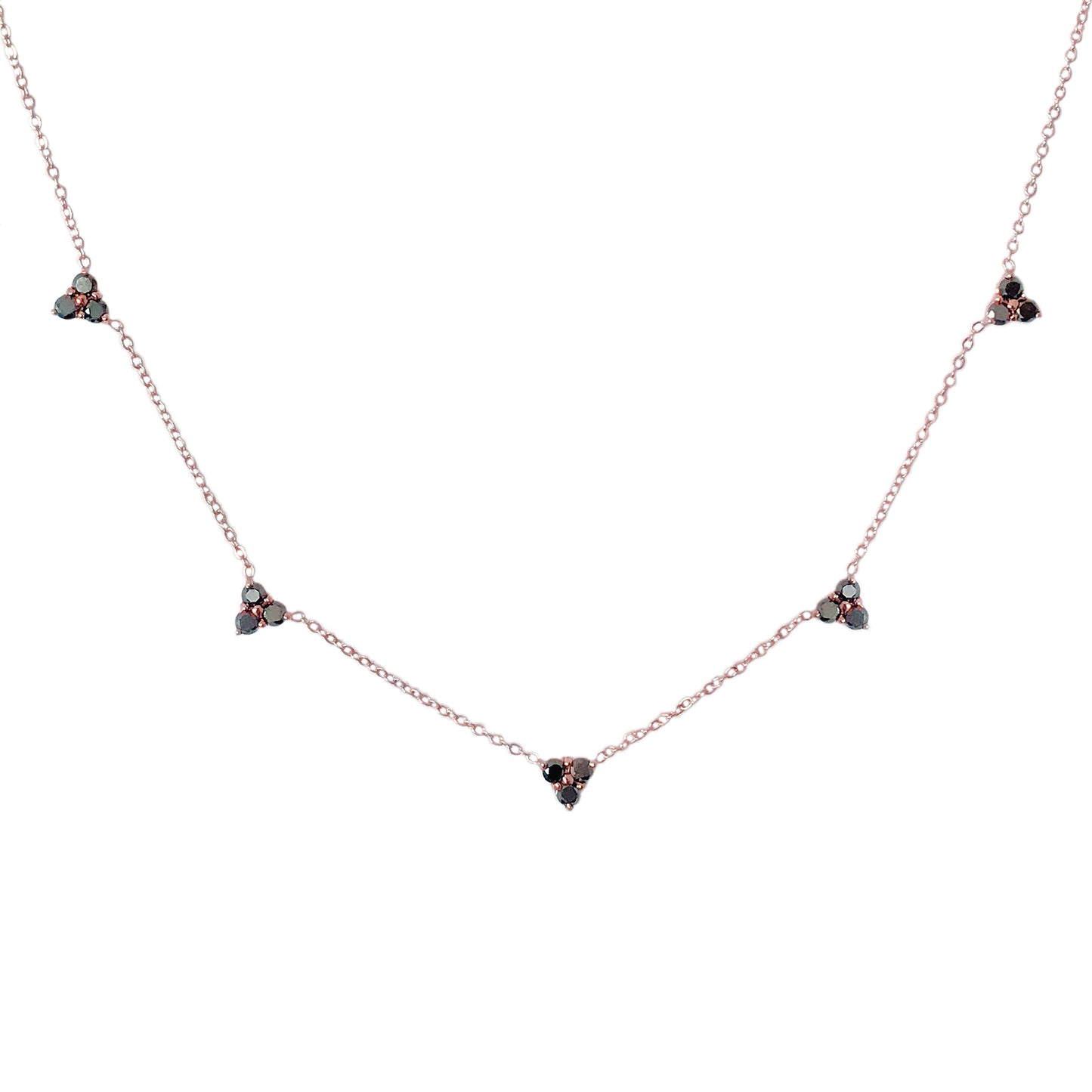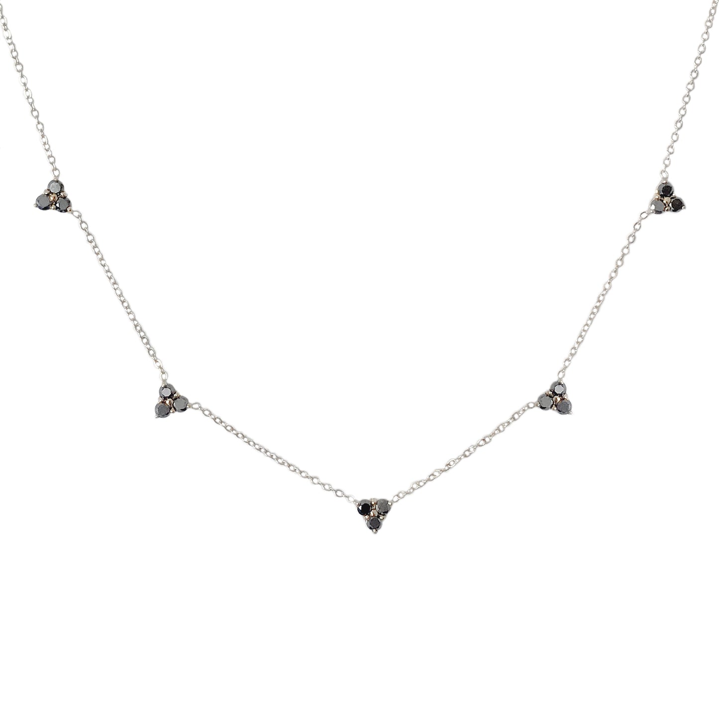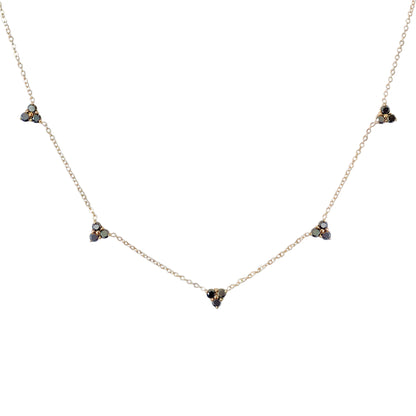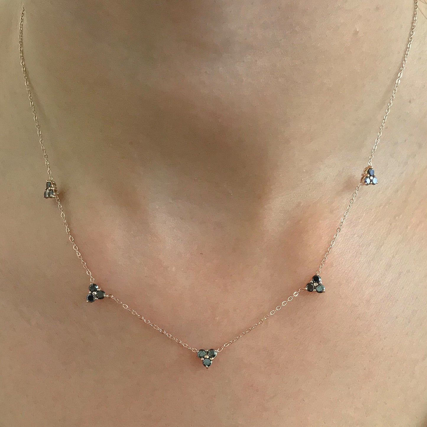 14K Gold Black Diamond 5 Trinity Cluster Charm Necklace