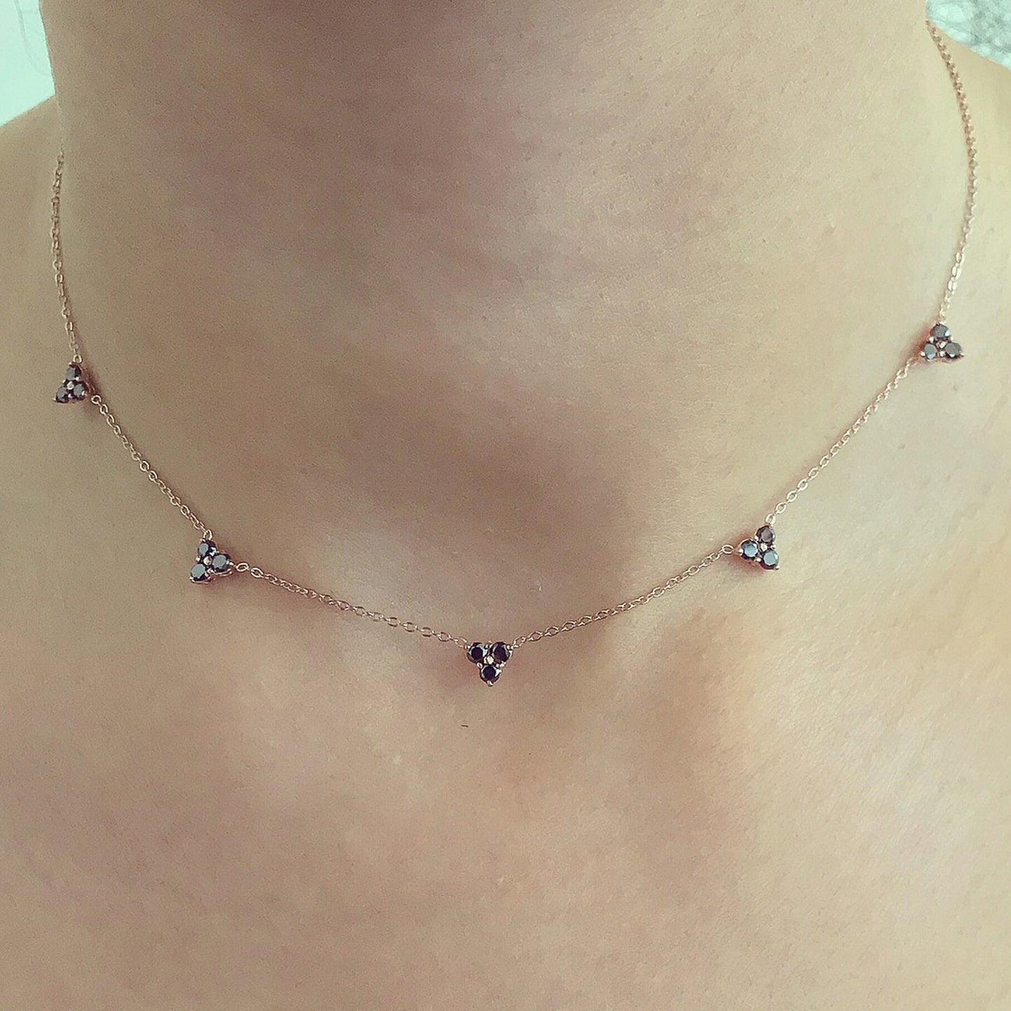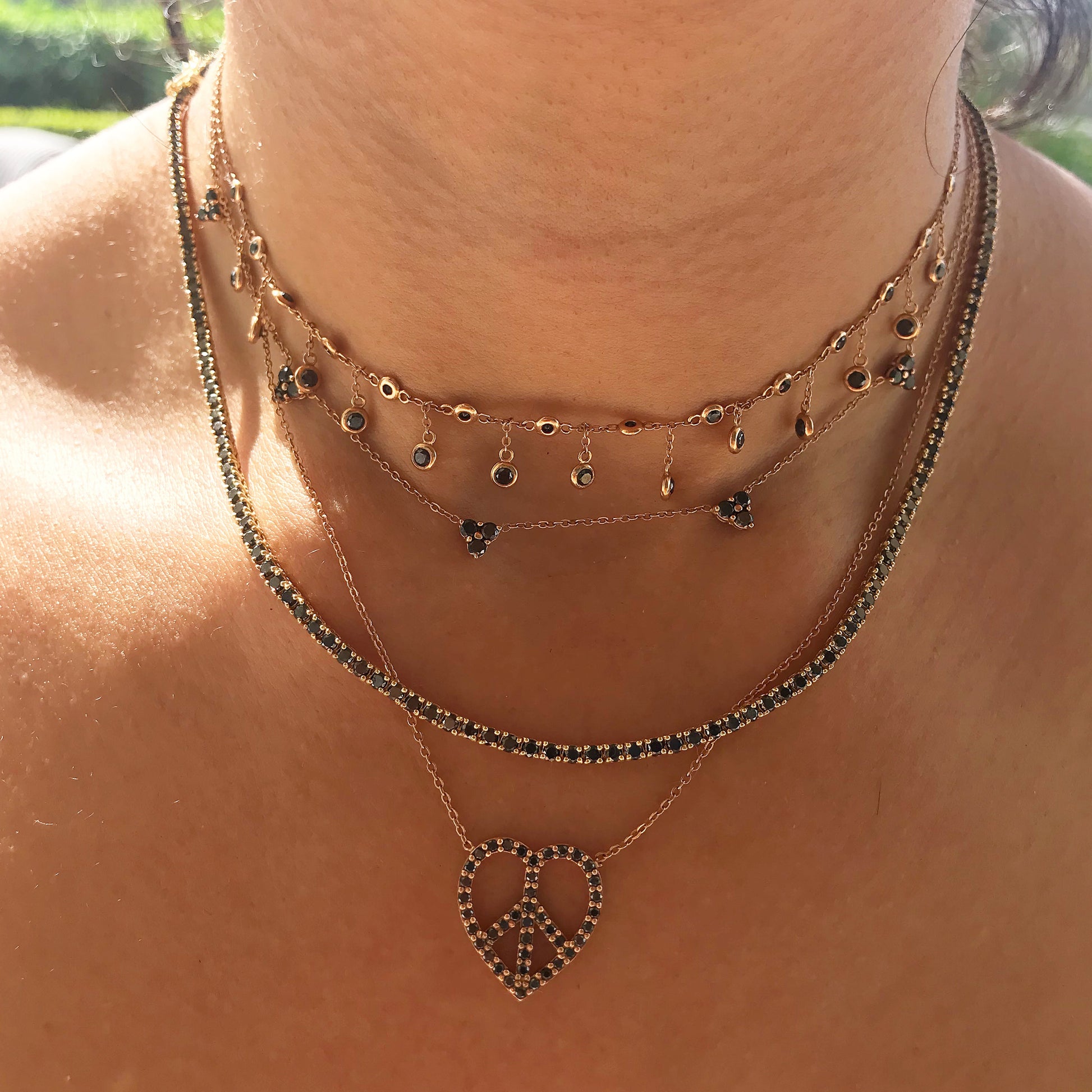This exquisite necklace features AAA quality genuine round brilliant cut natural black diamonds set in 14K solid gold. It is paired with a finely crafted, durable 14K solid gold chain, secured by a lobster claw clasp and adorned with the Nana Bijou signature logo tag. The necklace length is adjustable for a perfect fit.