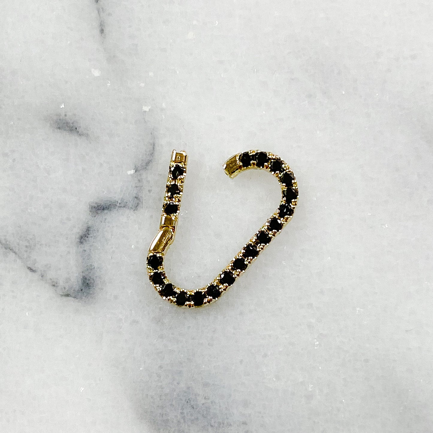 14K Gold Black Diamond Elongated Oval Charm Enhancer ~ Large Size
