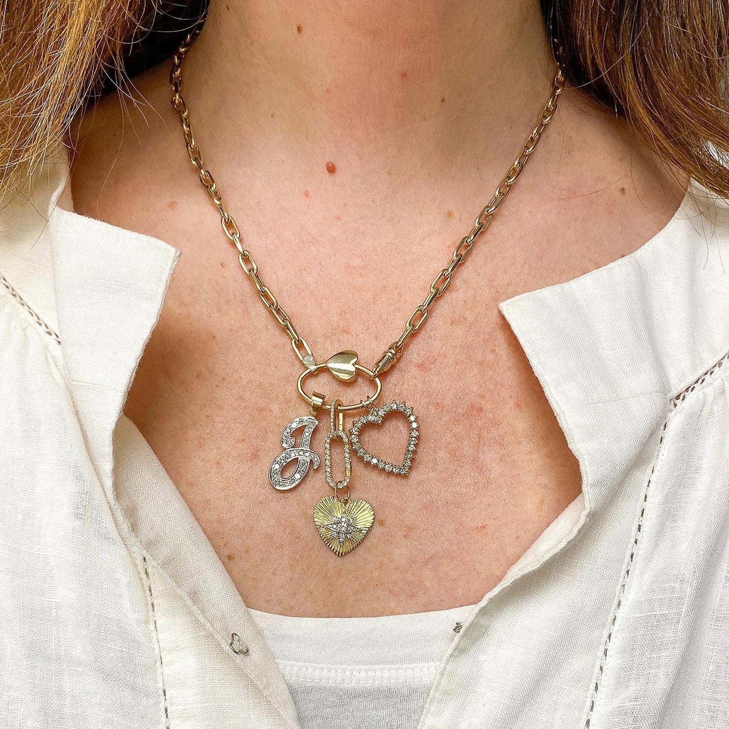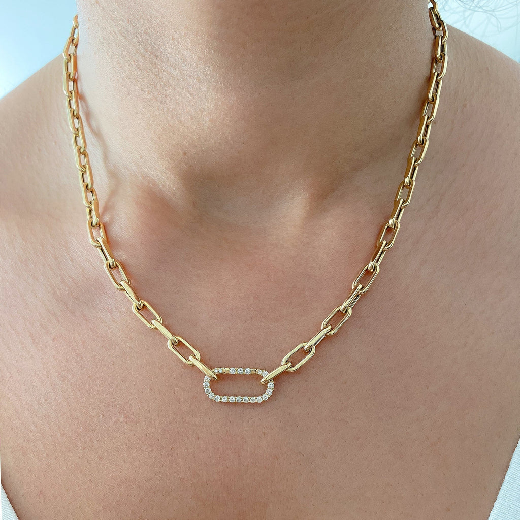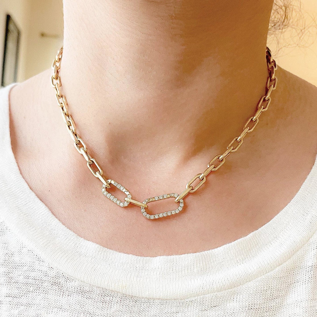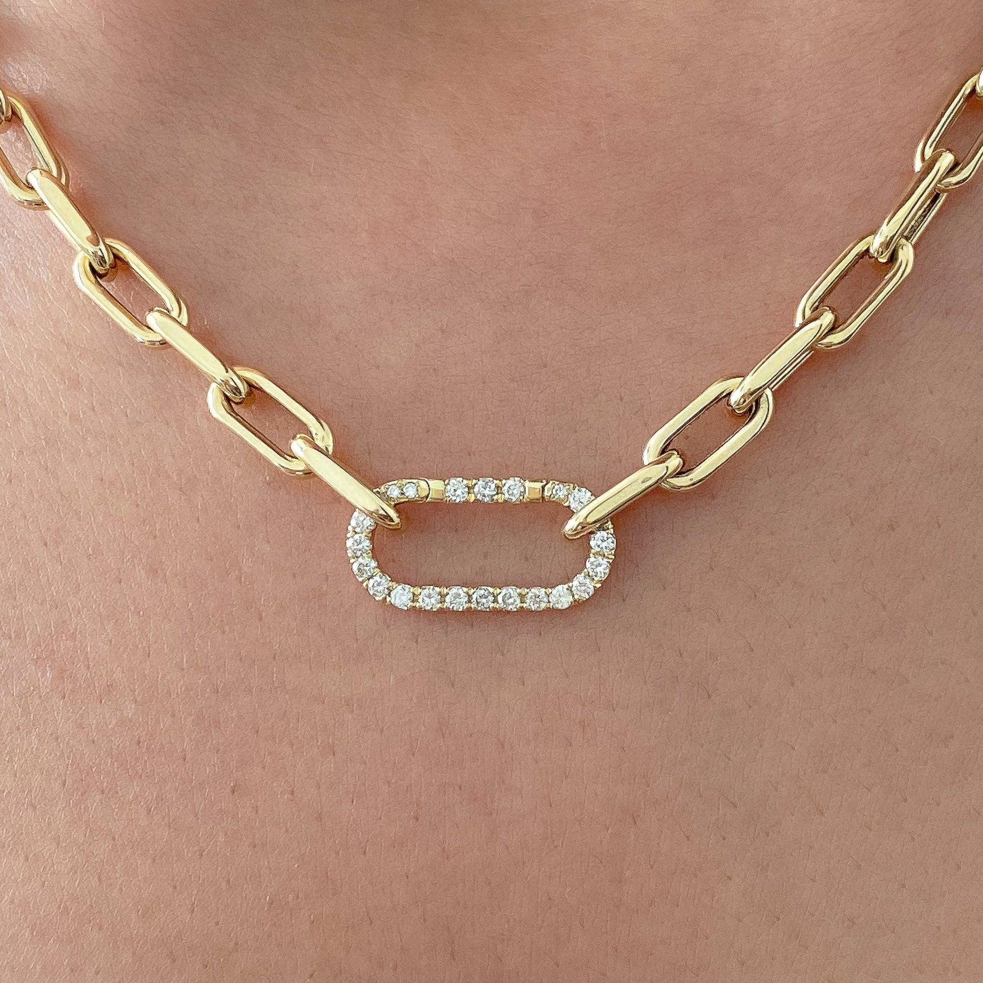 This distinctively handcrafted charm enhancer is crafted from 14K solid gold and features genuine AAA quality natural black diamonds adorning both sides of the elongated oval link.