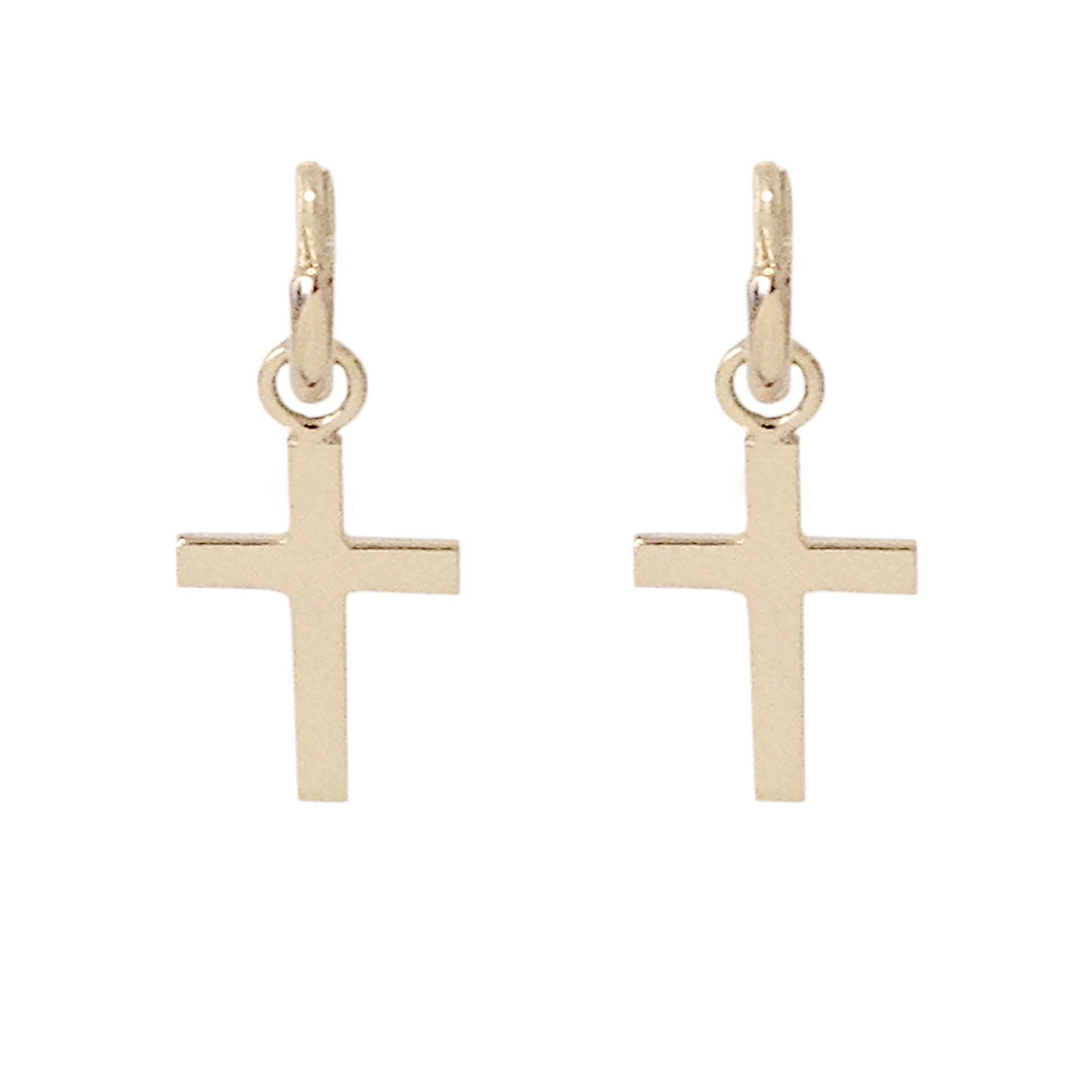 14K Gold Cross Charm Dangle Huggie Hoop Earrings