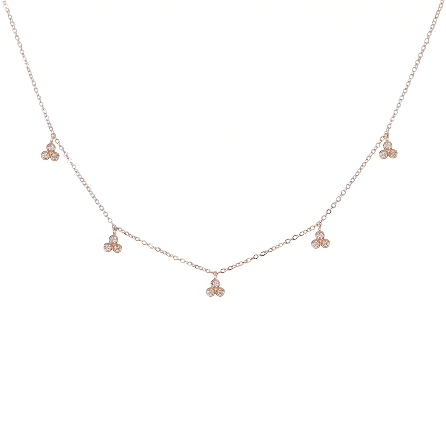 14K Gold Diamond 5 Trinity Ball Dangle Charm Necklace