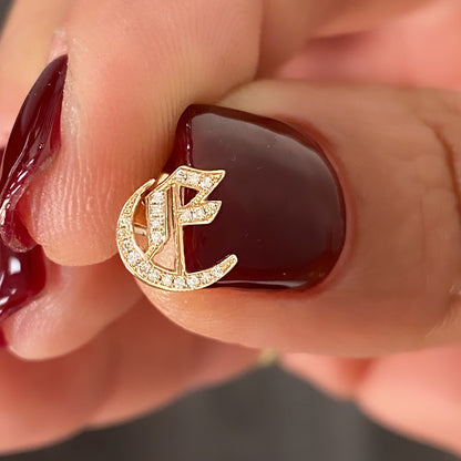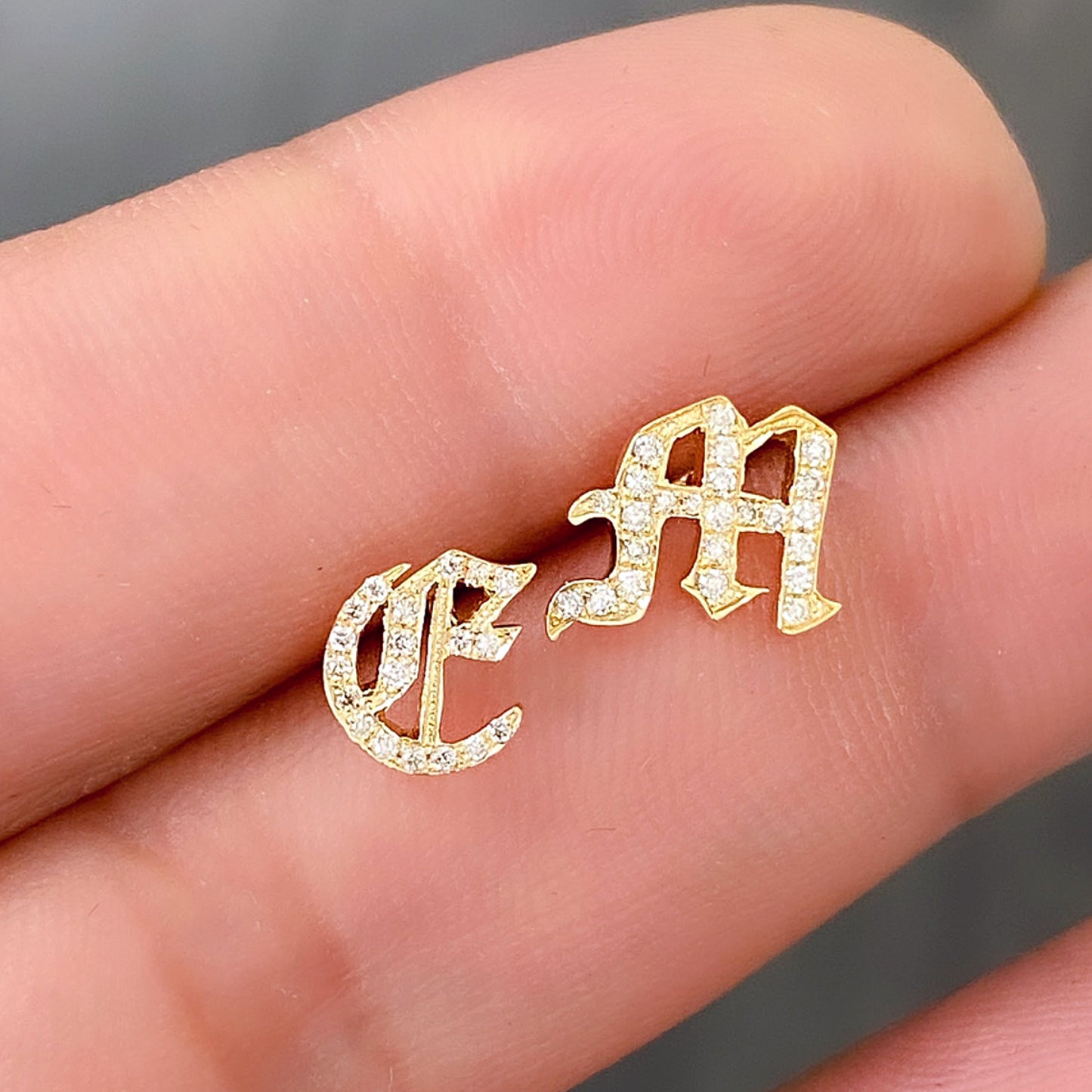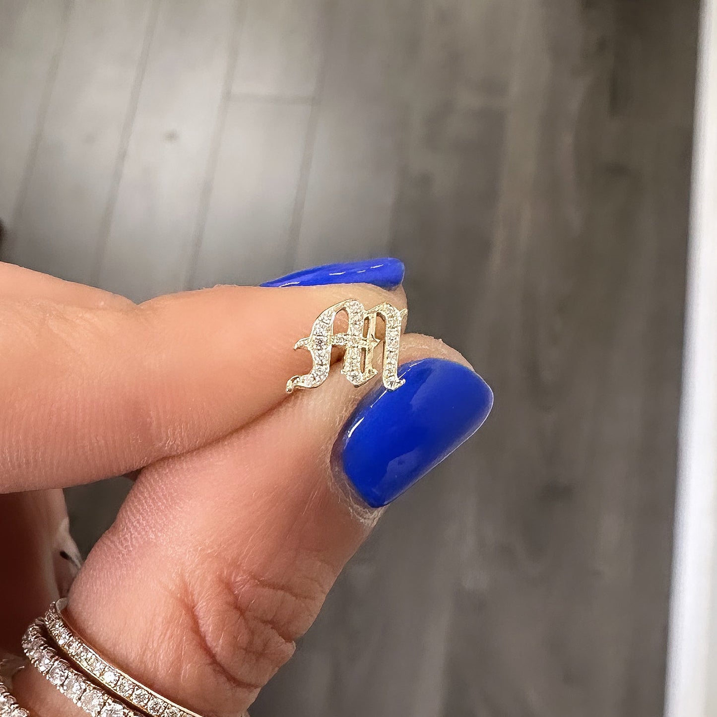 14K Gold Diamond Alphabet Letter Initial Single Stud Earring, Old English Font