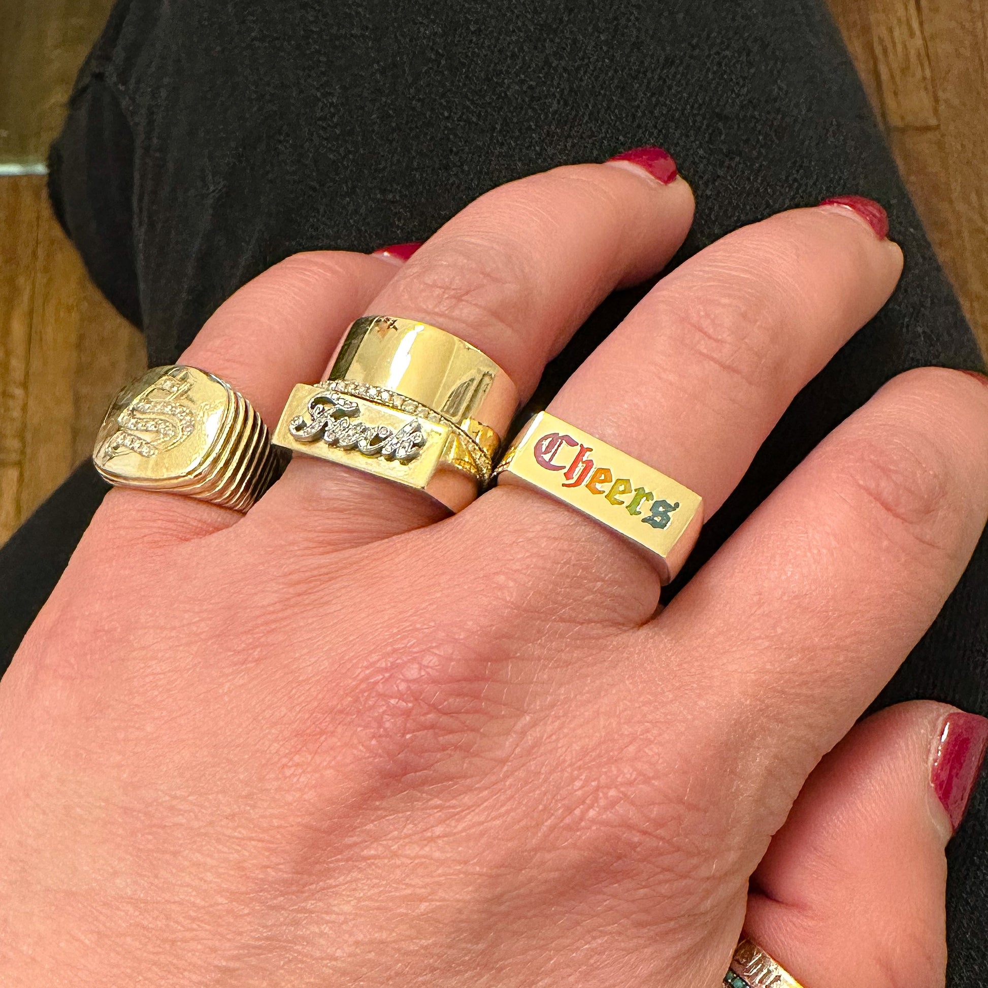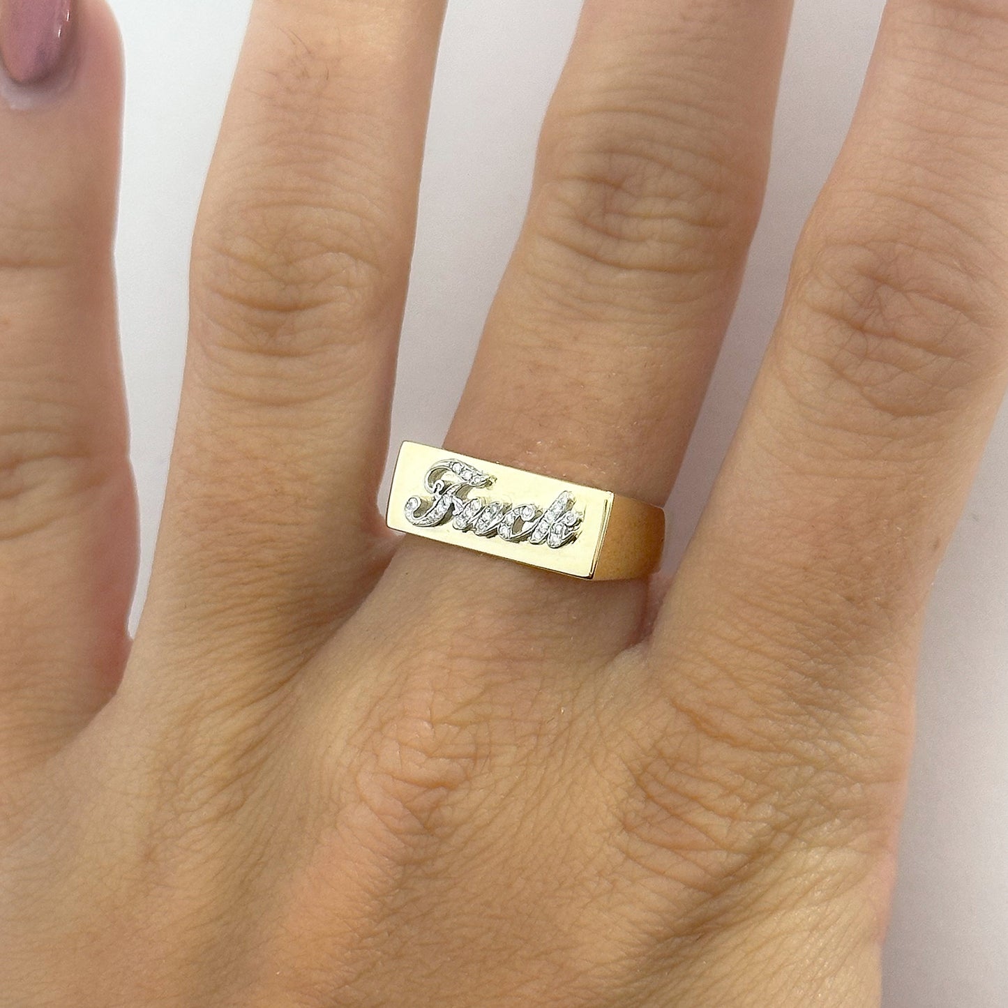 14K Gold Diamond "Fuck" Rectangle Signet Ring