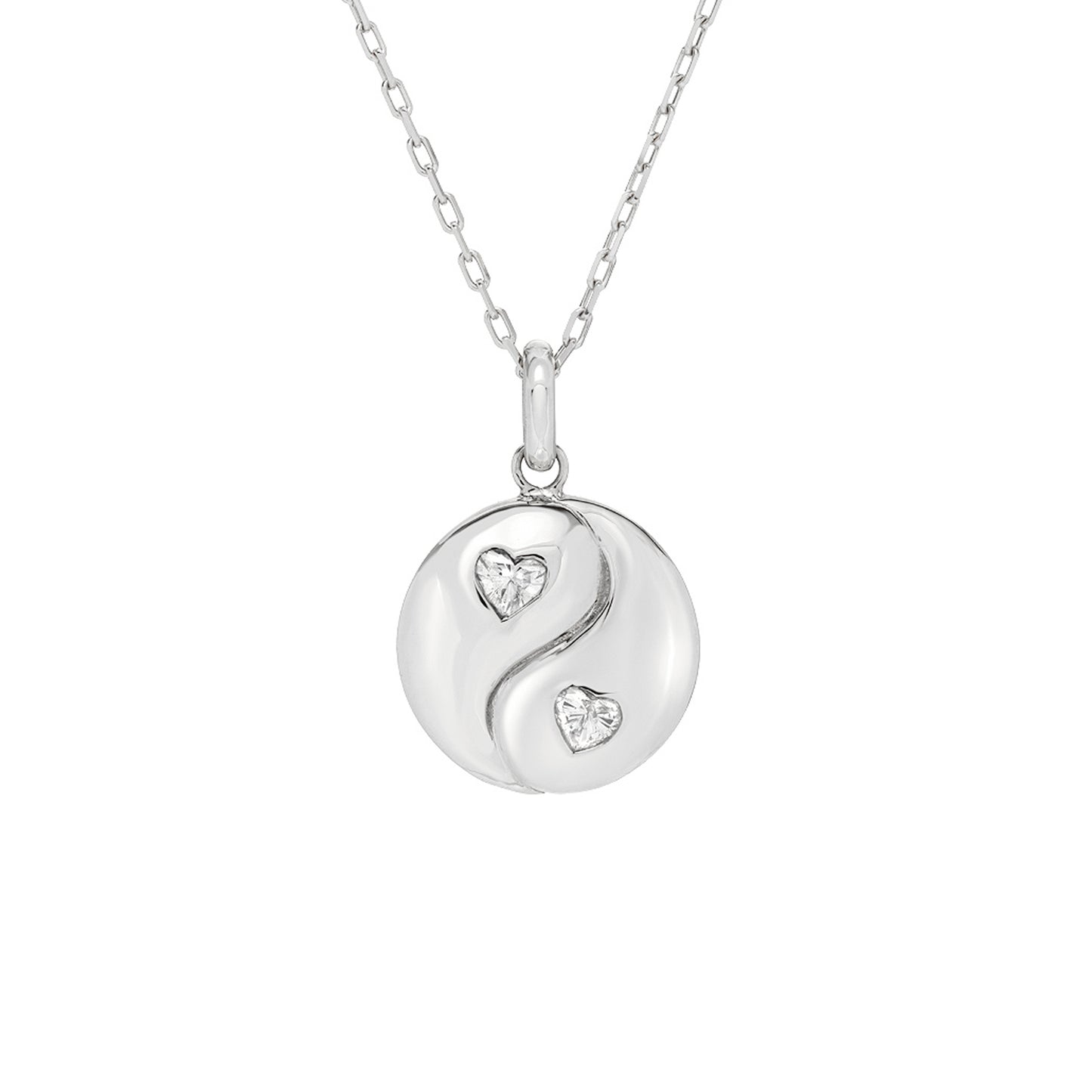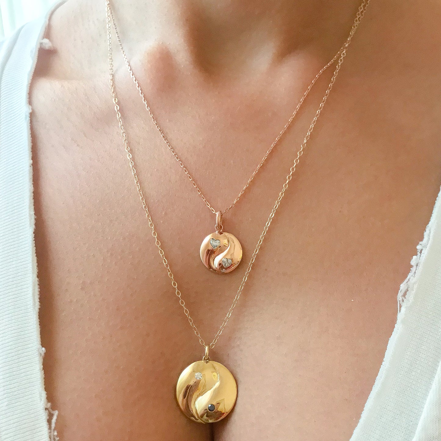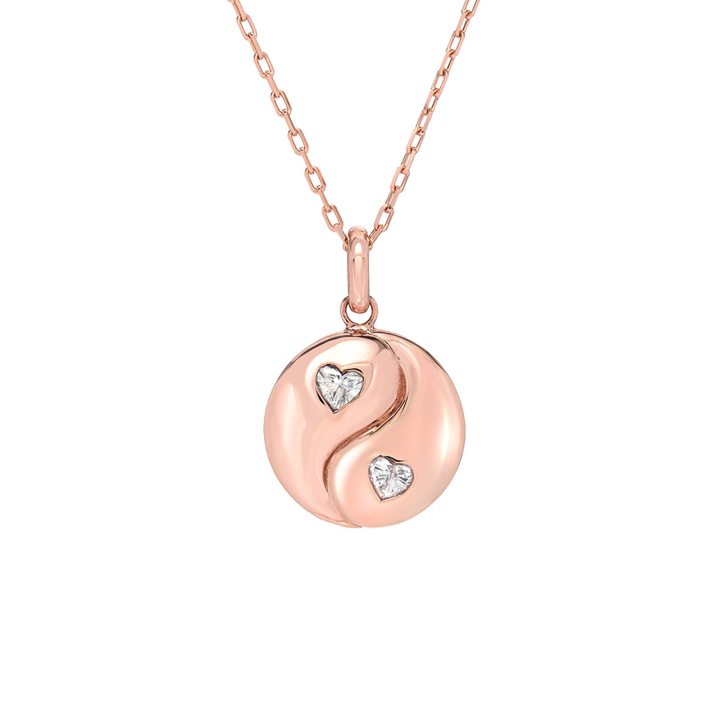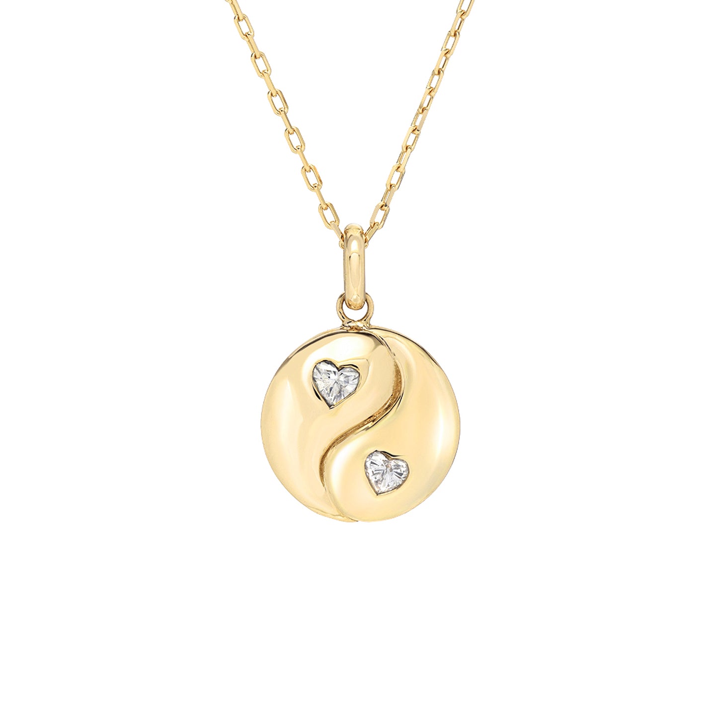 14K Gold Diamond Heart Yin Yang Charm Pendant ~ Small Size