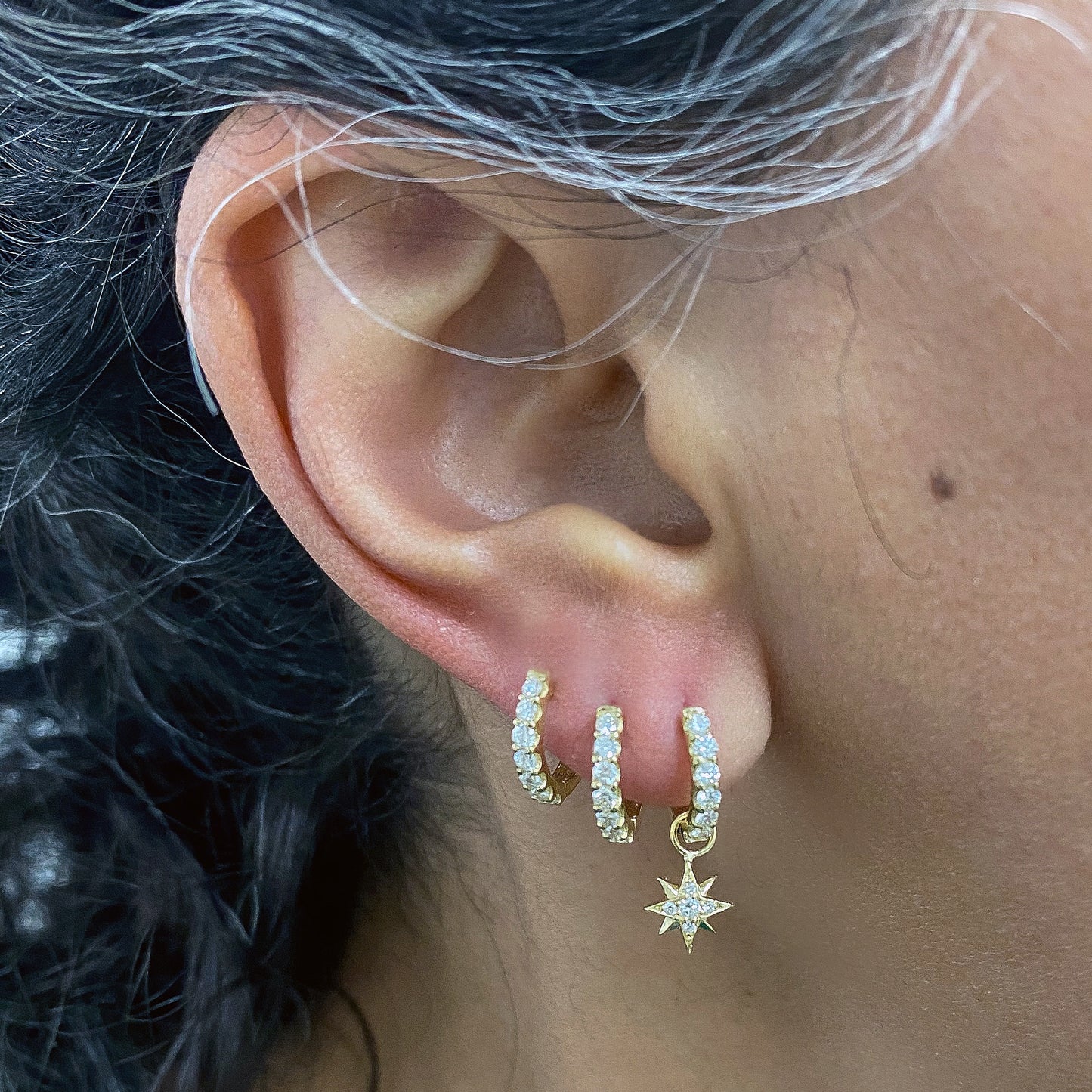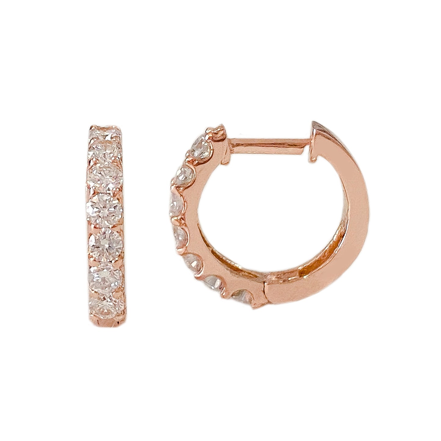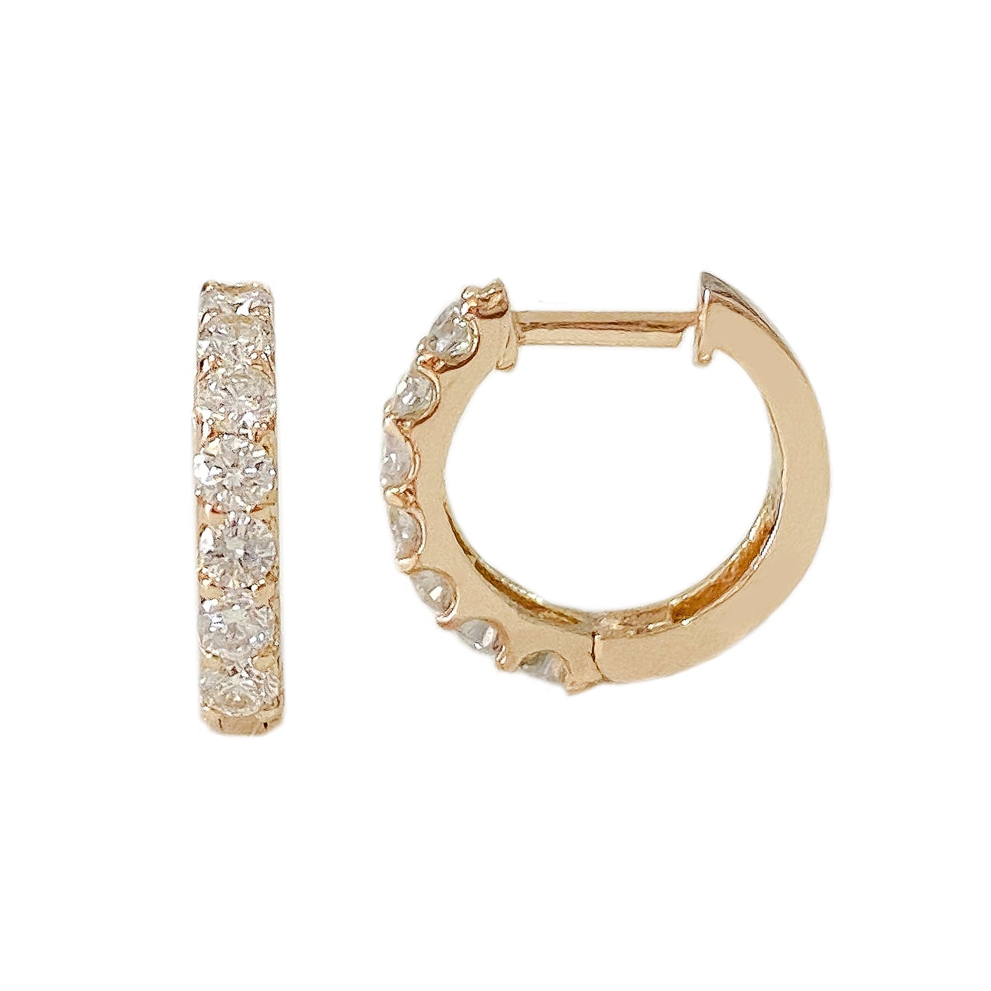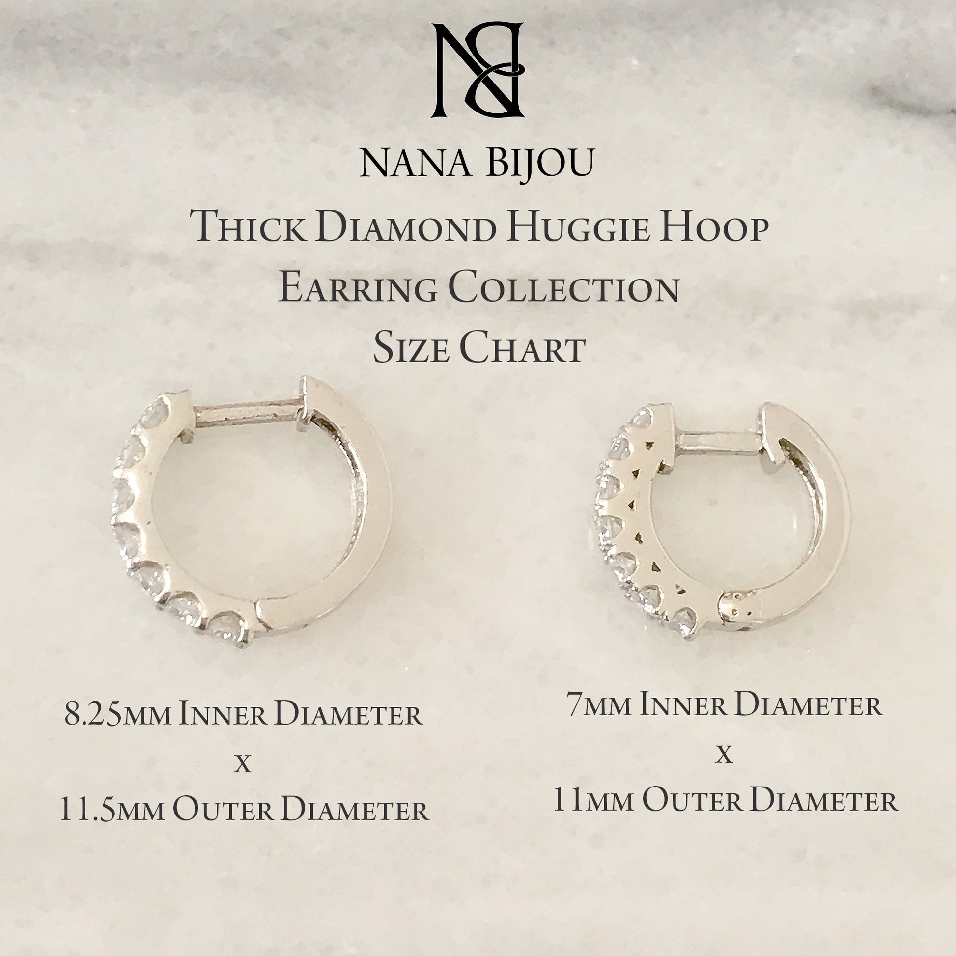 14K Gold Diamond Thick Huggie Hoop Earrings (11.5mm x 8.25mm)