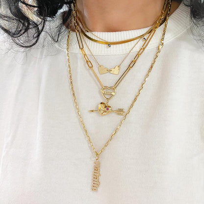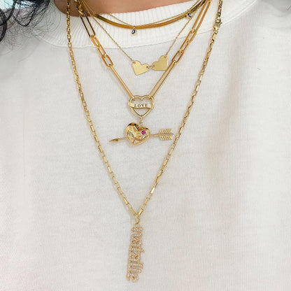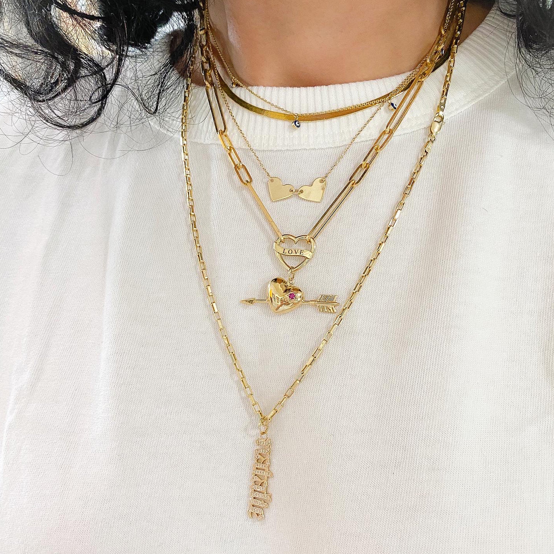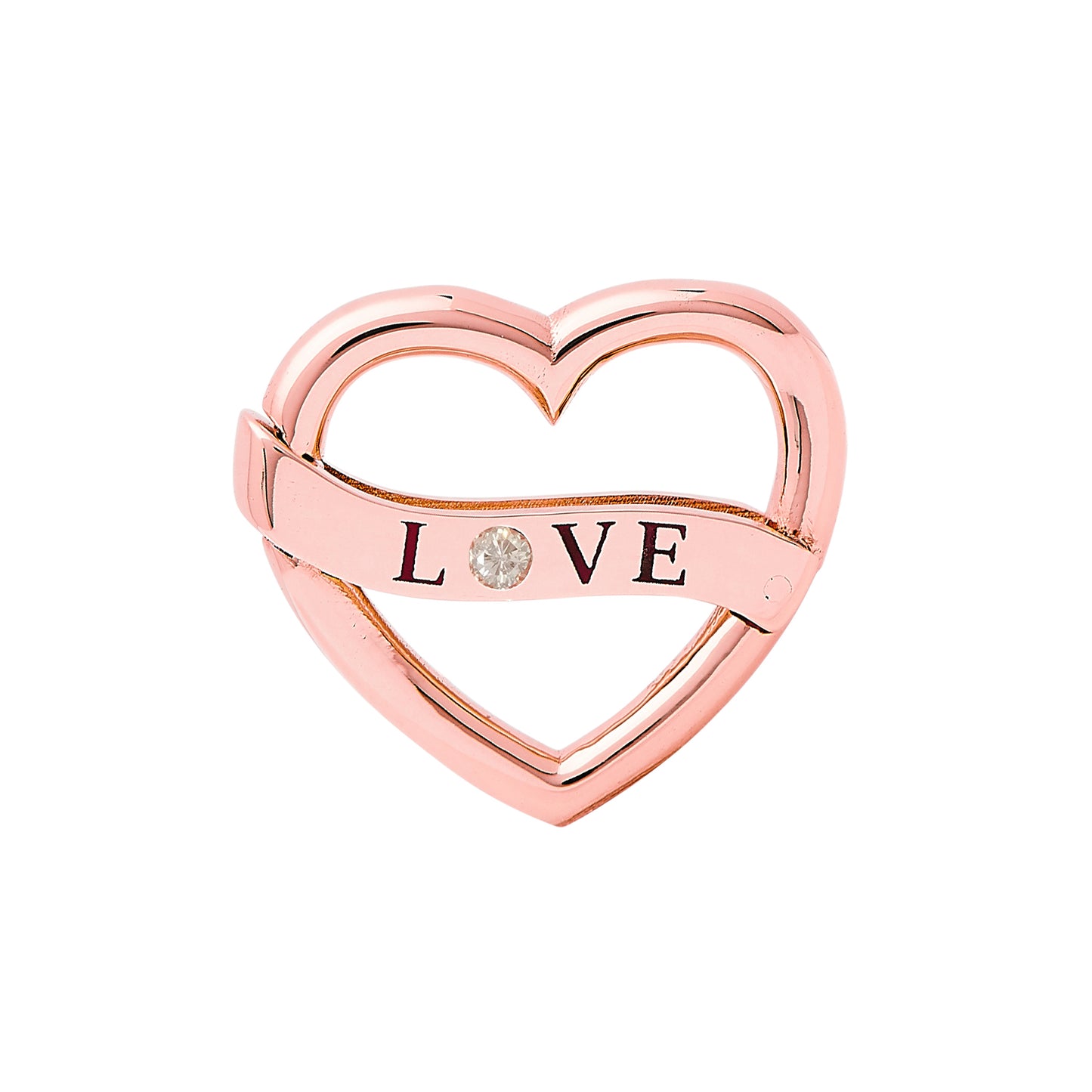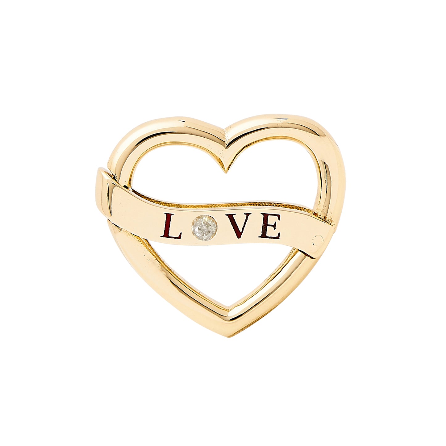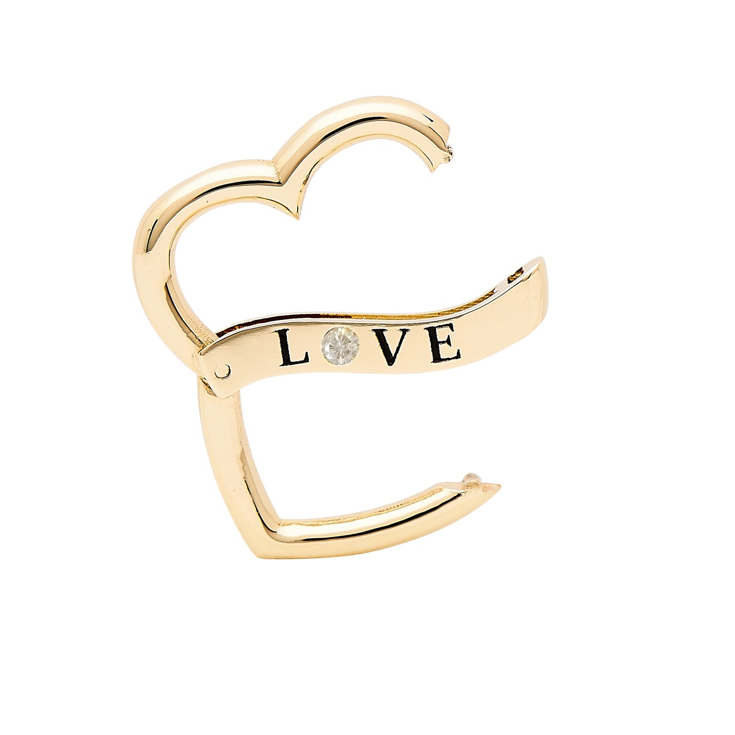 14K Gold Diamond "LOVE" Heart Double Lock Charm Enhancer