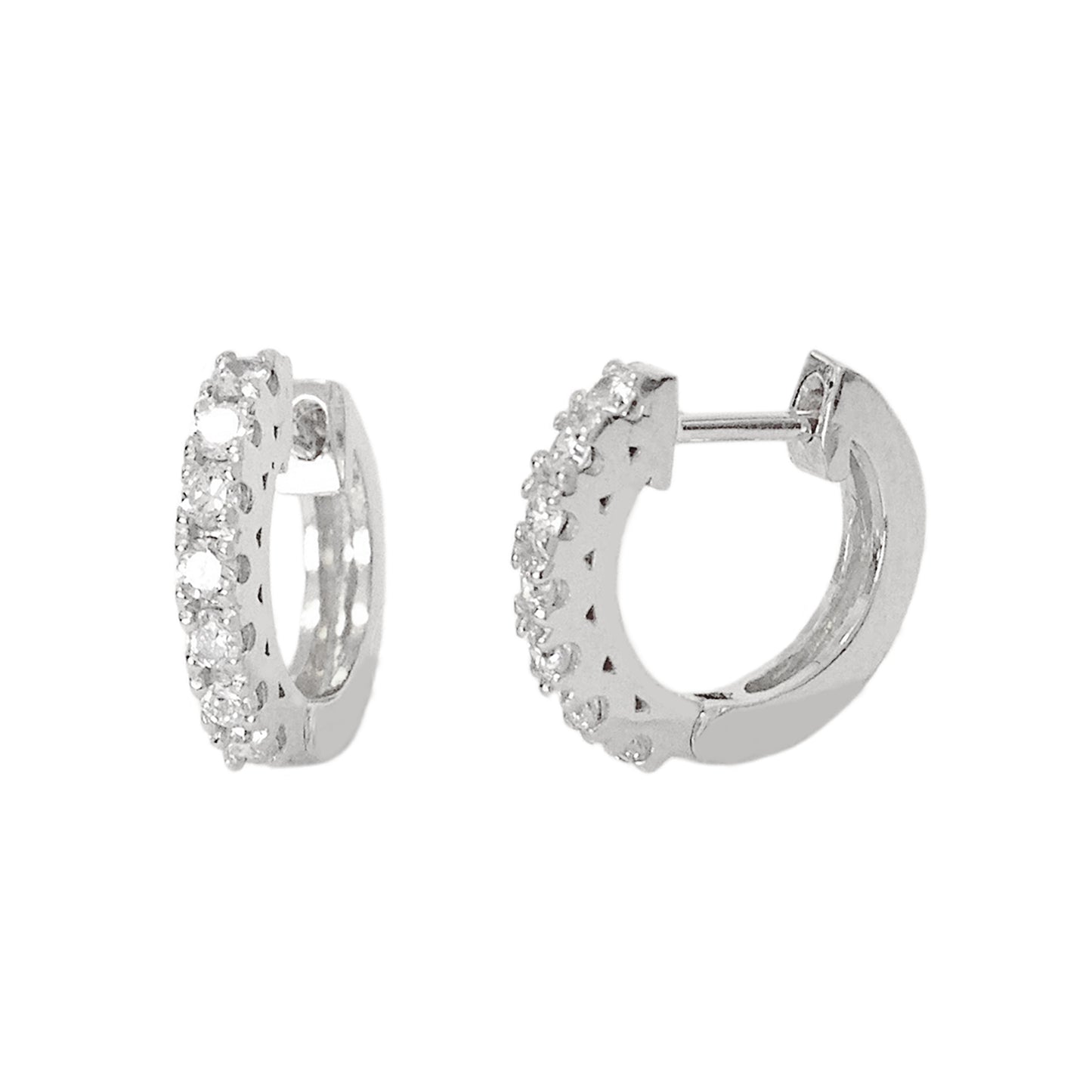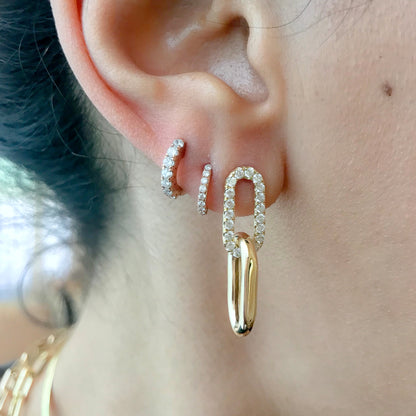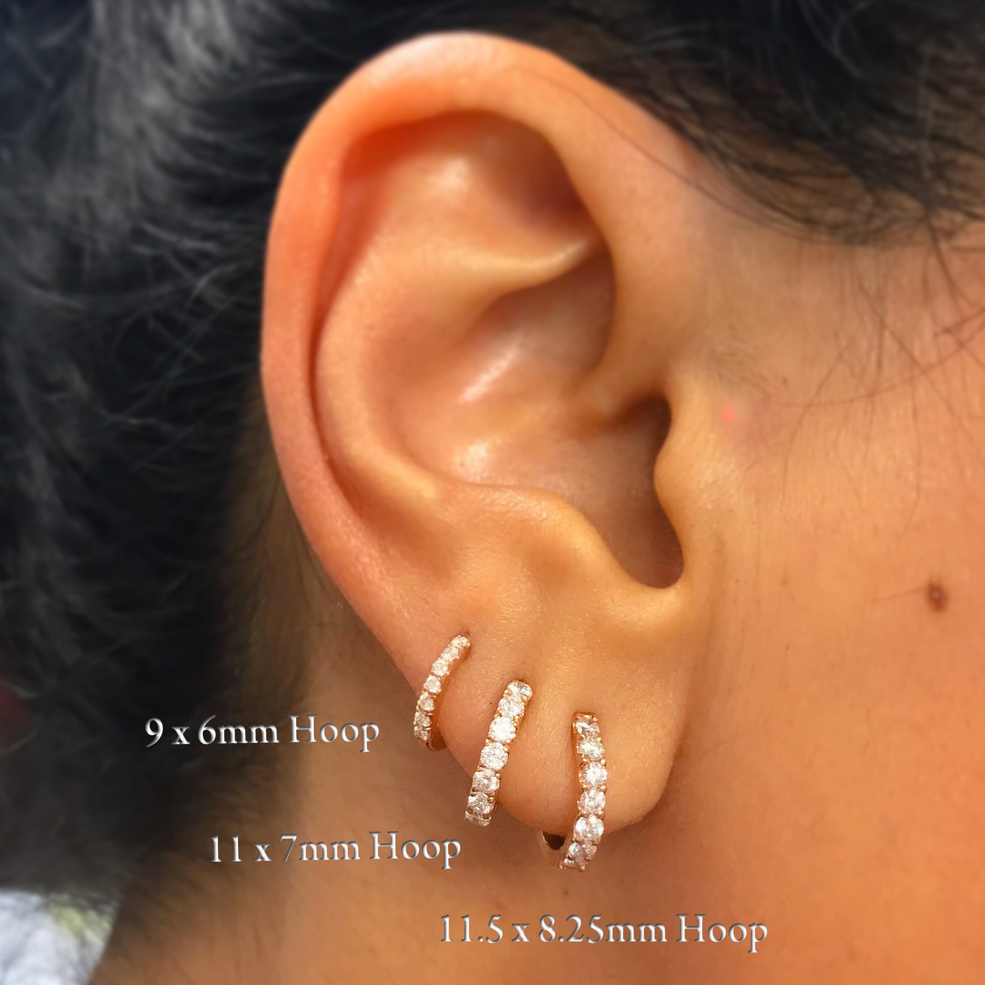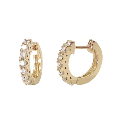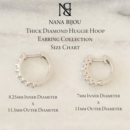 14K Gold Diamond Thick Huggie Hoop Earrings (11mm x 6mm)