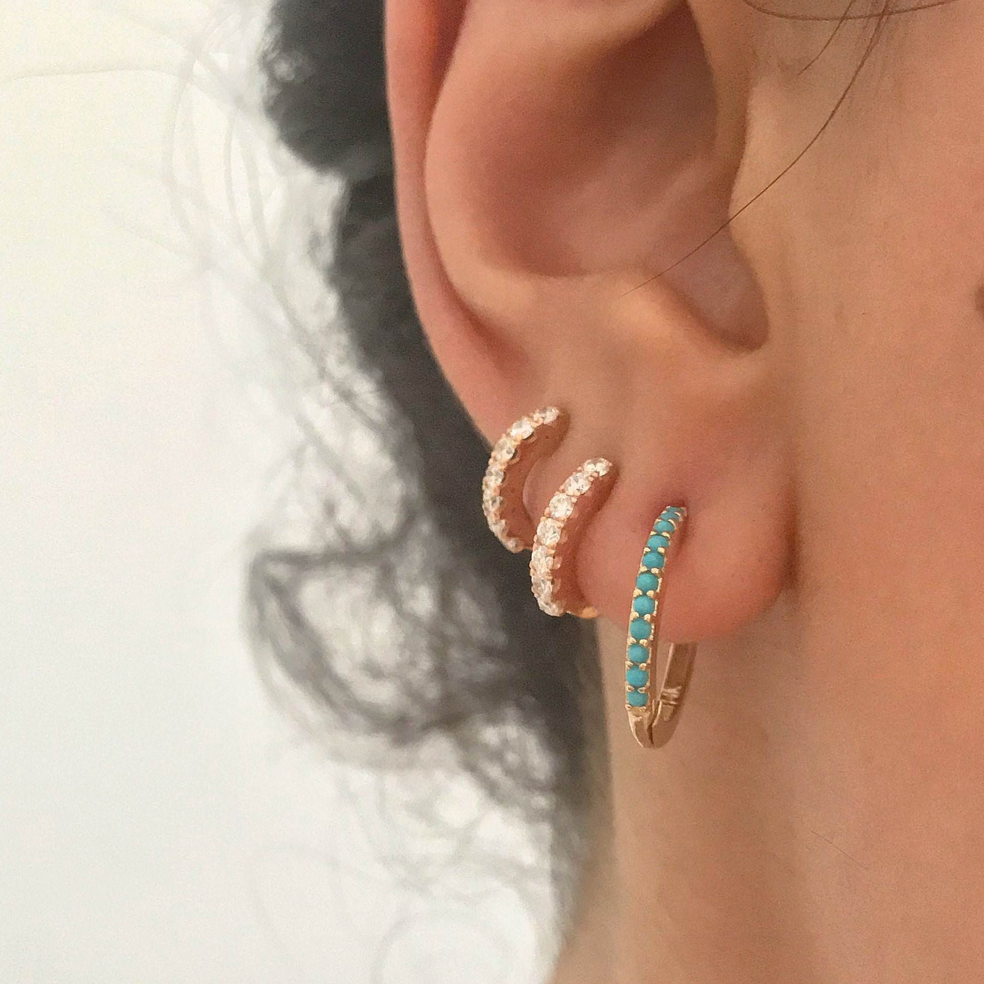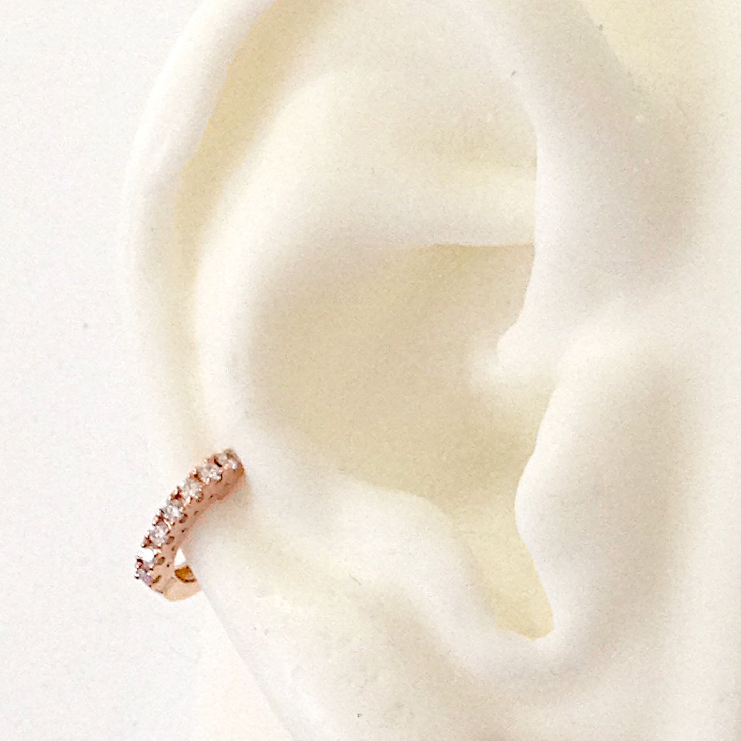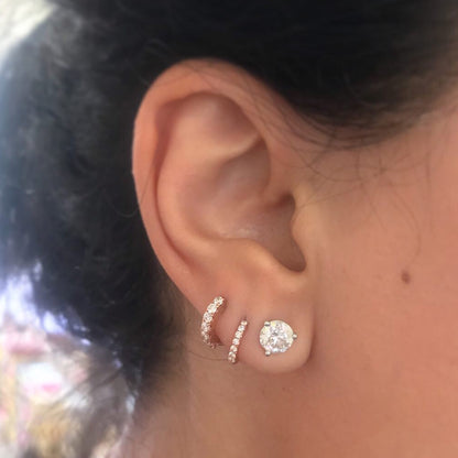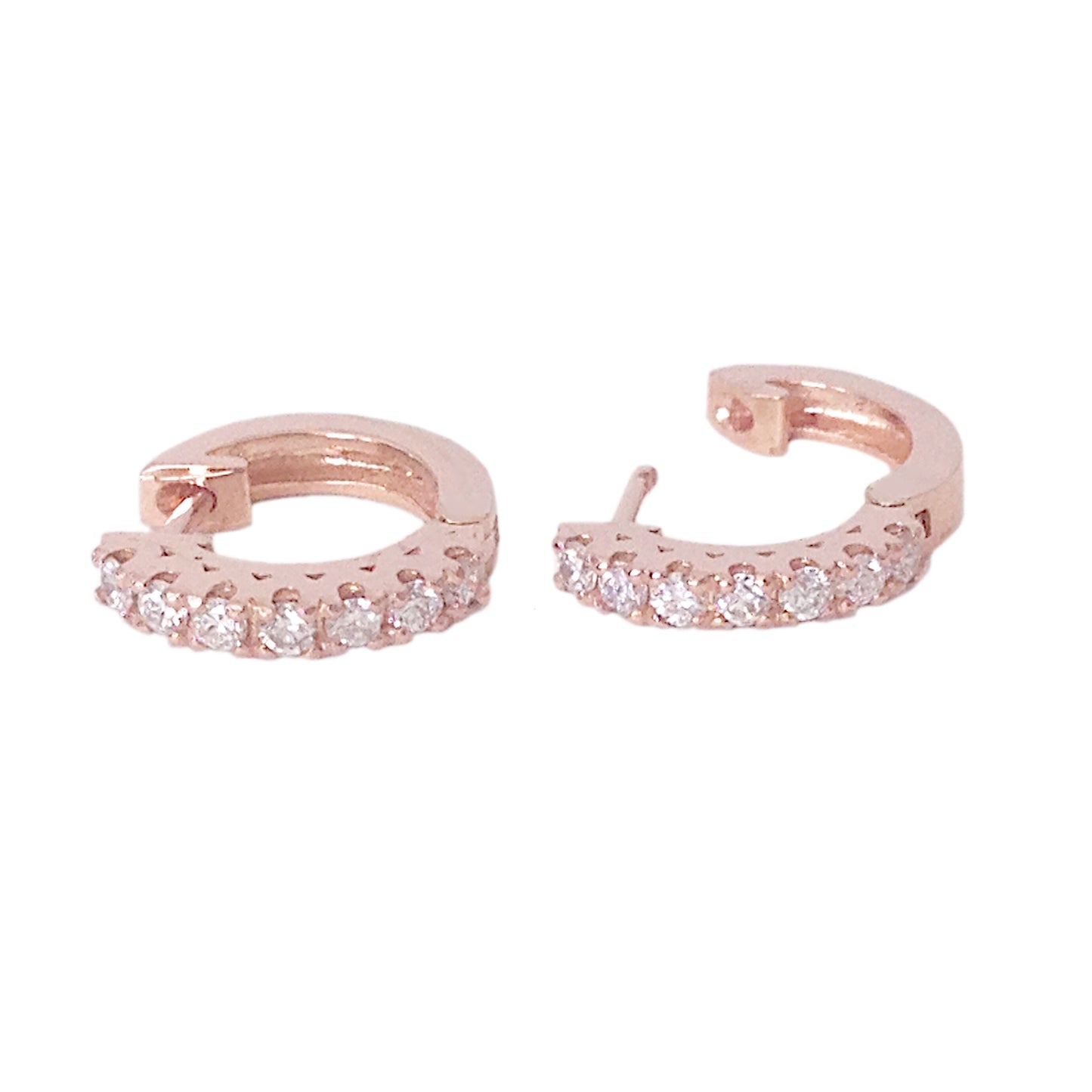 14K Gold Diamond Thick Huggie Hoop Earrings (11mm x 6mm)