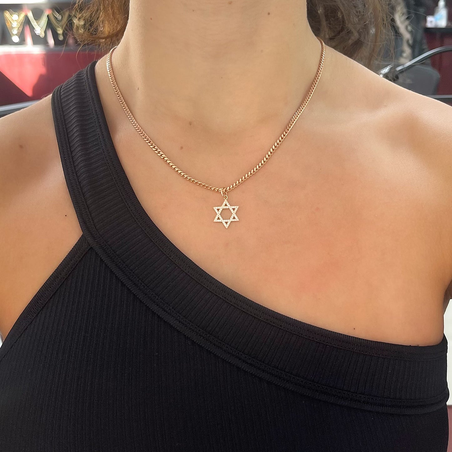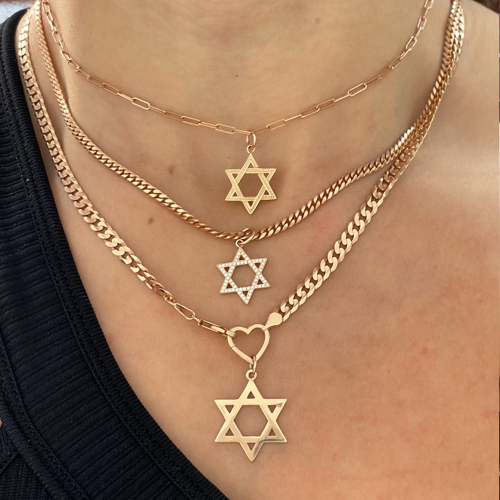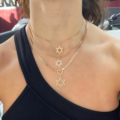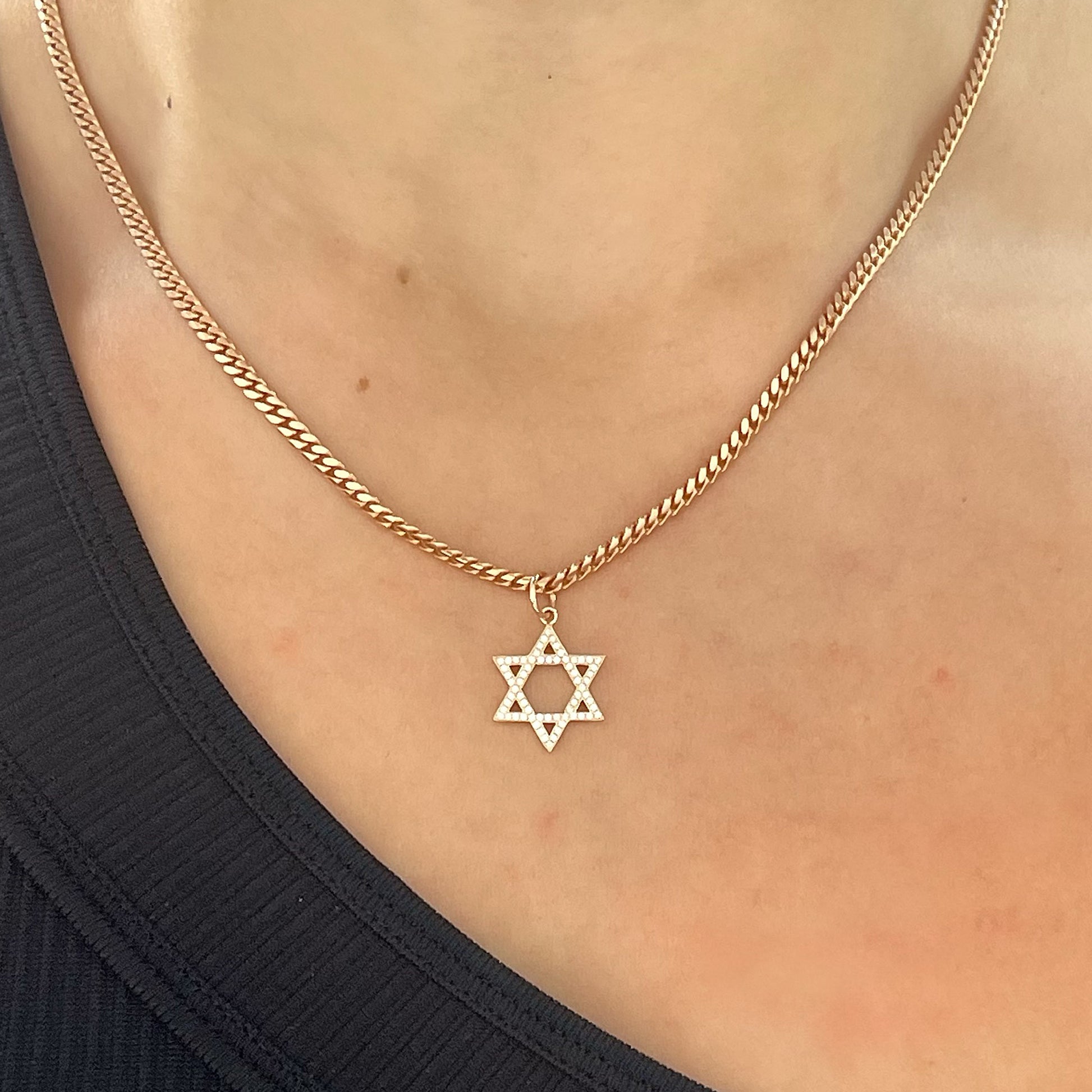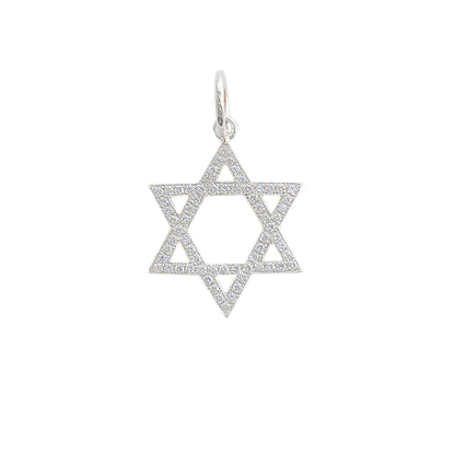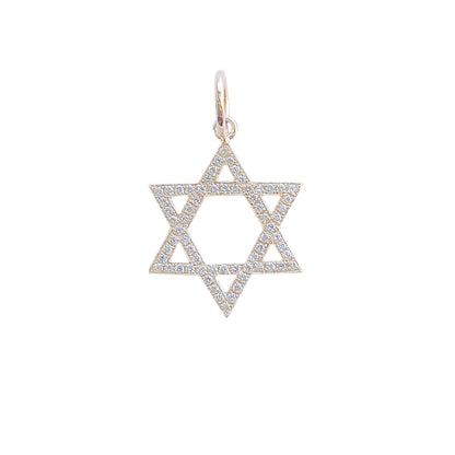 14K Gold Diamond Star of David Charm Pendant, Medium Size