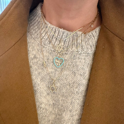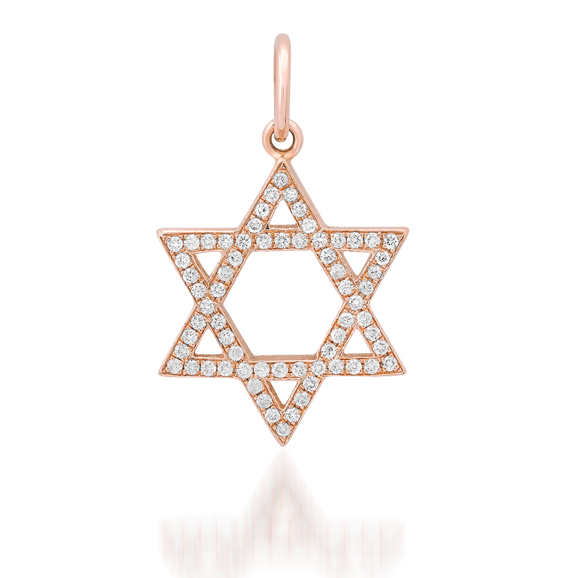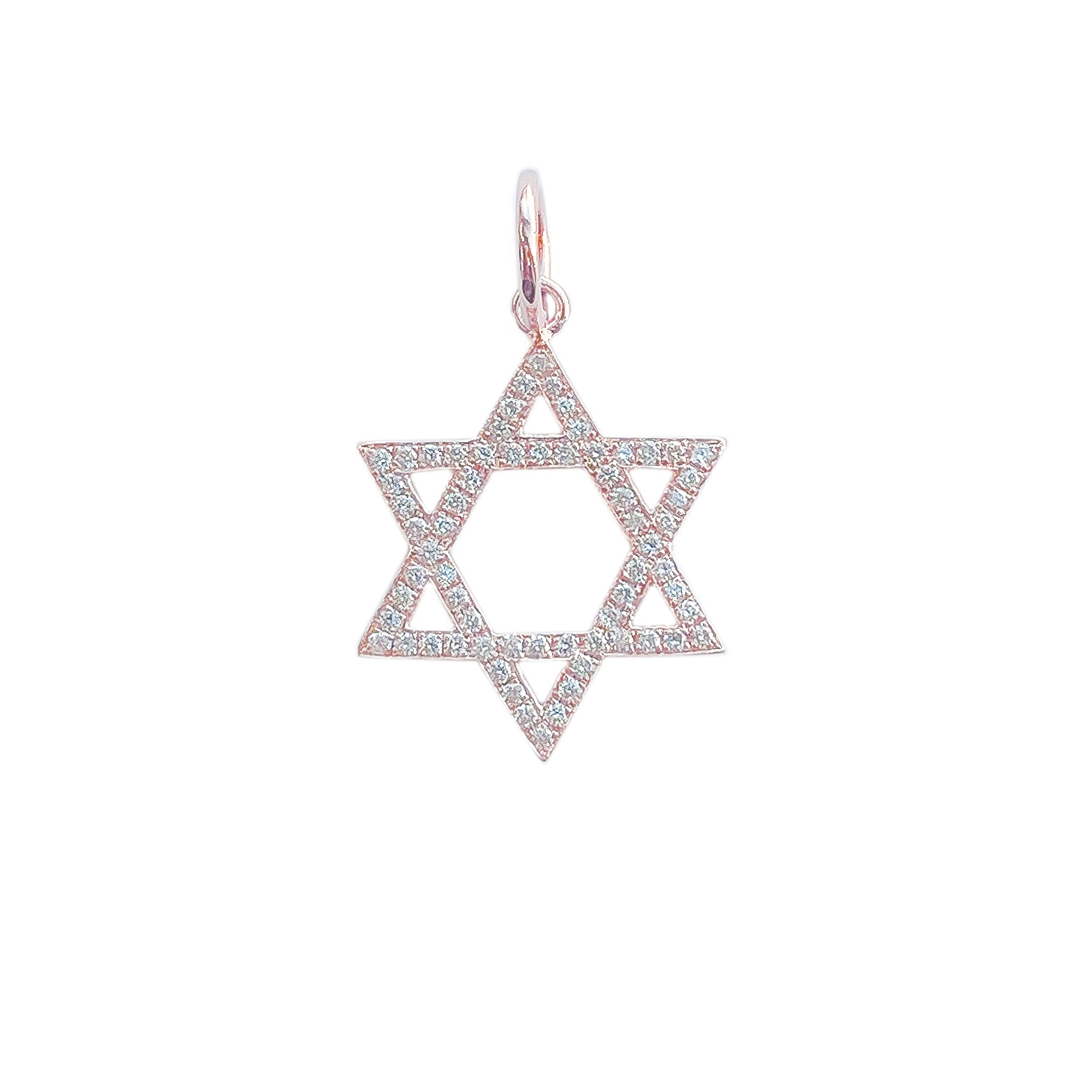 This meaningful pendant is the universal symbol of the Jewish star, known as the Star of David. The charm is composed of 14K solid gold and beautifully finished with GVS1 quality natural real diamonds.