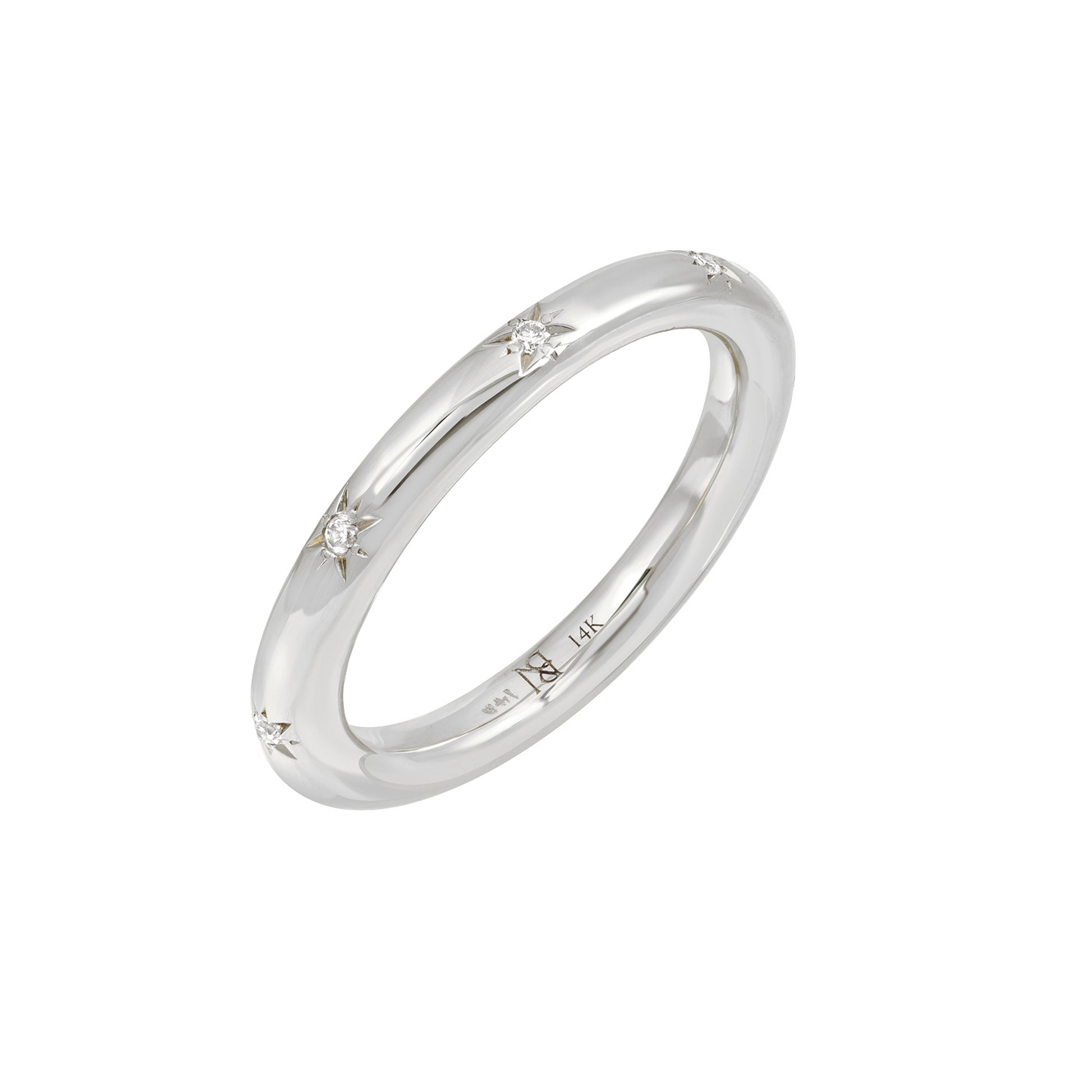 14K Gold Diamond Star Set 3mm Round Eternity Band