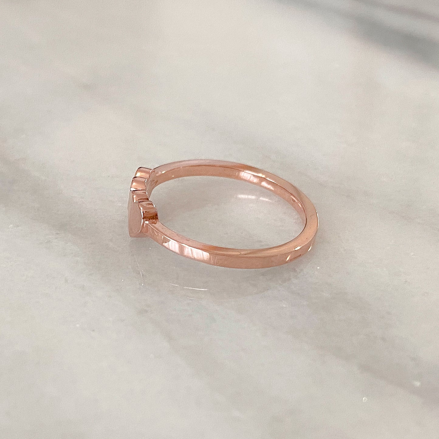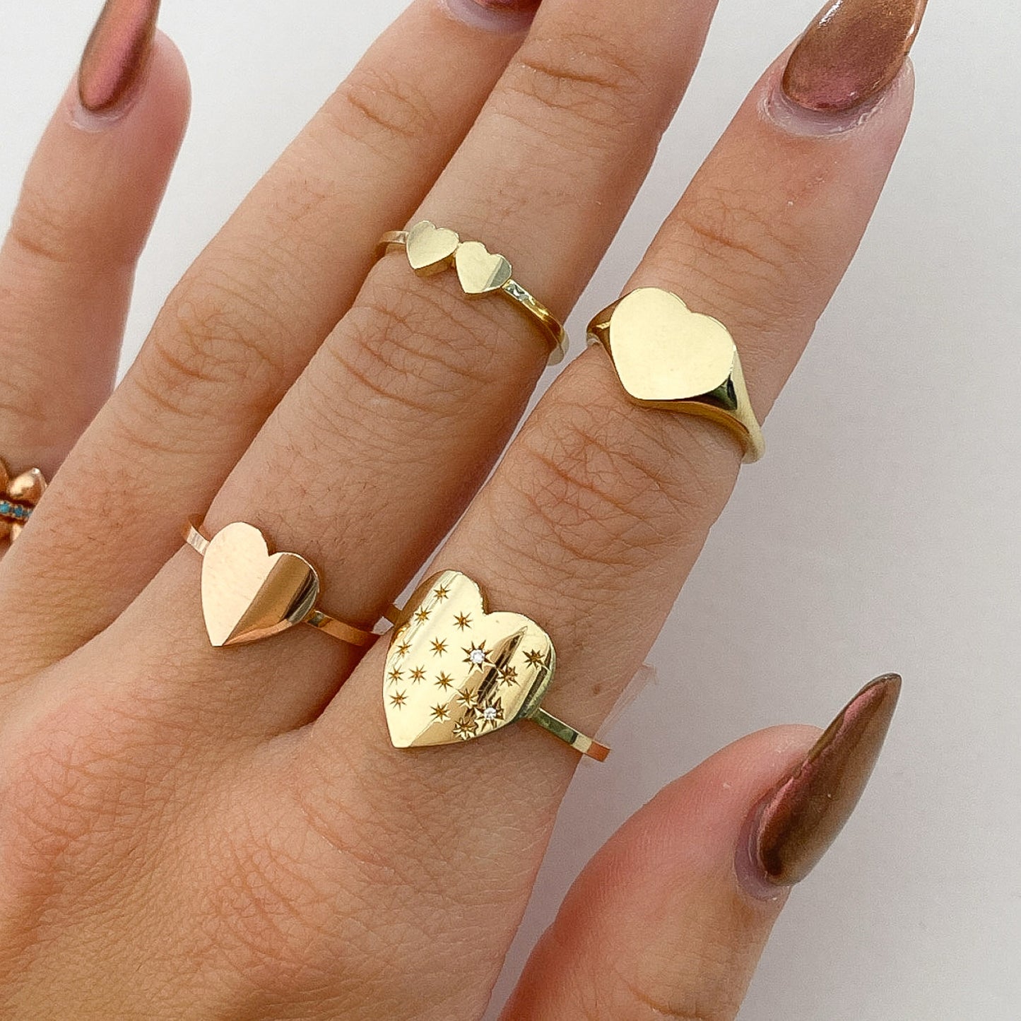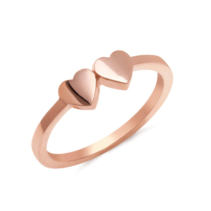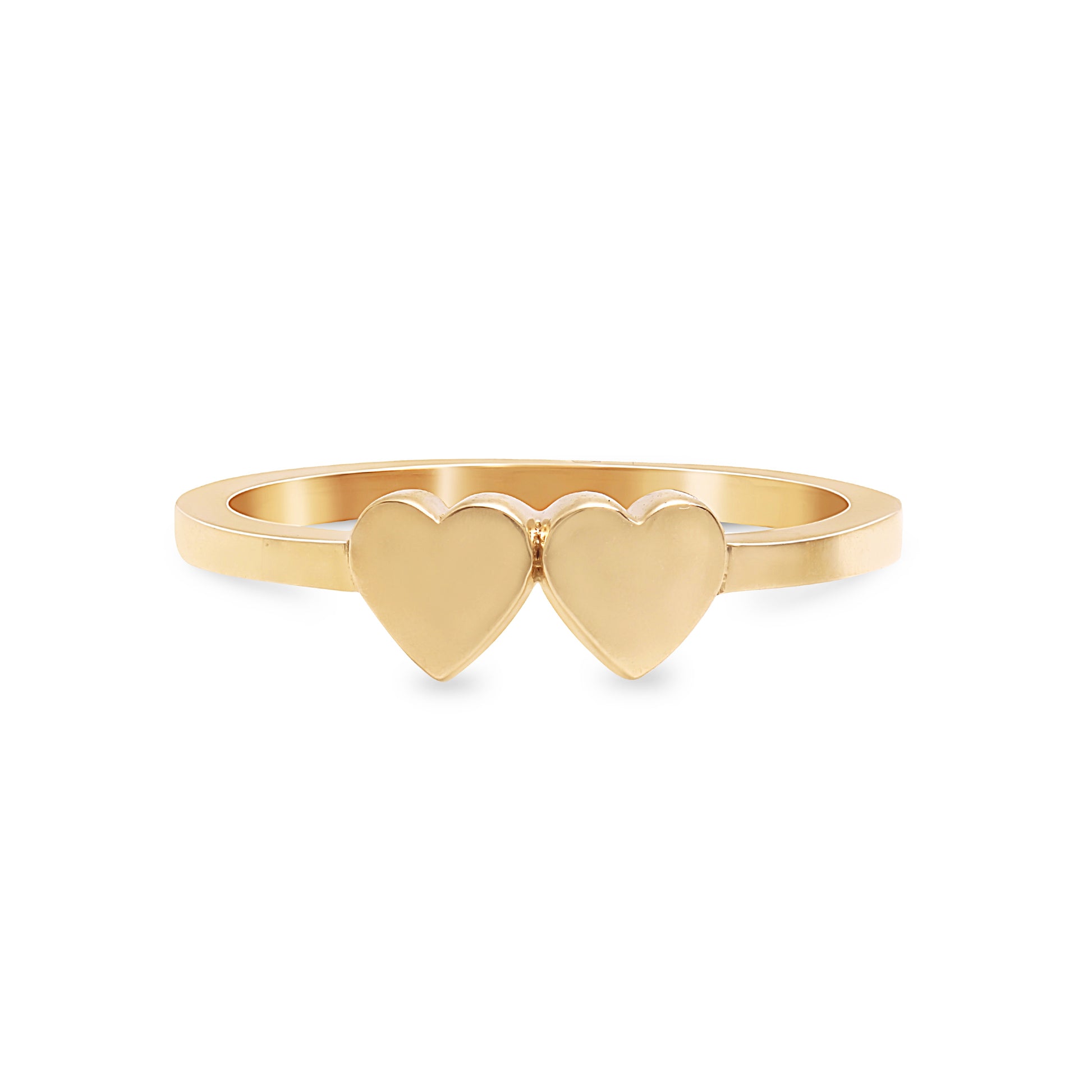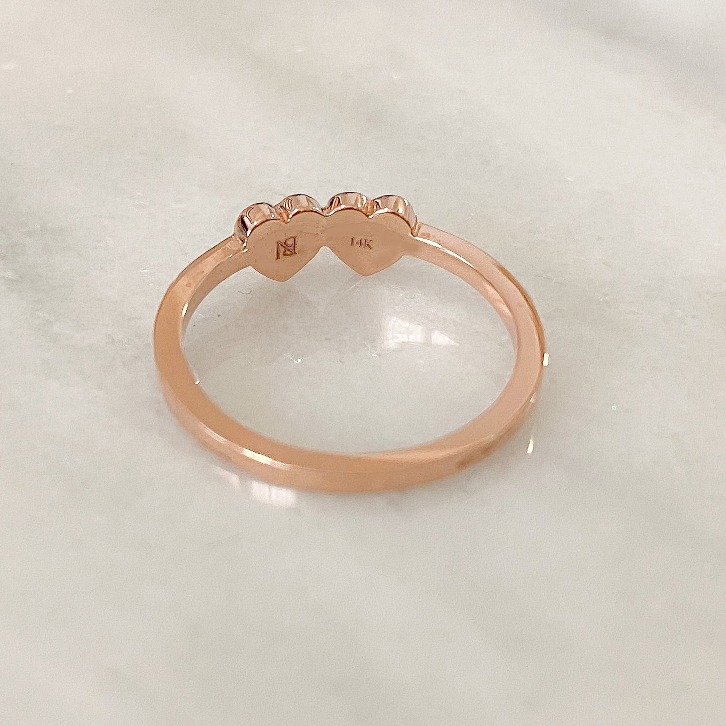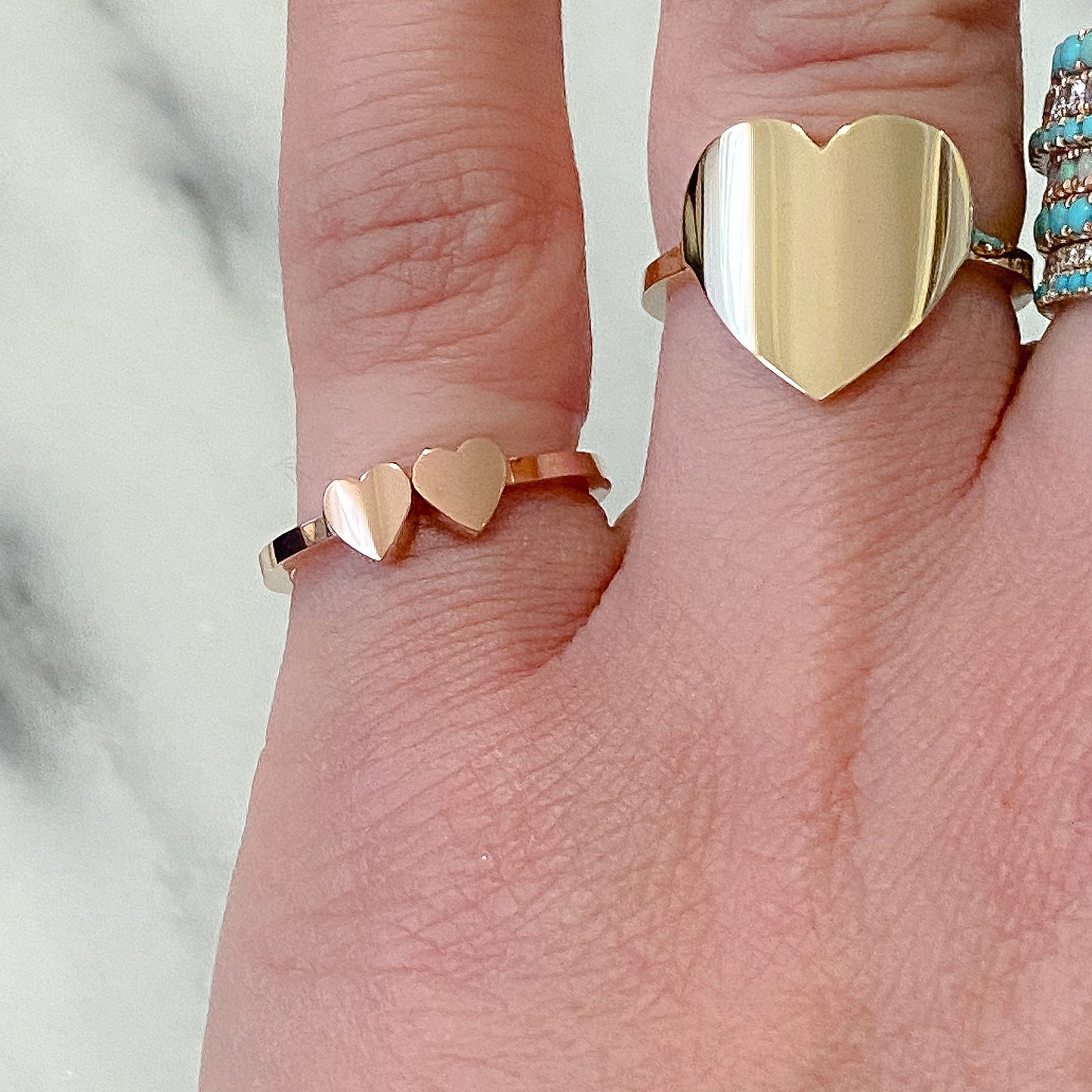 This uniquely shaped double heart ring is composed of 14K solid gold & can be finished with any double initials in any font style desired. Either way, with or without engraving this ring will be a great addition to your collection.