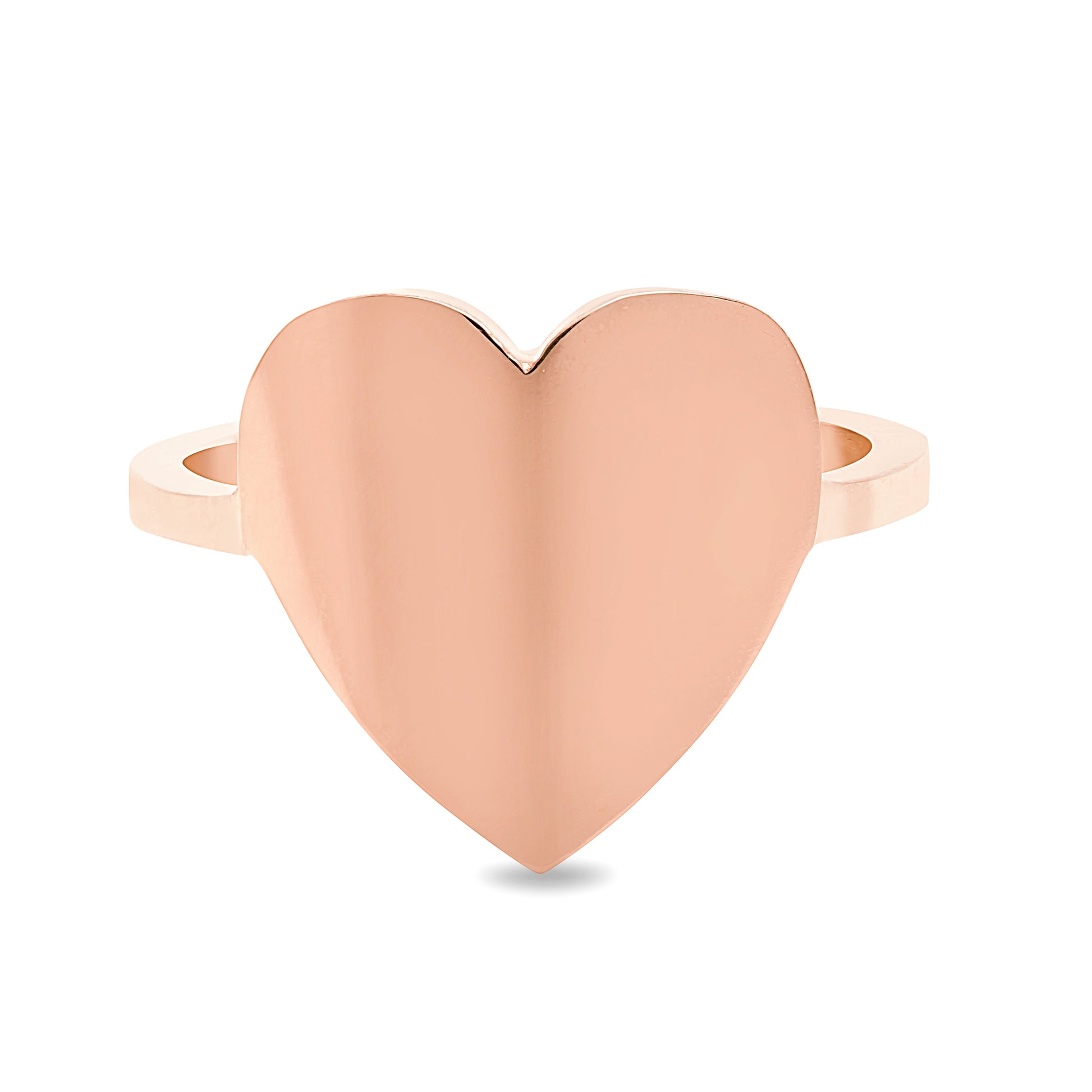 This unique Heart Shaped cigar band style ring is composed of 14K solid gold. This ring can be customized with any font style engraving of your choice.