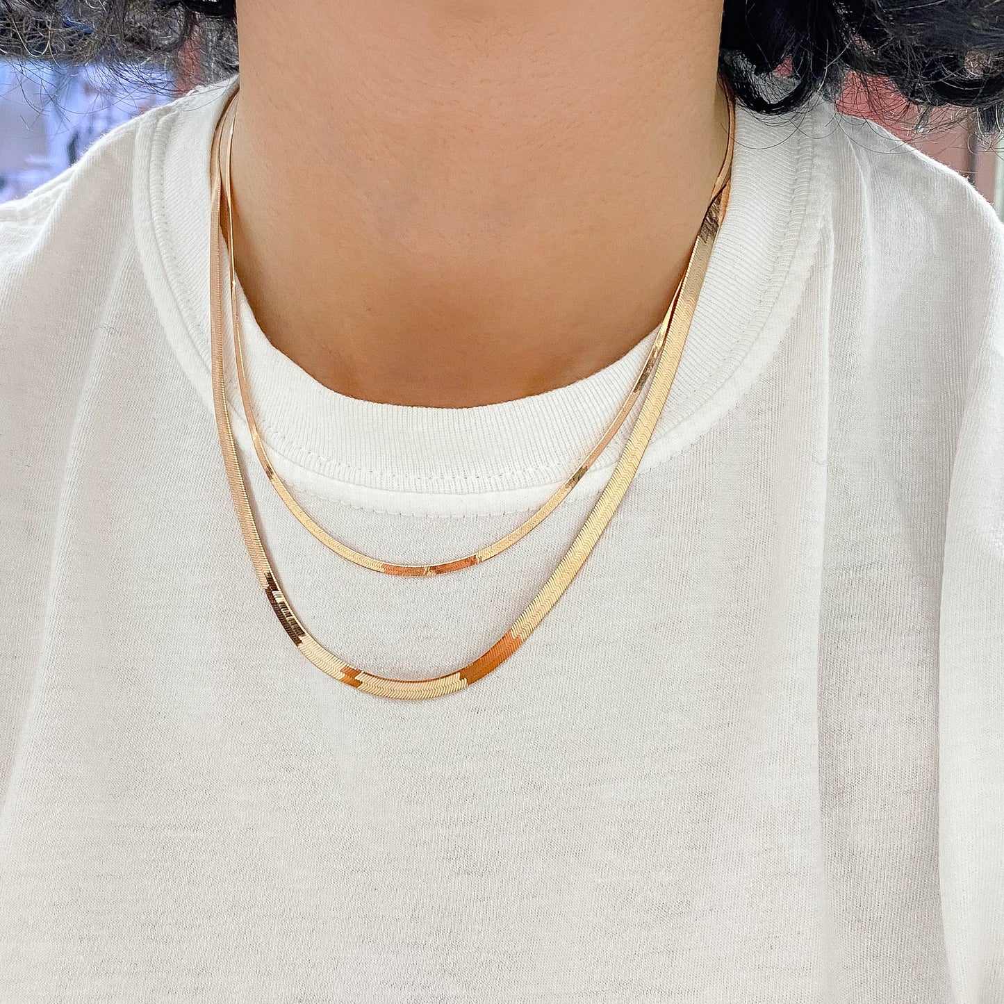 14K Gold Herringbone Chain Necklace ~ 2.3mm Width