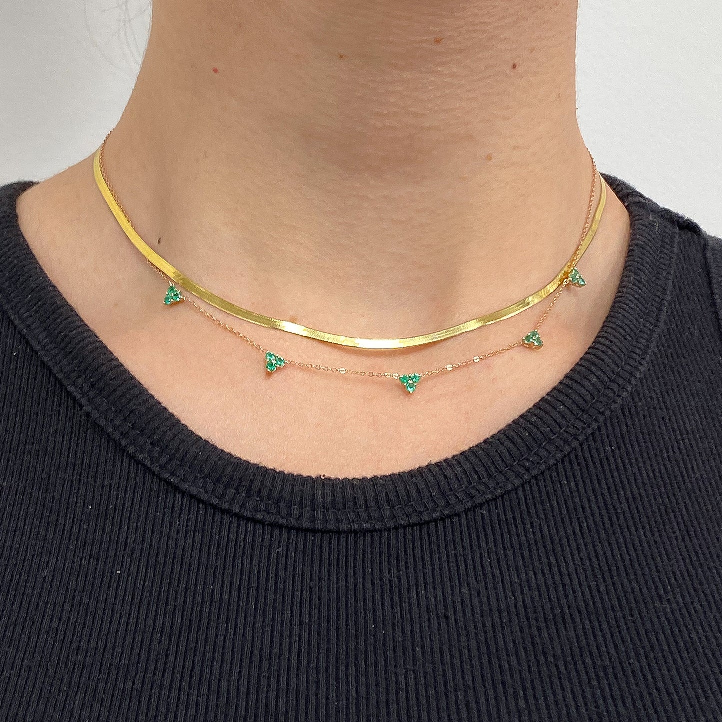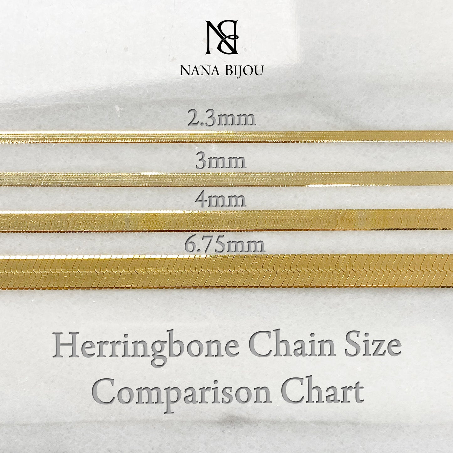 This Italian handcrafted Herringbone chain necklace is completely composed of 14K solid gold which is finished with a lobster claw clasp and extender chain for adjustable length options.