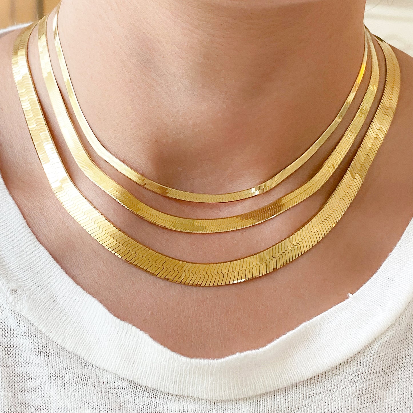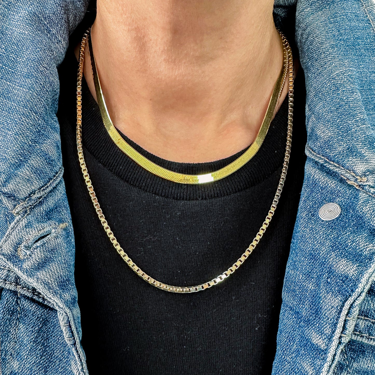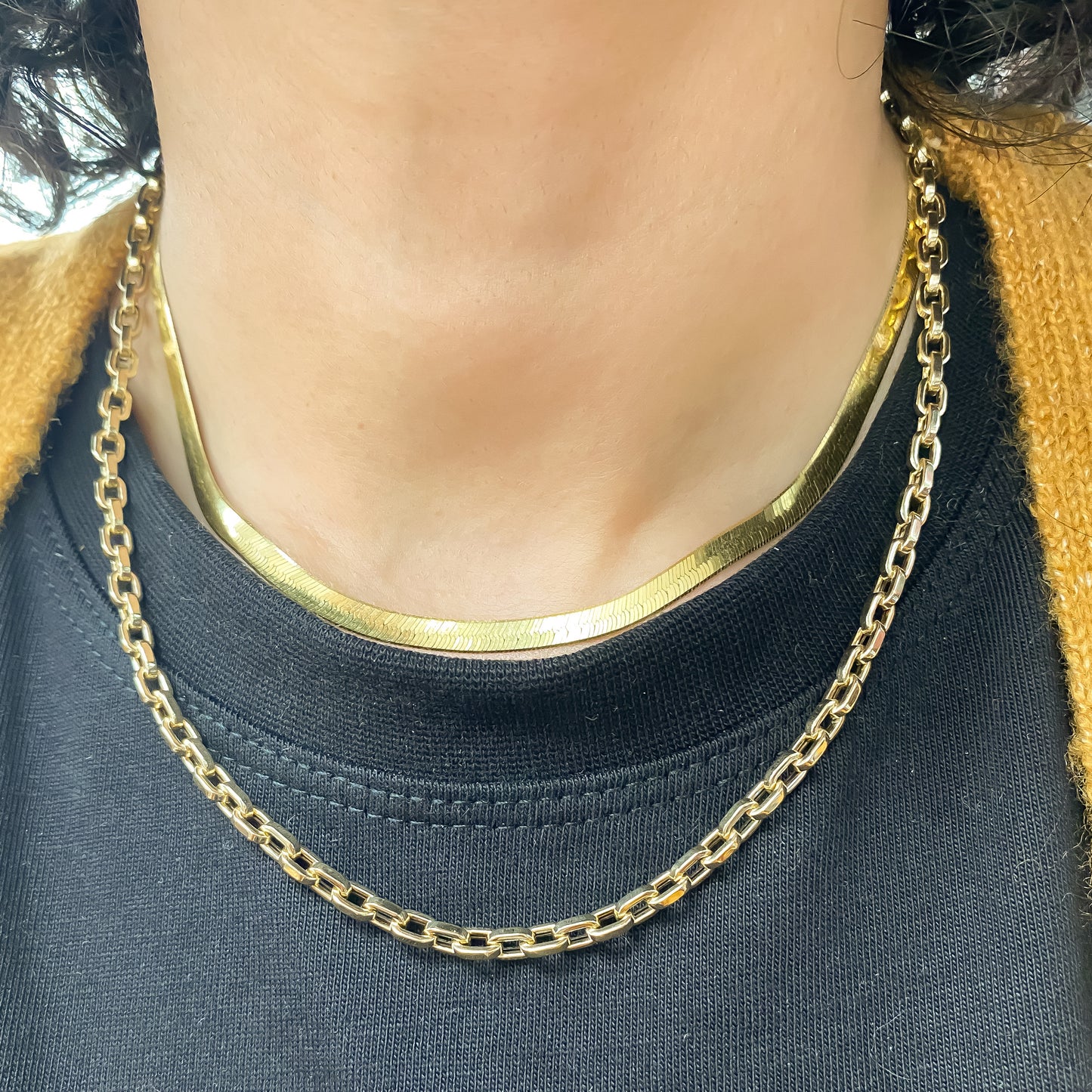 14K Gold Herringbone Chain Necklace ~ 4mm Width