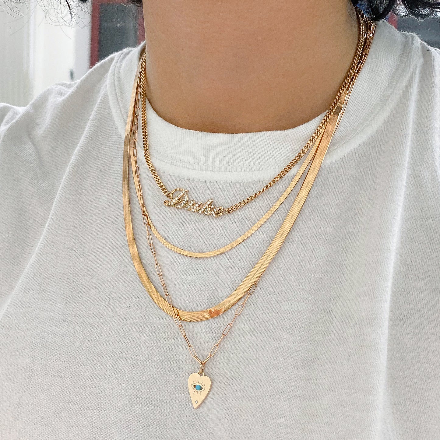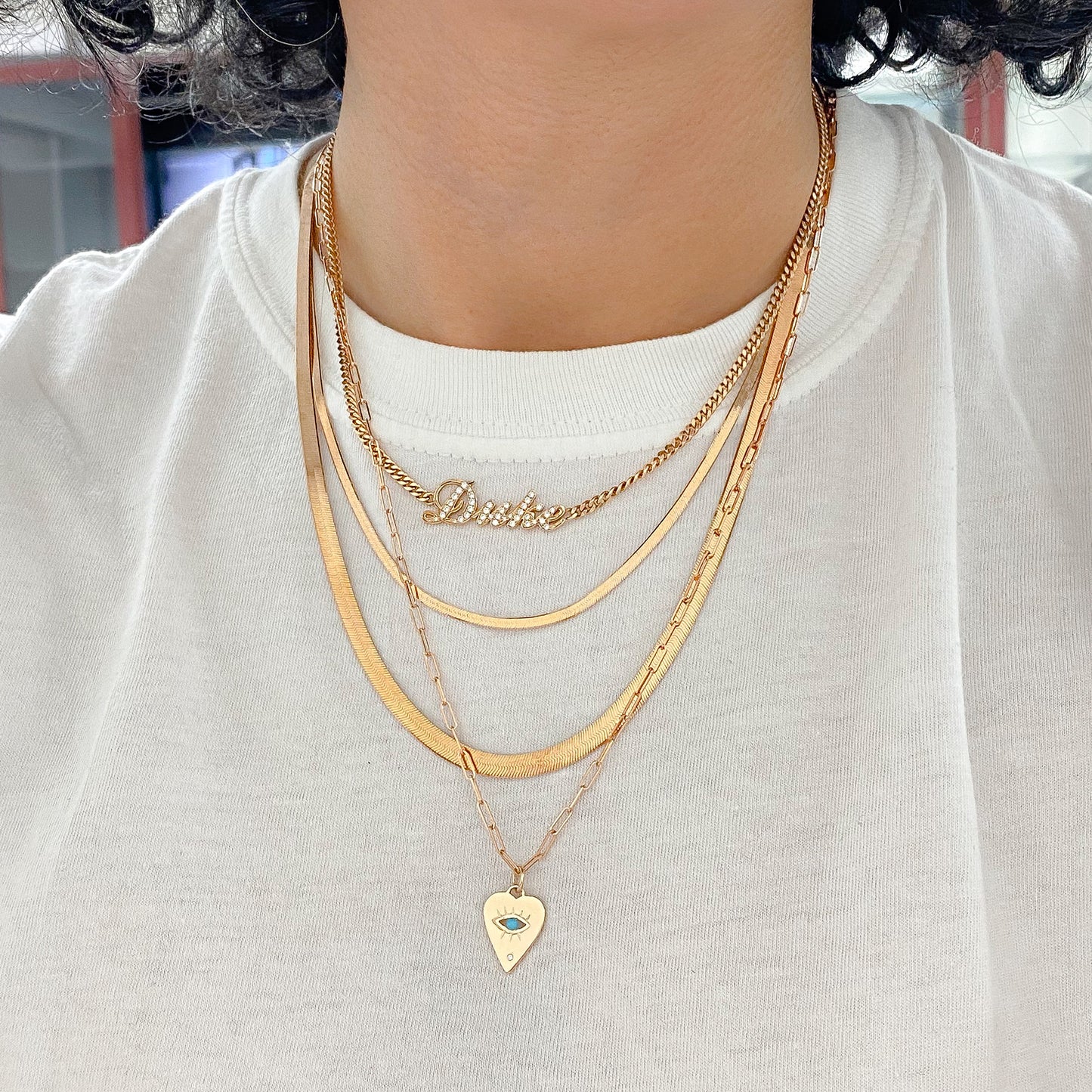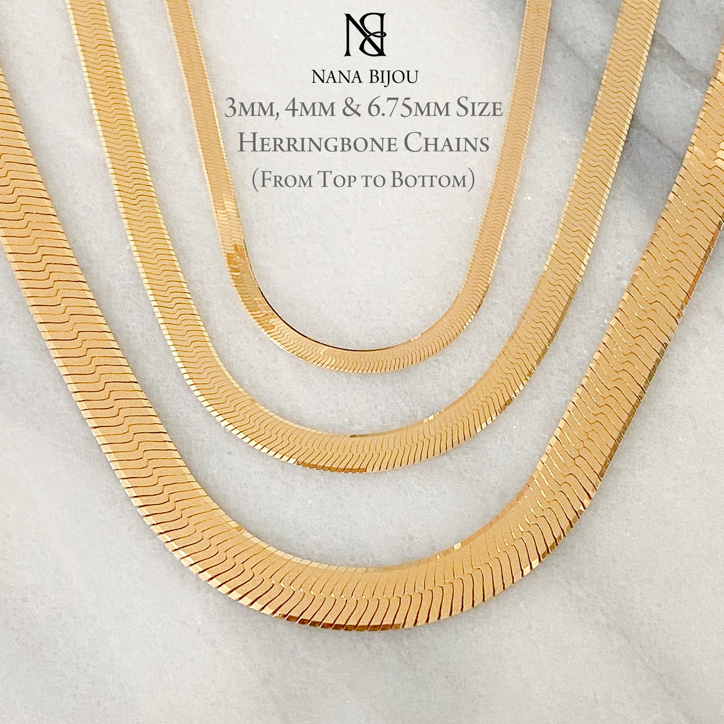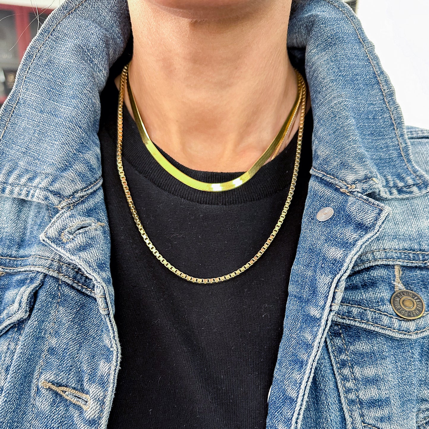 14K Gold Herringbone Chain Necklace ~ 4mm Width