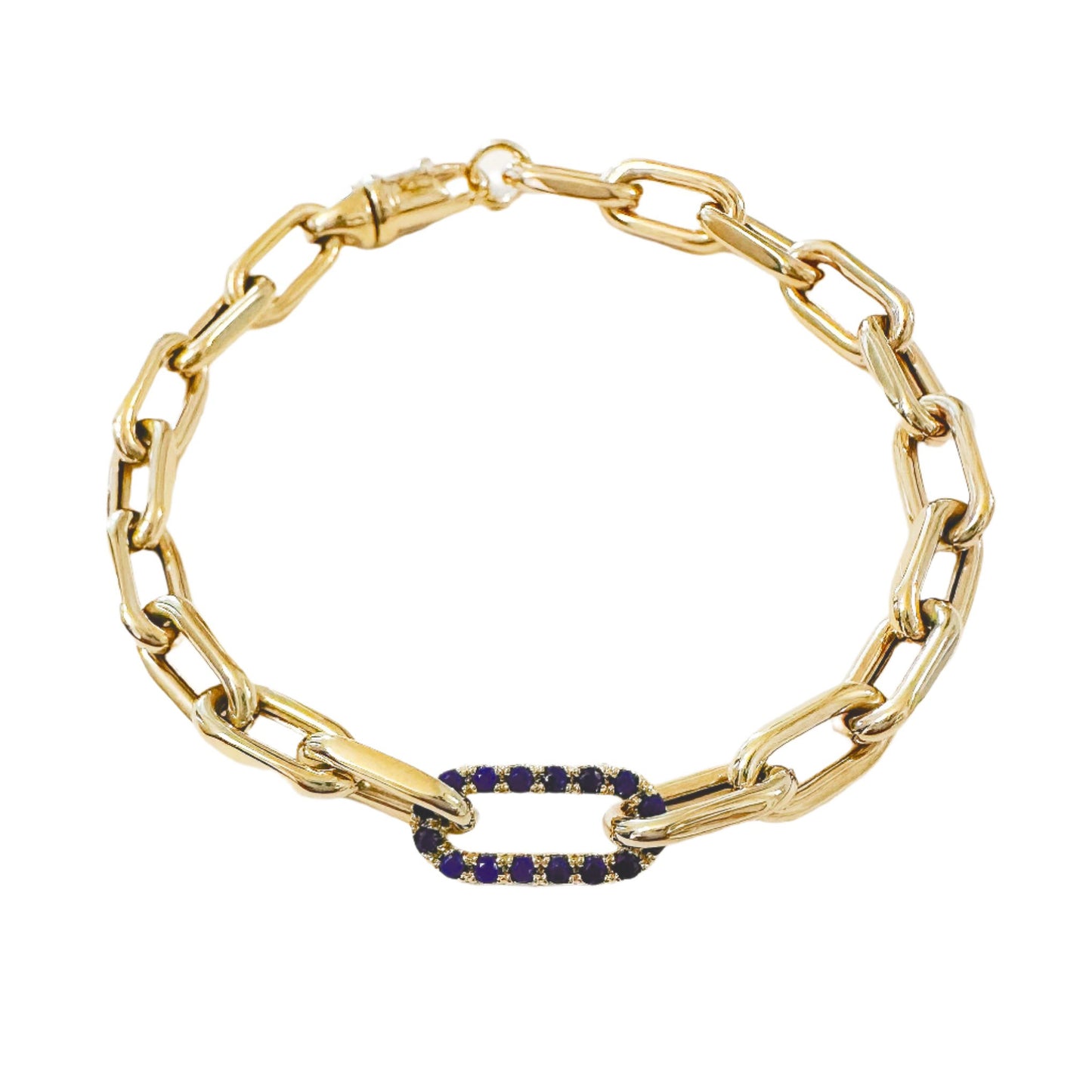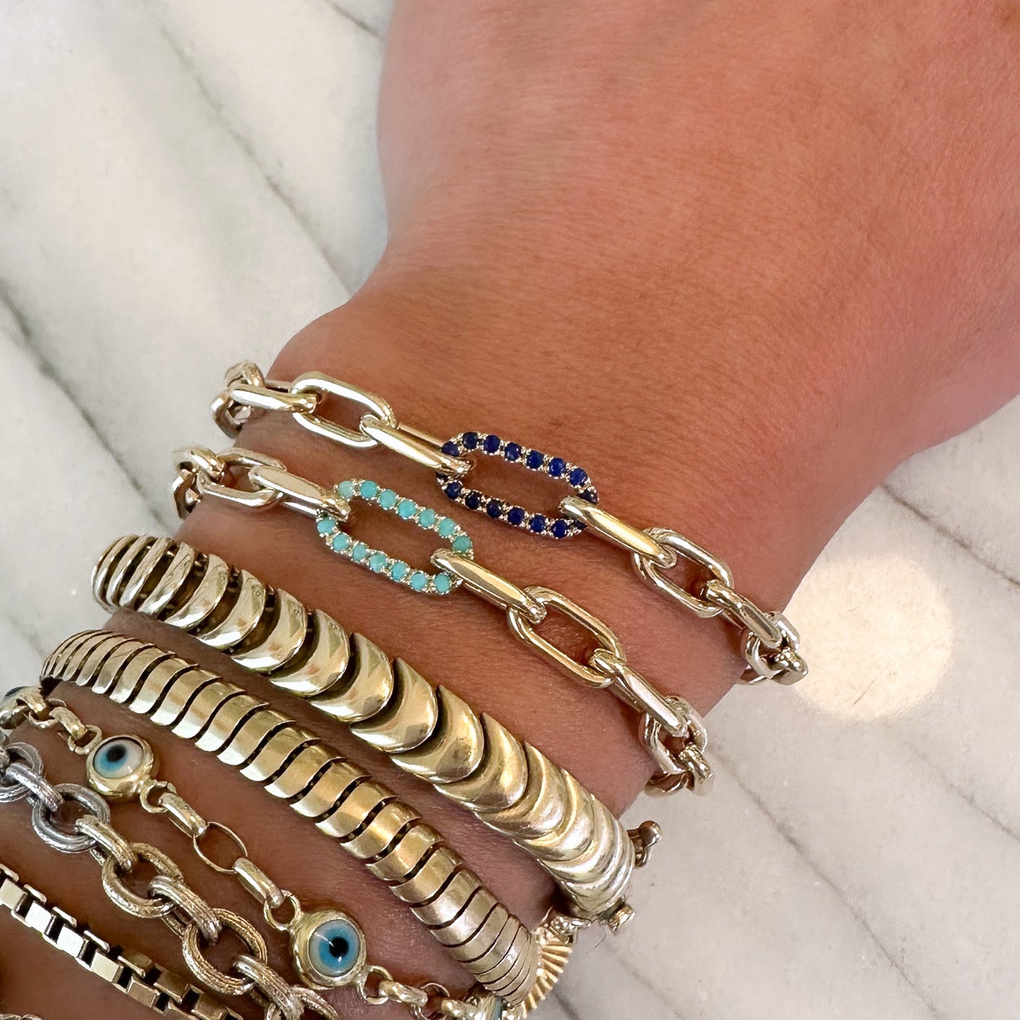 14K Gold Lapis Lazuli Thick Oval Link Bracelet