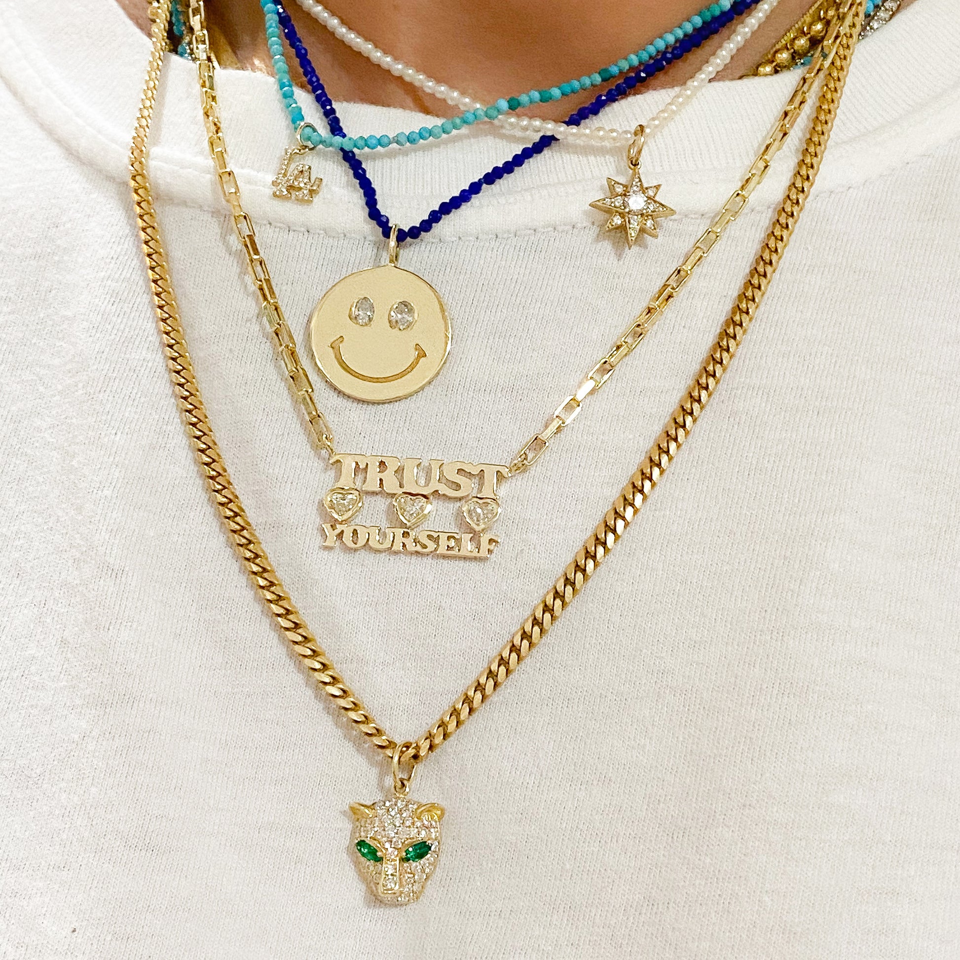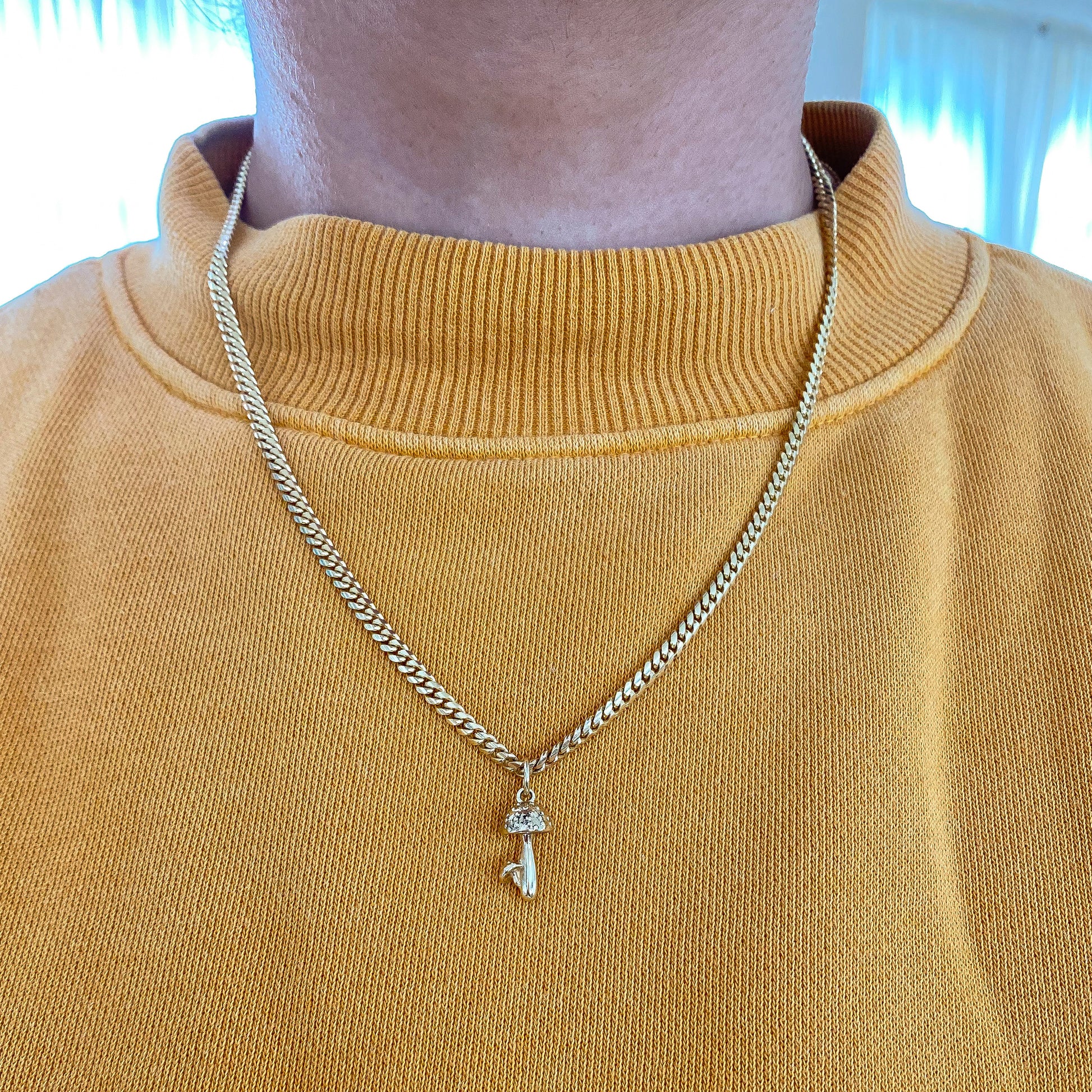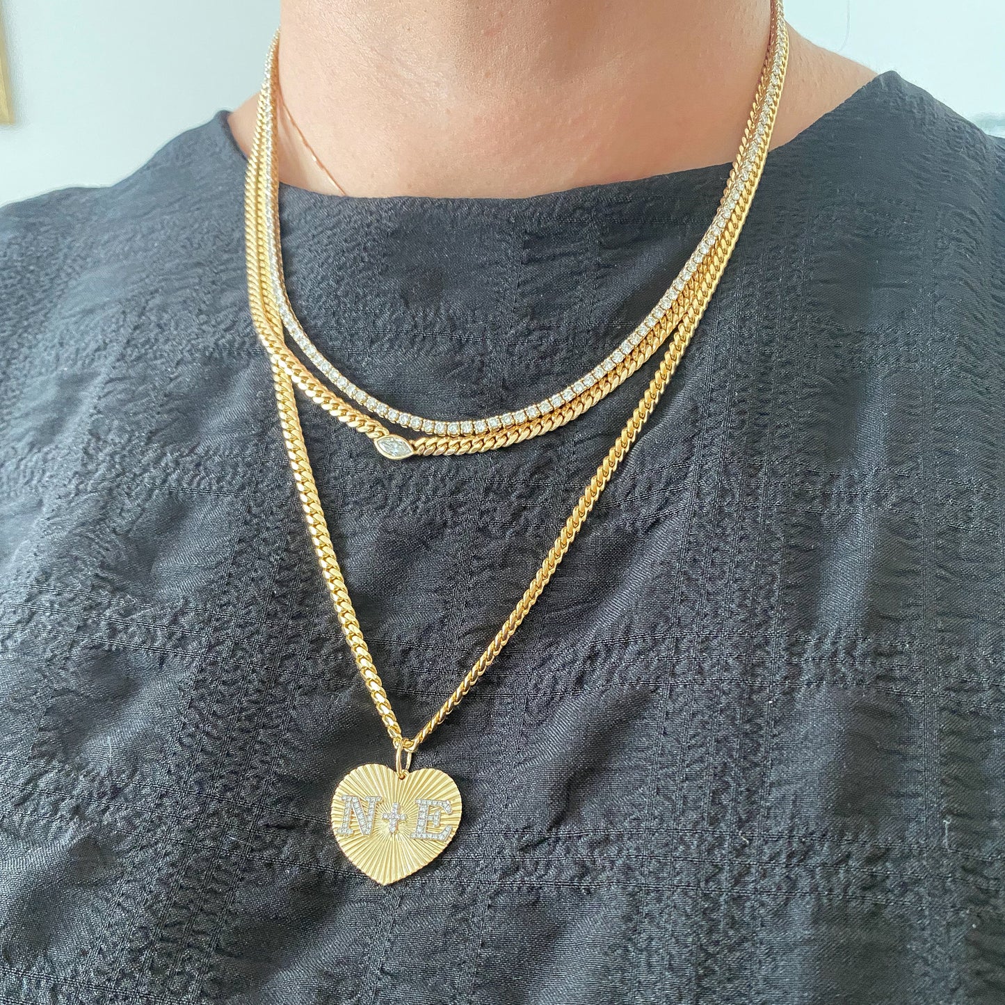This finely handcrafted Cuban link chain necklace is entirely composed 14K solid gold which is finished with a lobster claw clasp. The links to this particular chain are completely solid.