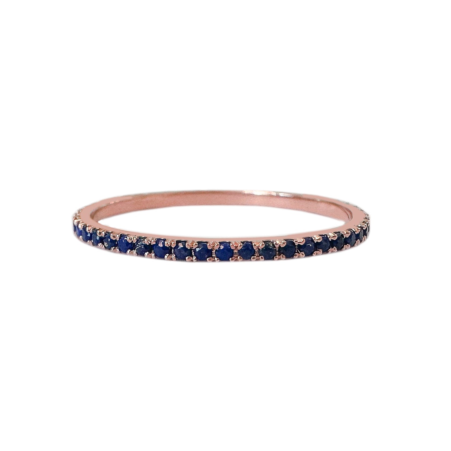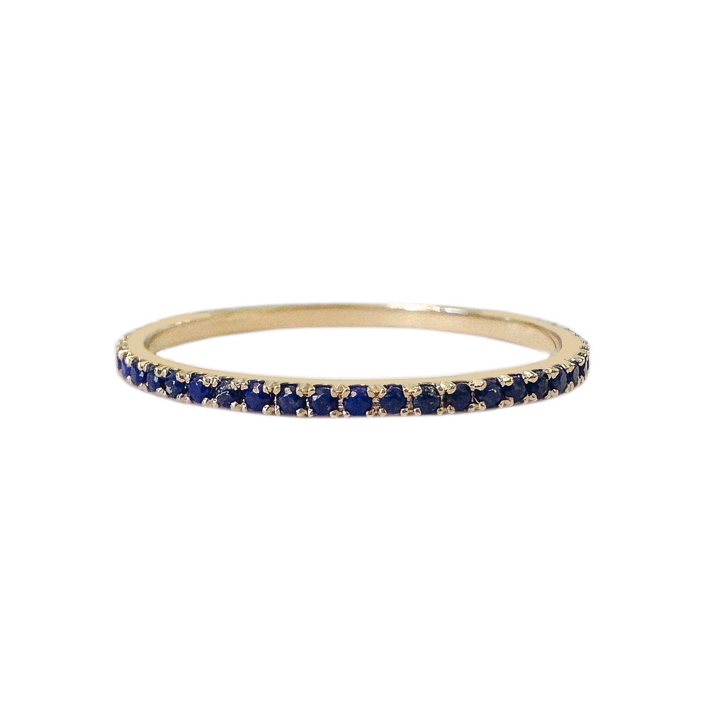 14K Gold Micro Pavé Faceted Lapis Lazuli Gemstone Full Eternity Band