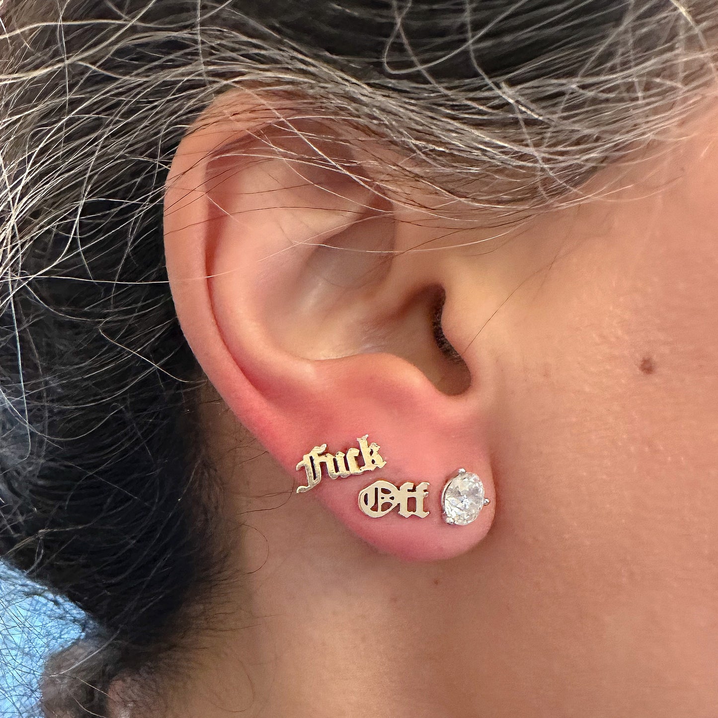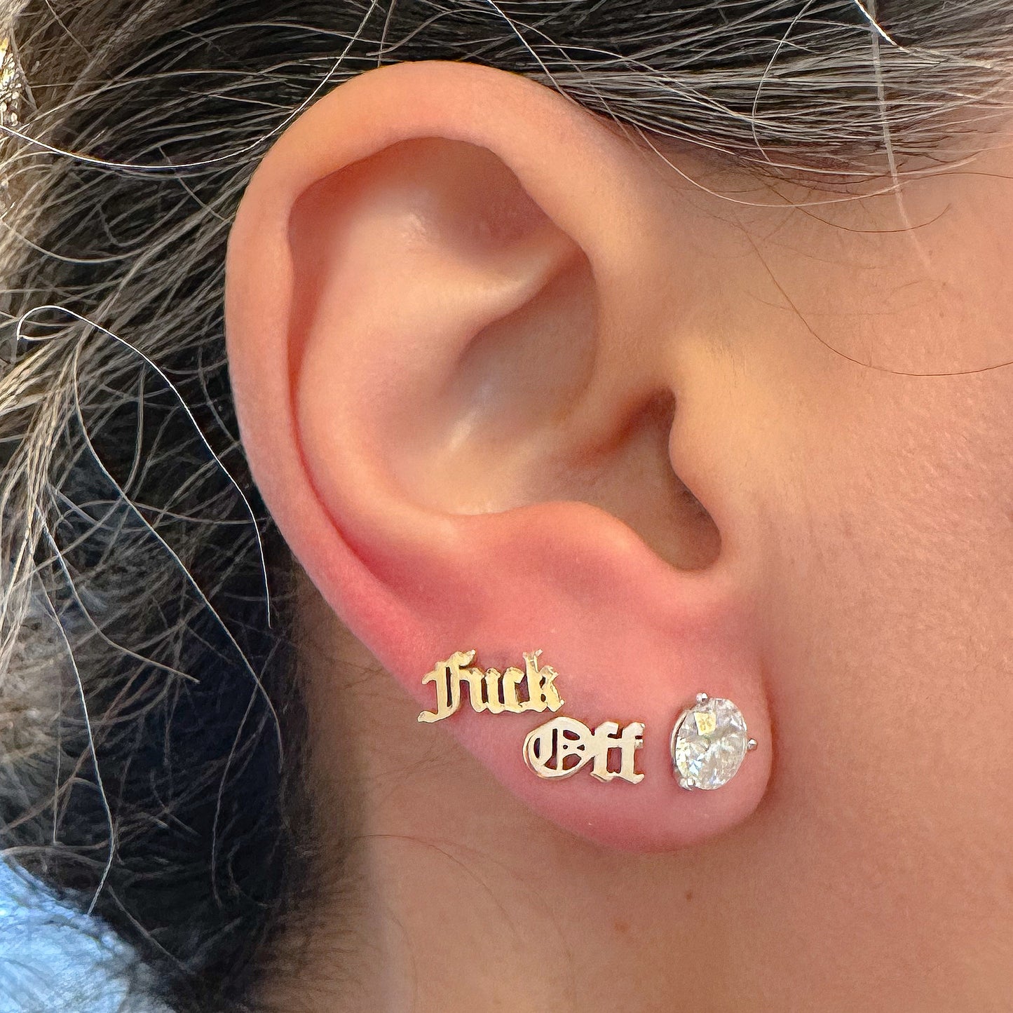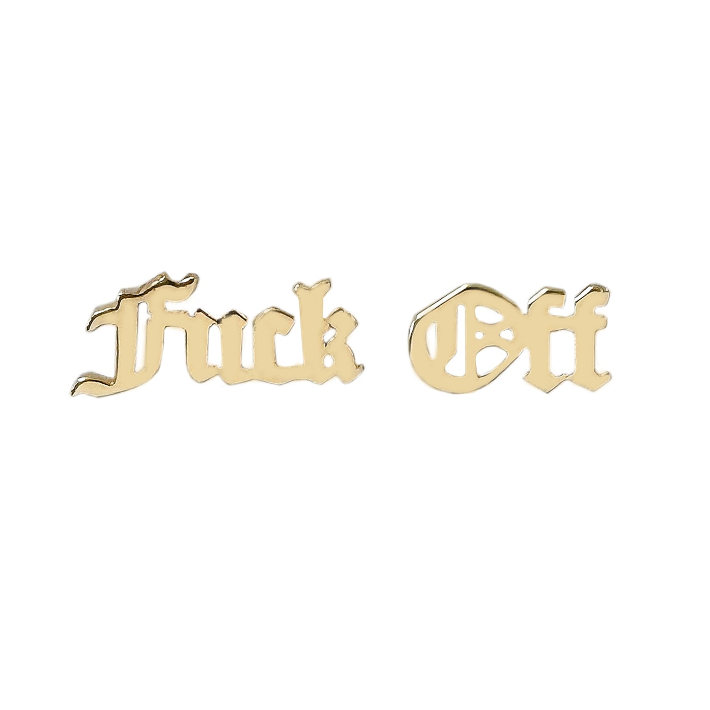 14K Gold Old English Font "Fuck Off" Stud Earrings