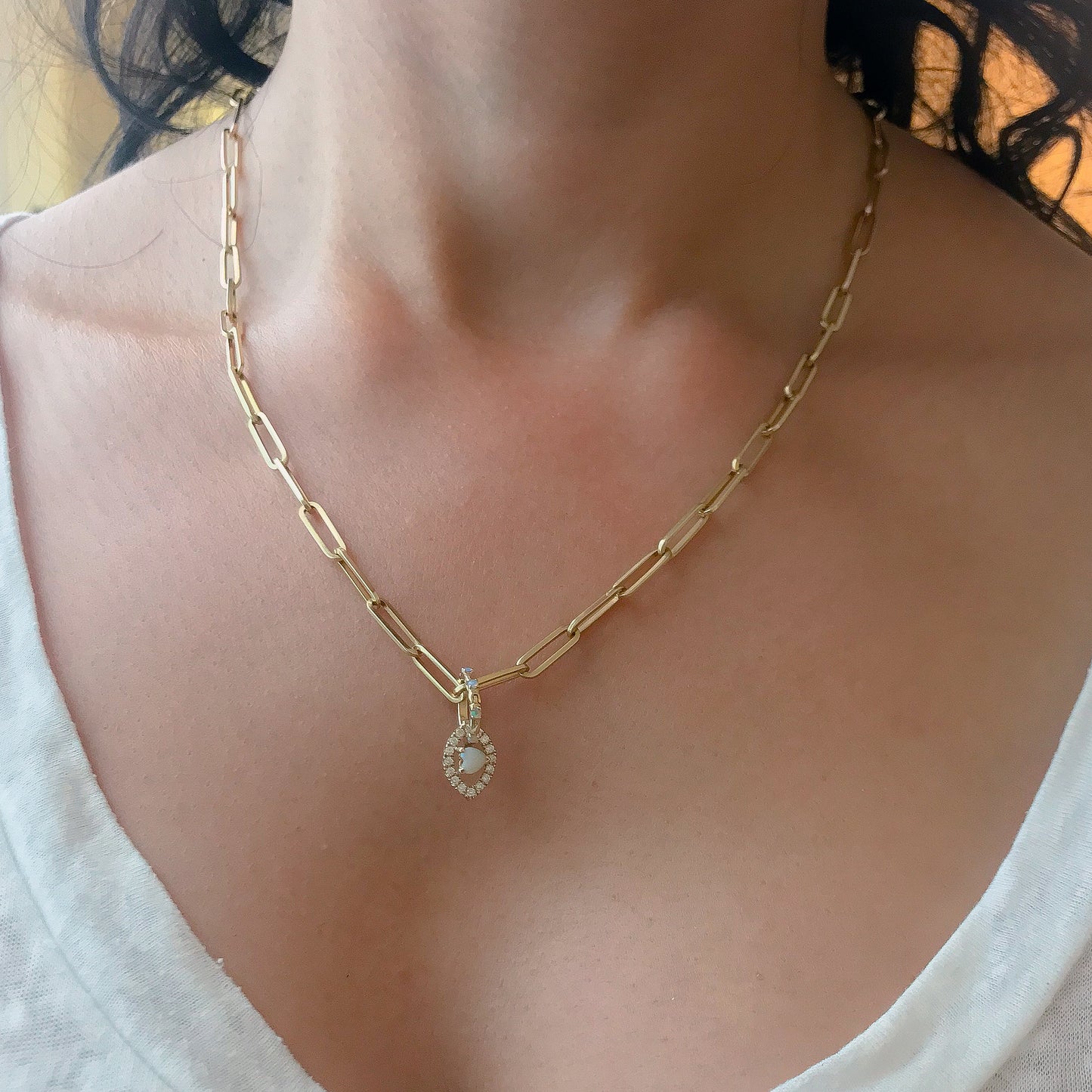 14K Gold Opal Round Charm Enhancer