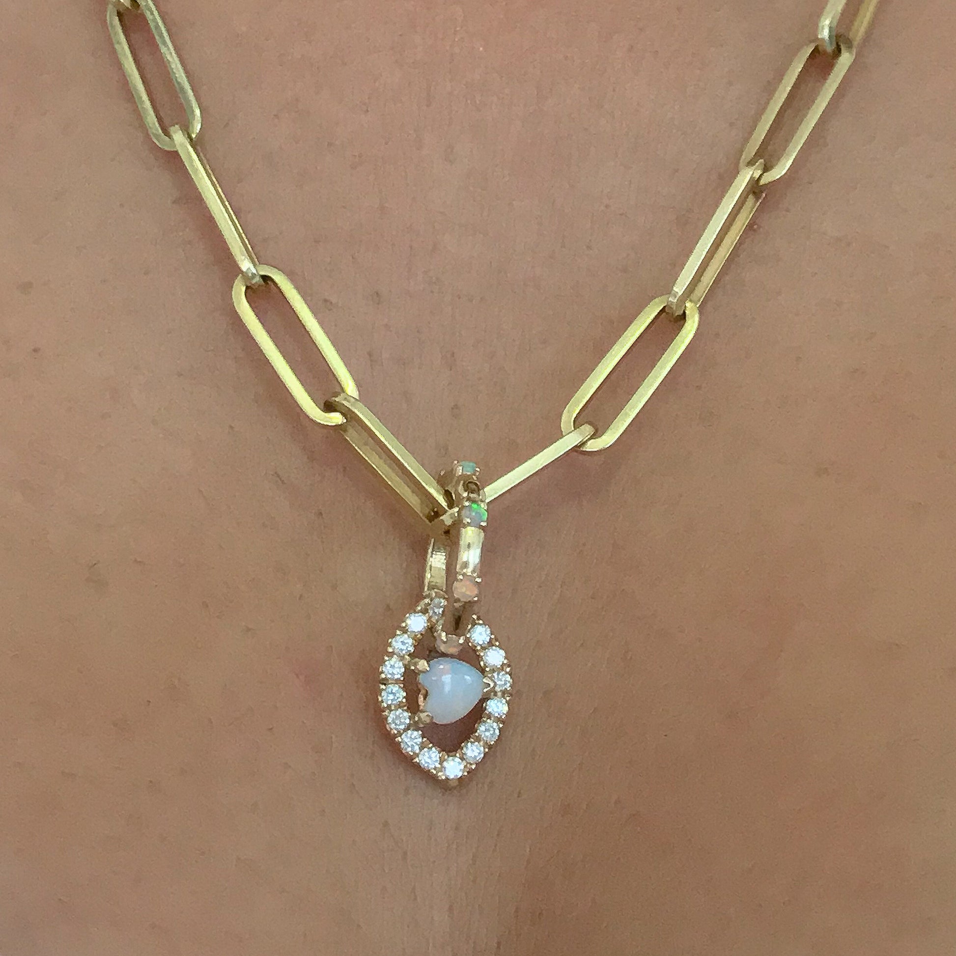 This uniquely handcrafted charm enhancer is composed of 14K solid gold and beautifully complemented with genuine AAA quality natural real opal gemstones.