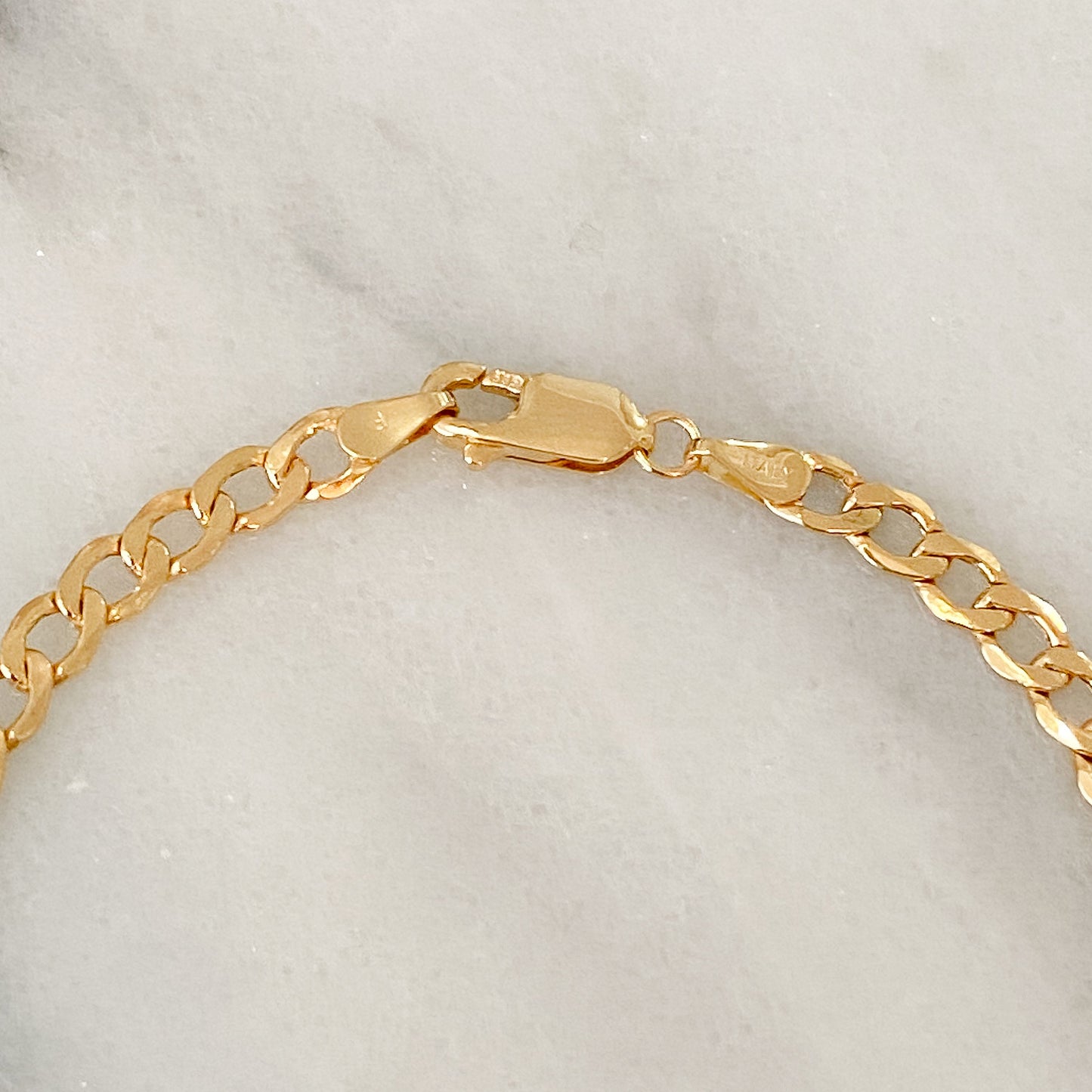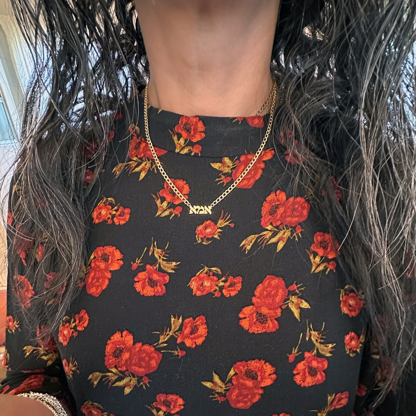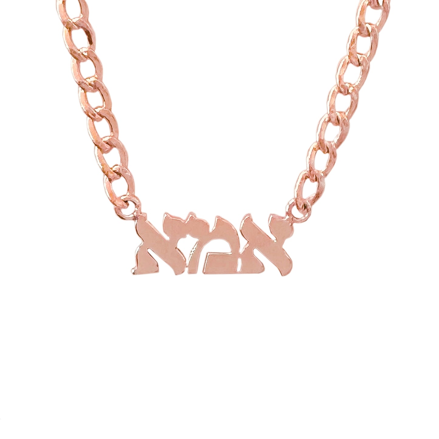 14K Gold Open Curb Link Hebrew "Mother" Nameplate Necklace