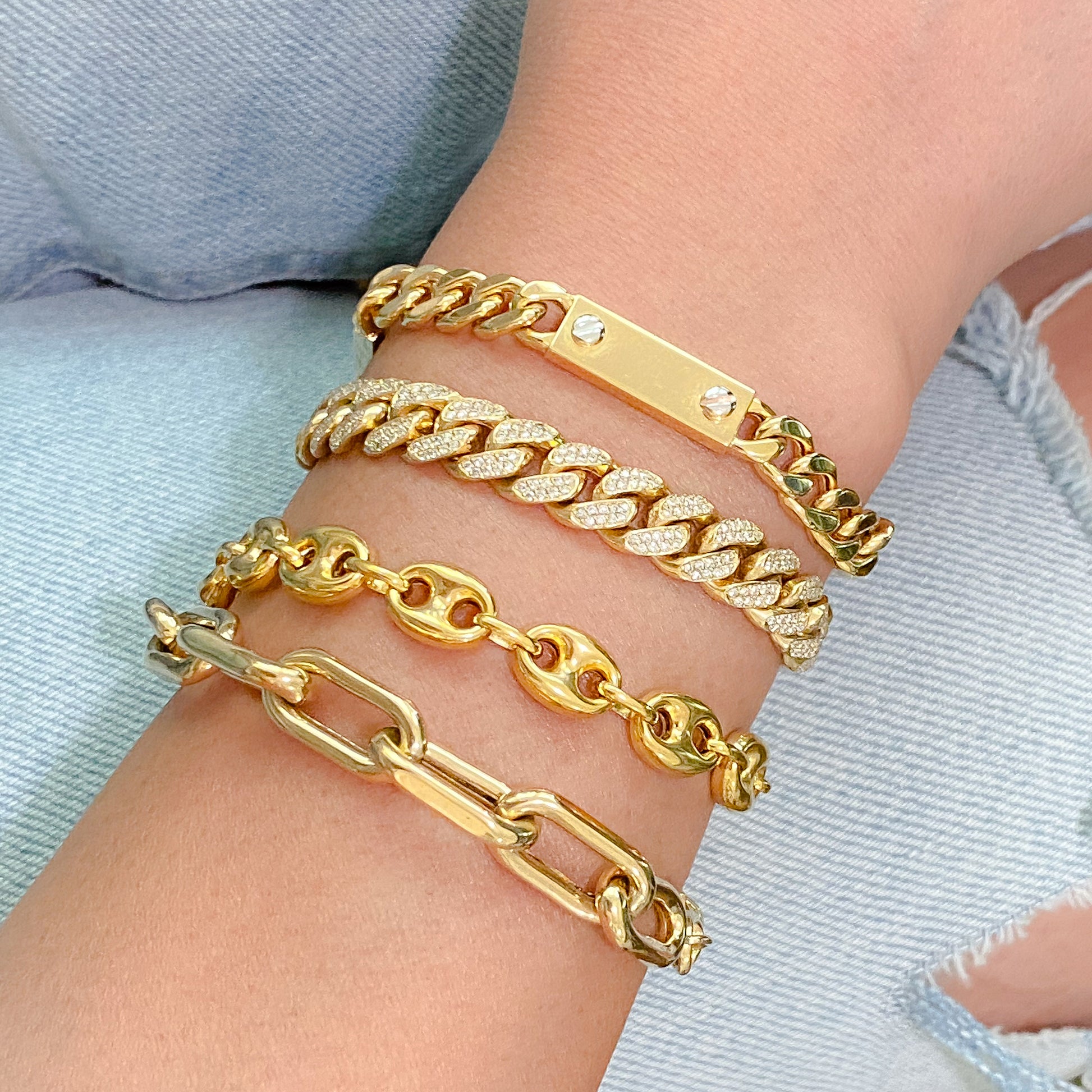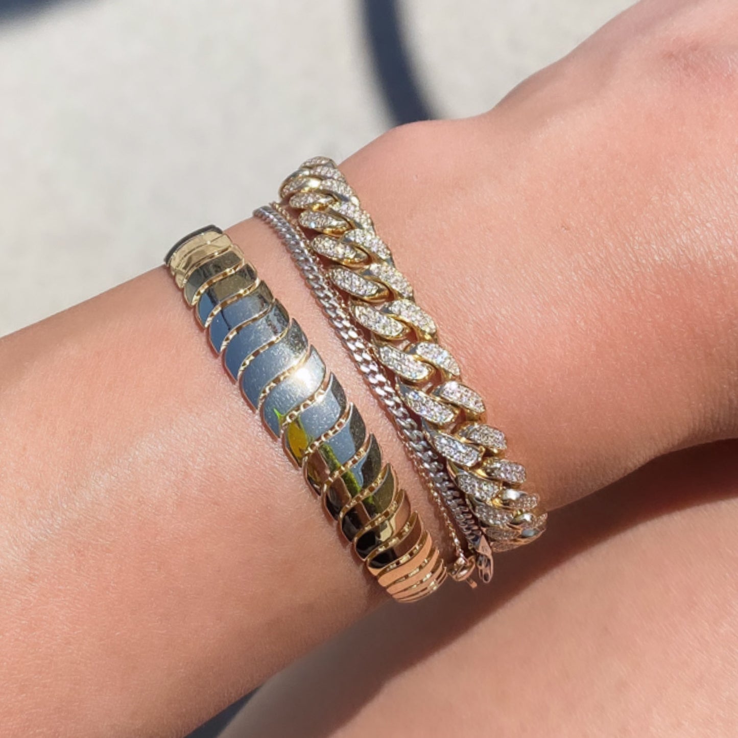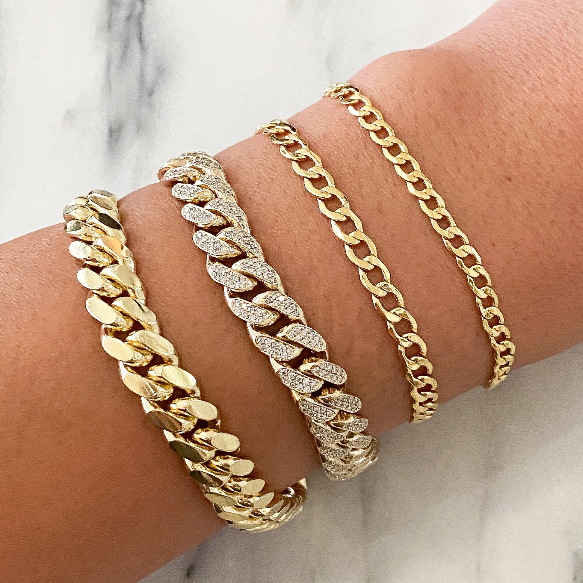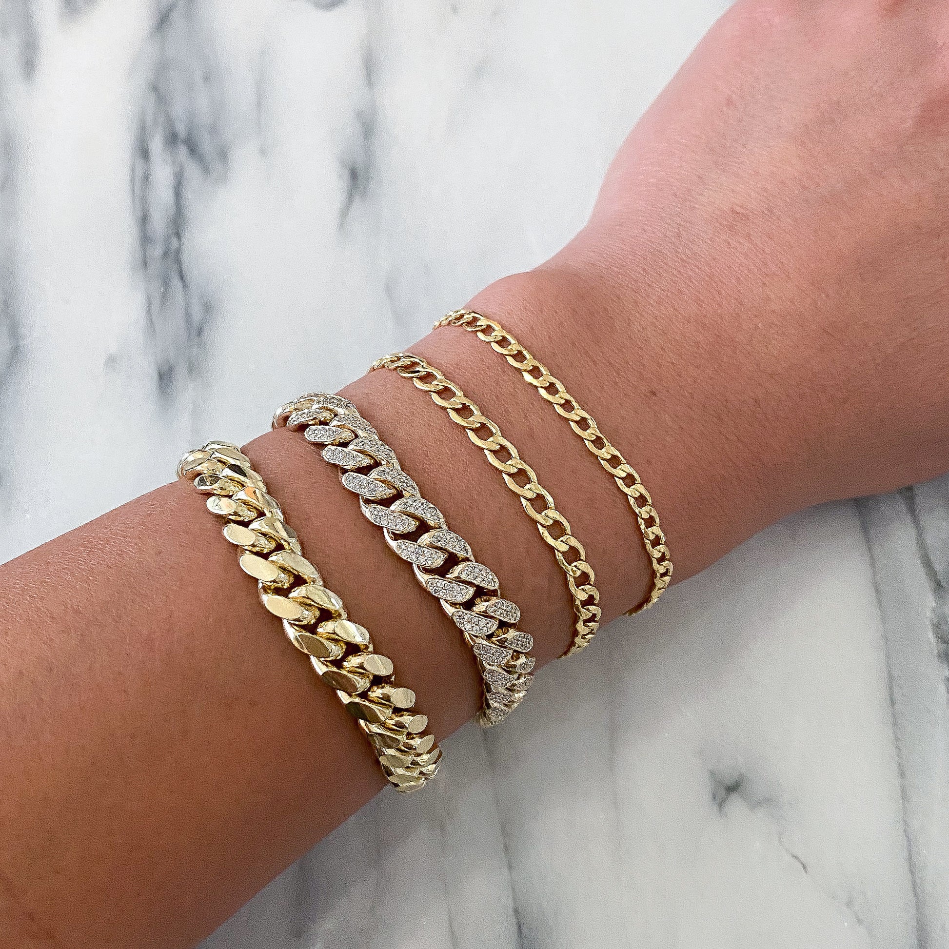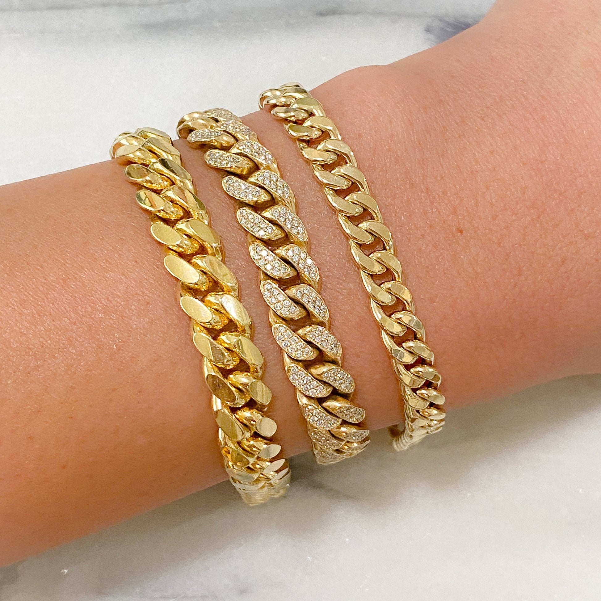 14K Gold Pavé Diamond Cuban Link Chain Bracelet, 8mm Size Links