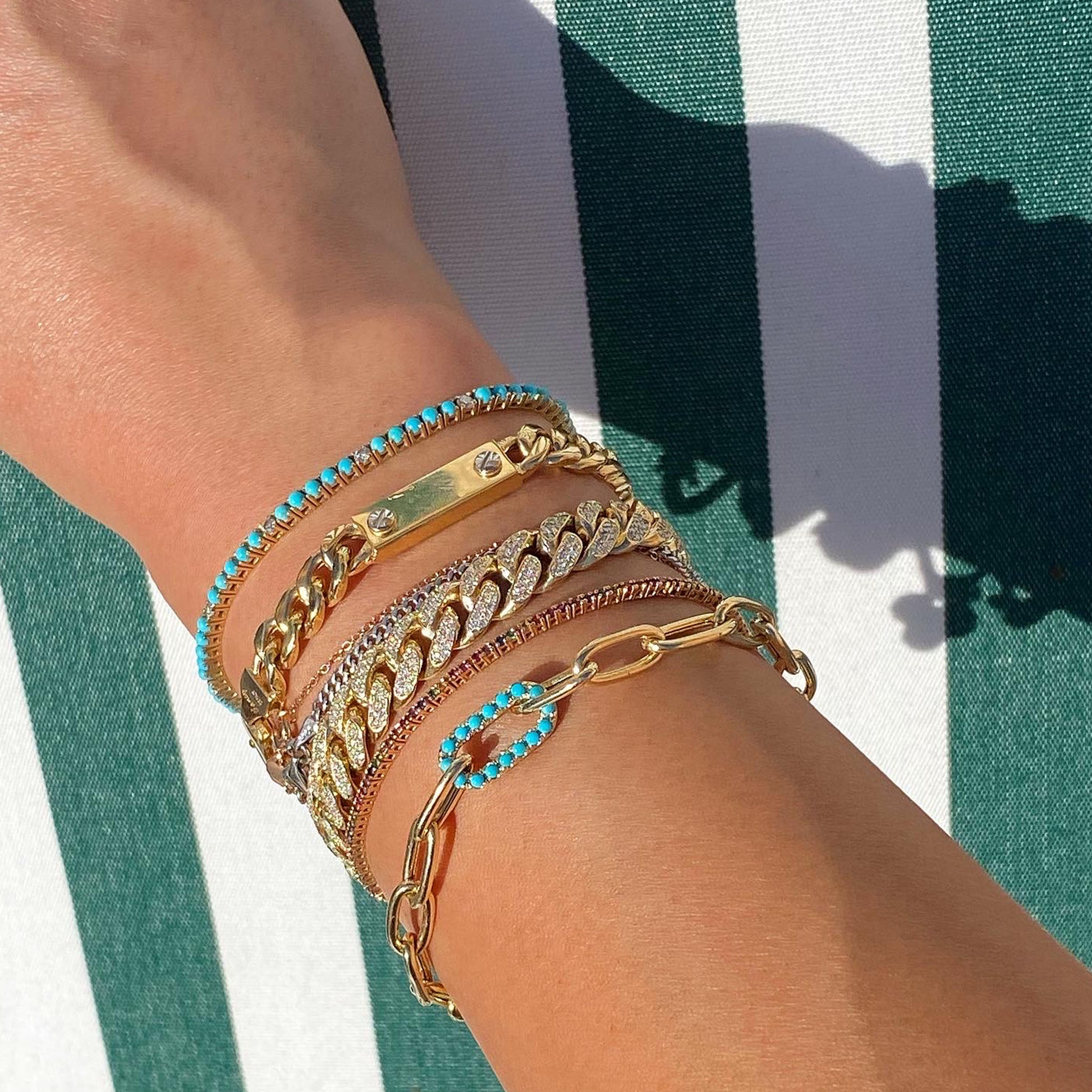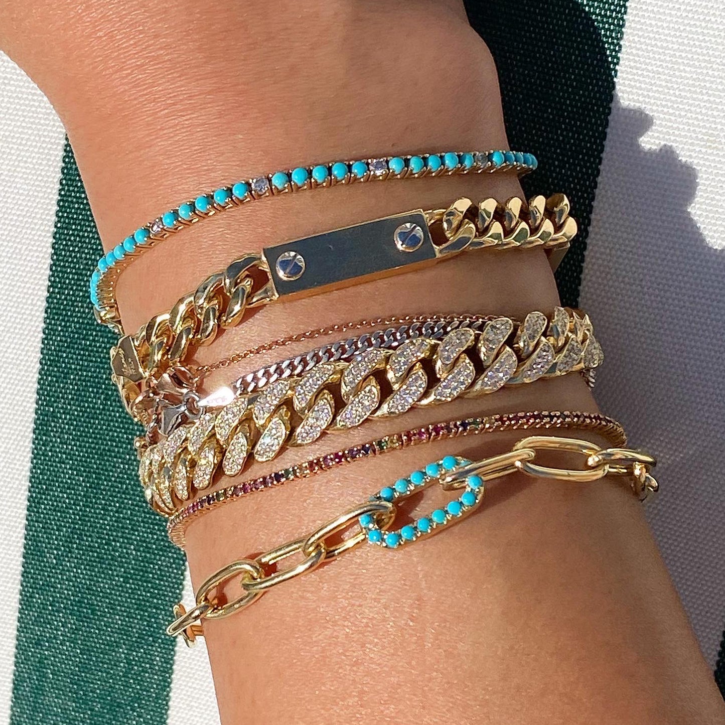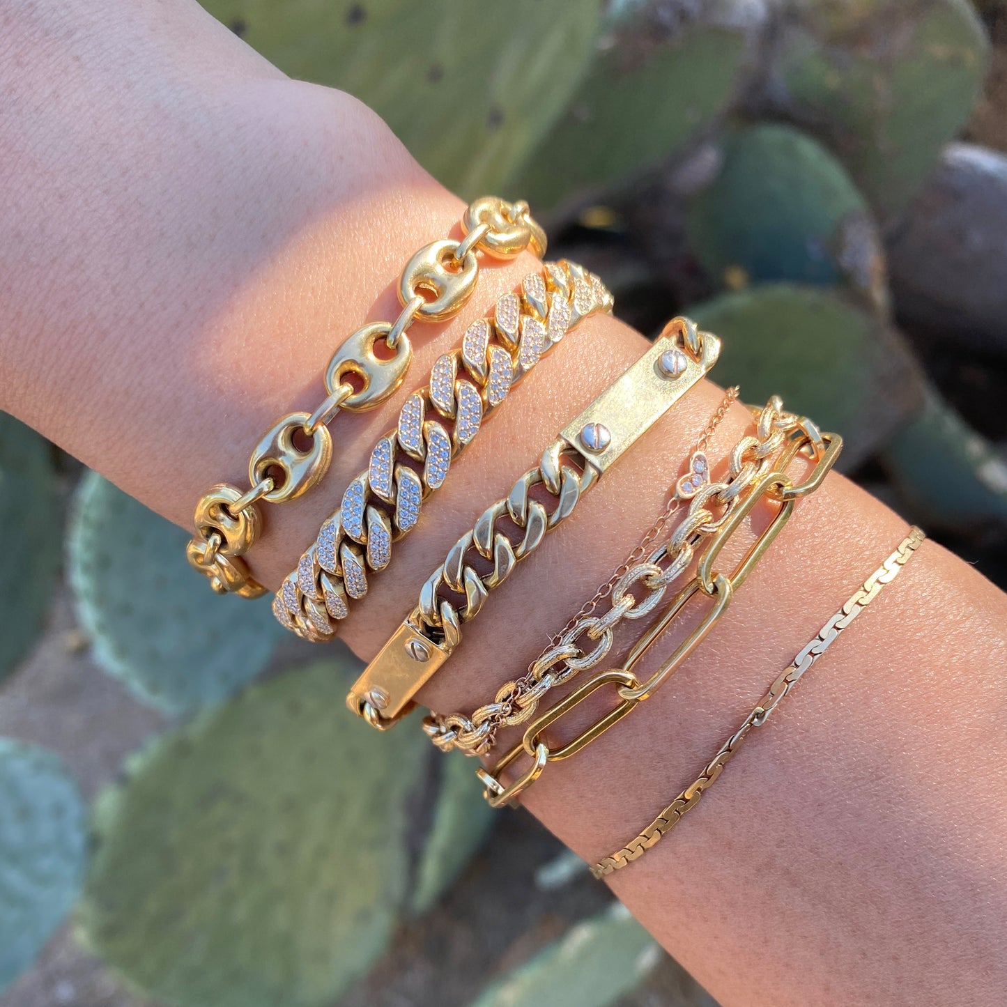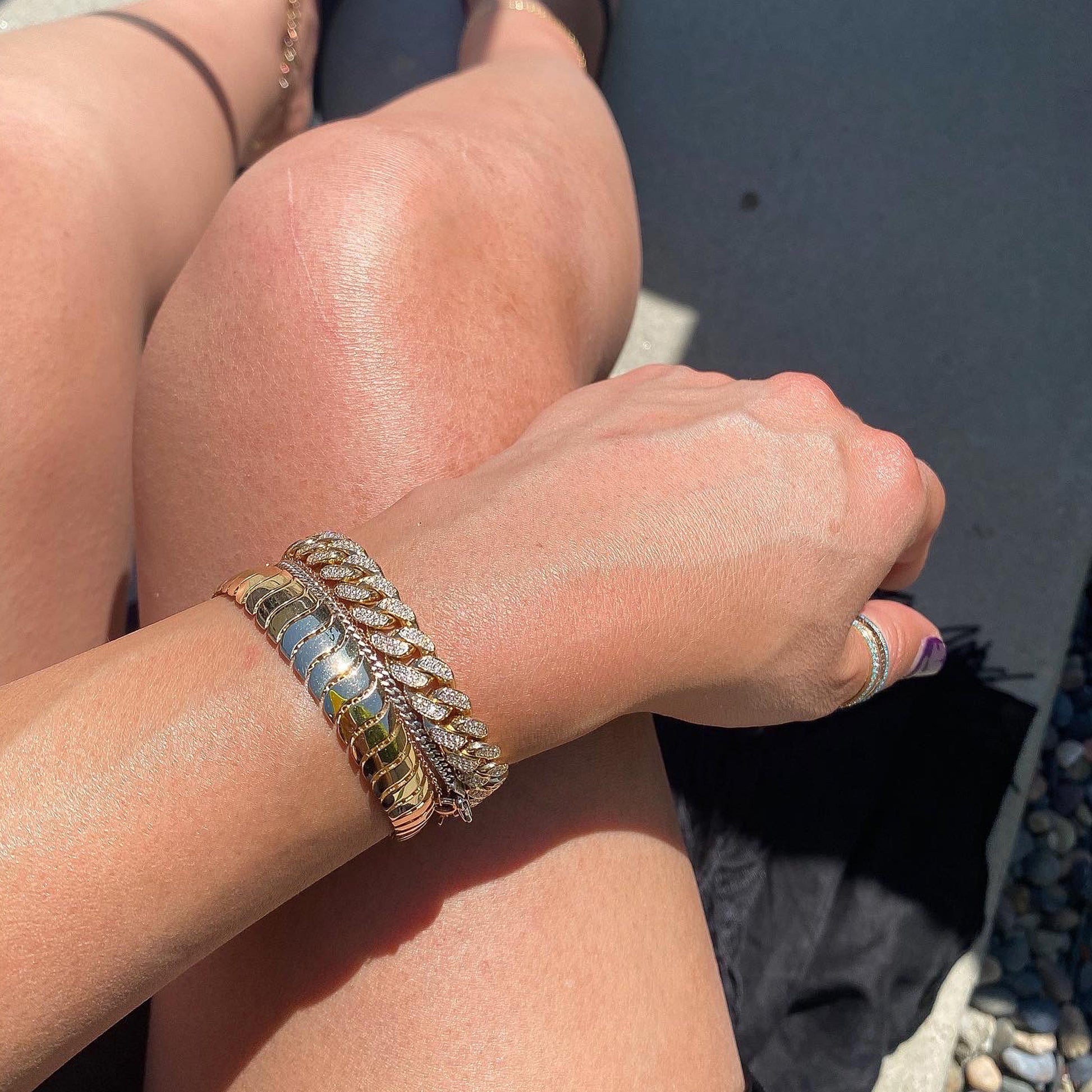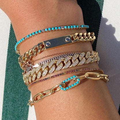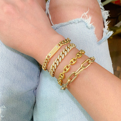 14K Gold Pavé Diamond Cuban Link Chain Bracelet, 8mm Size Links